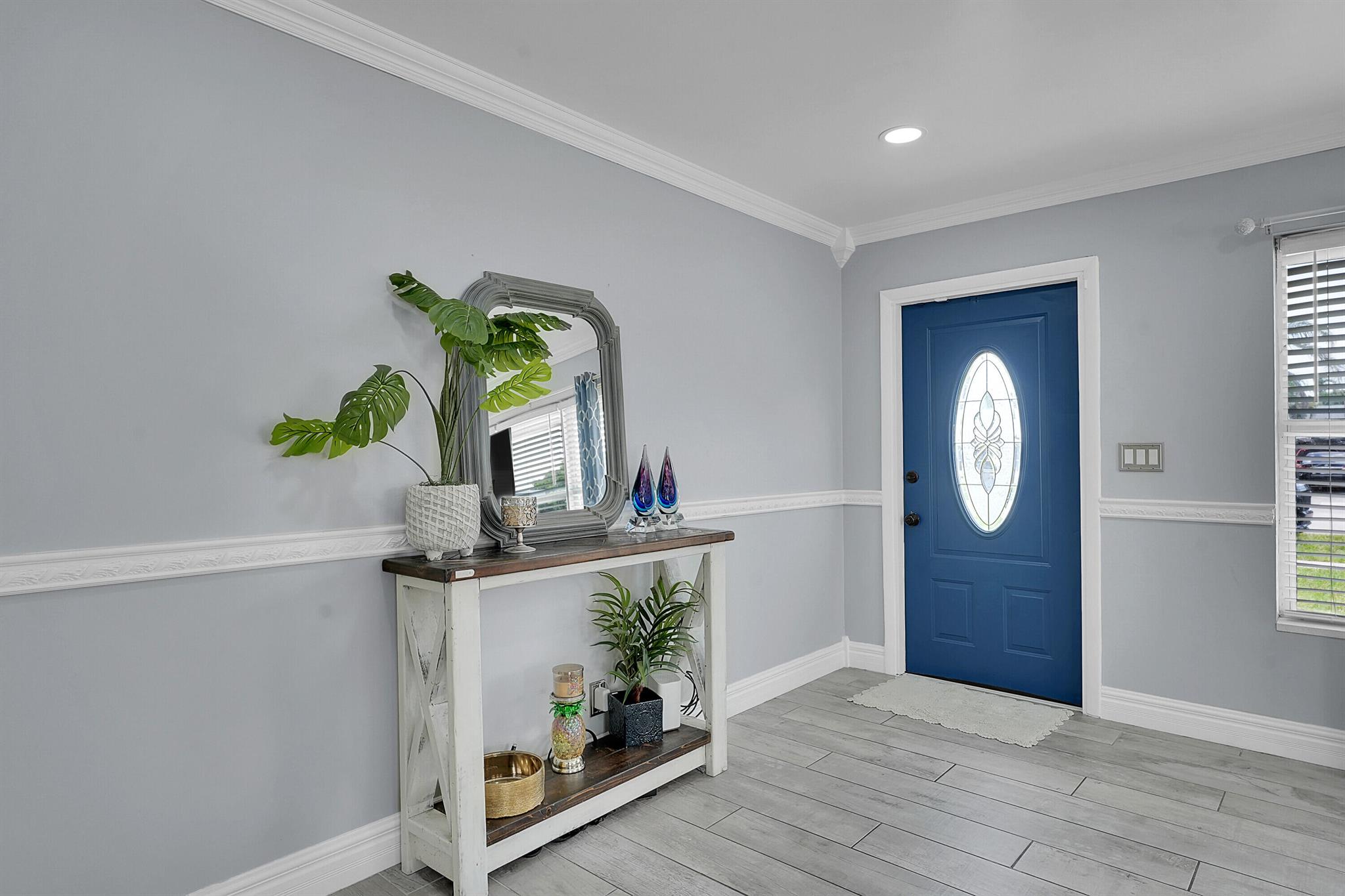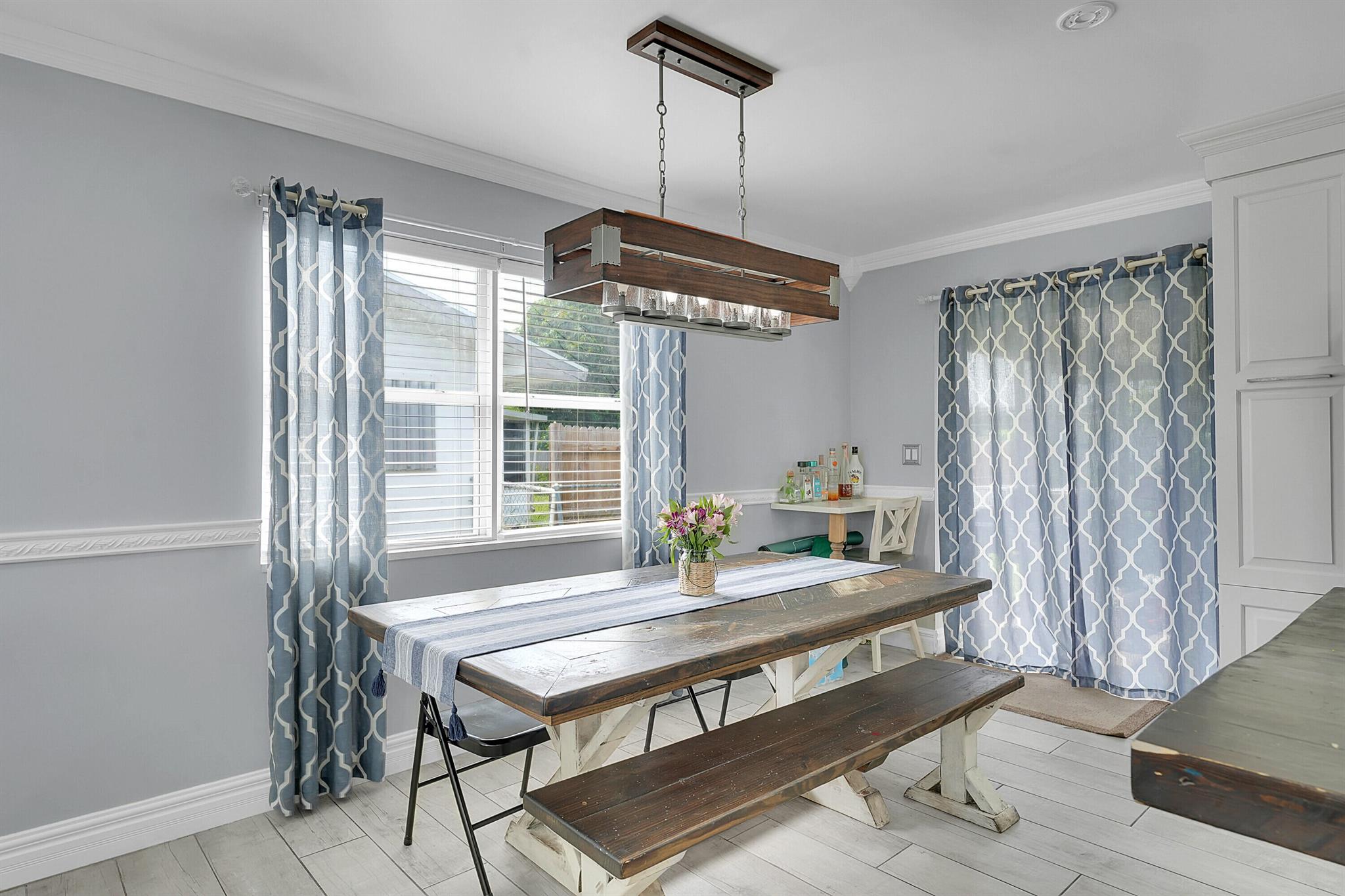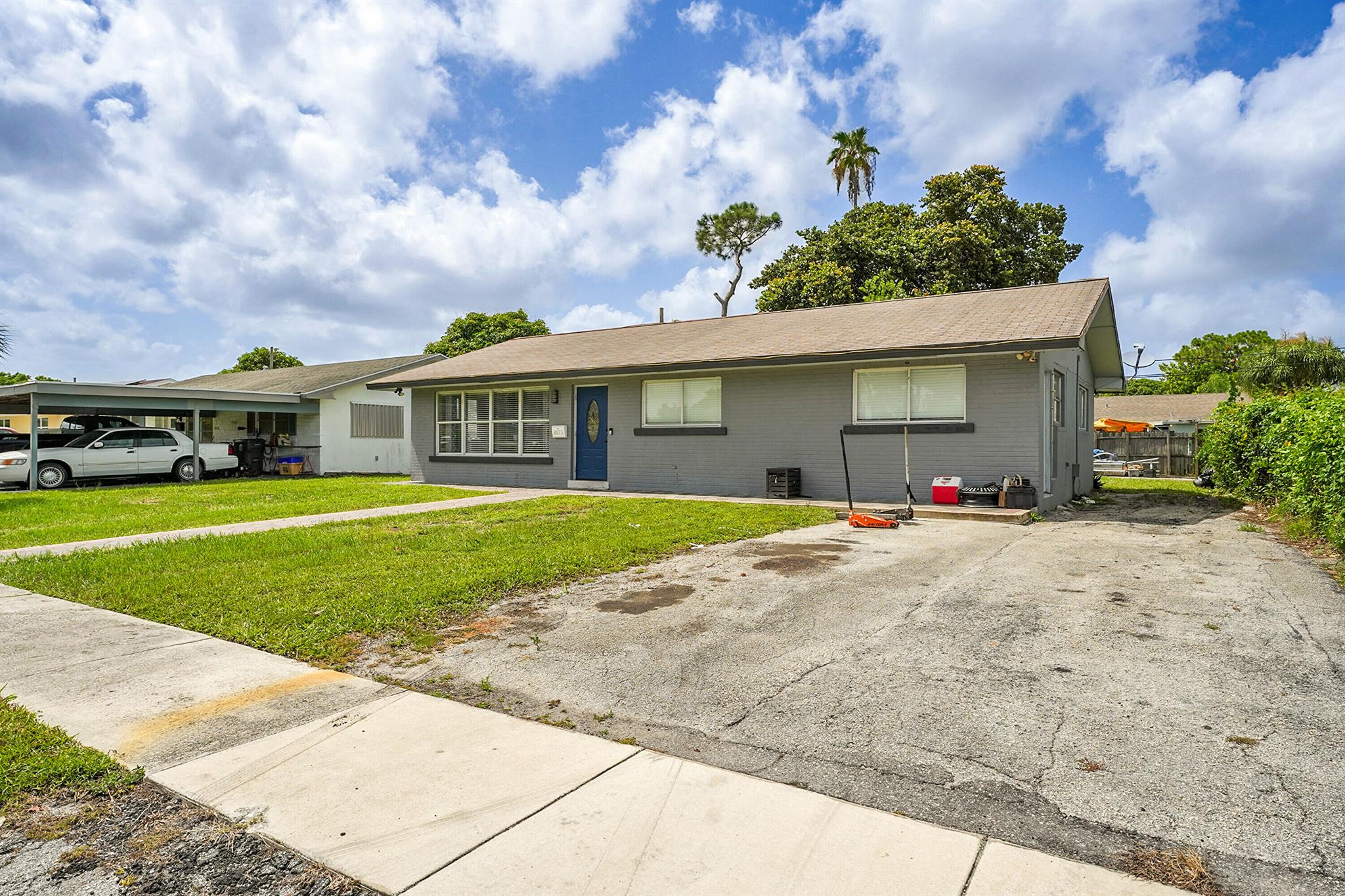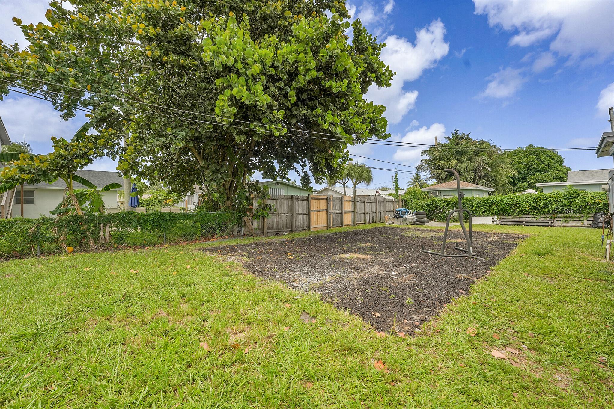 Welcome to this beautifully remodeled and upgraded 3 bedroom, 2 bathroom single story home located in the desirable Knotty Pine Acres community of West Palm Beach. Set on a spacious .17 acre lot with no HOA, this home offers a bright open floor plan with tile flooring throughout and a modern kitchen featuring a central island, pantry space, and upgraded stainless steel appliances. The layout flows easily into the living and dining areas, creating an inviting space for everyday living or entertaining. Both bathrooms have been tastefully renovated, and the home is equipped with storm shutters, central air conditioning, and ceiling fans. Outside, enjoy a spacious covered patio and a large fenced backyard with private garden views - perfect for relaxing or entertaining. Great location!