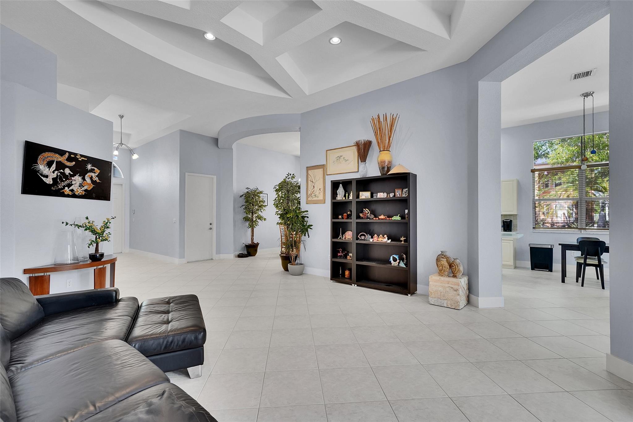 PRICE REDUCTION! Welcome to the Resort Style Gated Community of Lido Isles. Entering the home, you will be in awe of the High Volume Coffered Ceilings with recessed lighting. This stunning home has a separate dining room, interior laundry, spacious kitchen w/ large island, pantry, breakfast nook, white quartz counters, and stainless appliances. The breakfast nook & living room have French glass doors leading out to the covered patio & beautiful back yard boasting mature landscaping & lake view. The primary bedroom overlooks the lake & covered patio & features his & hers walk-in closets, The Primary bathroom has a walk-in shower, garden tub, & double sinks. Community offers a pool, gym, & playground & is near hospital, restaurants, shopping & I-75 + top rated schools. NOT in a flood zone.