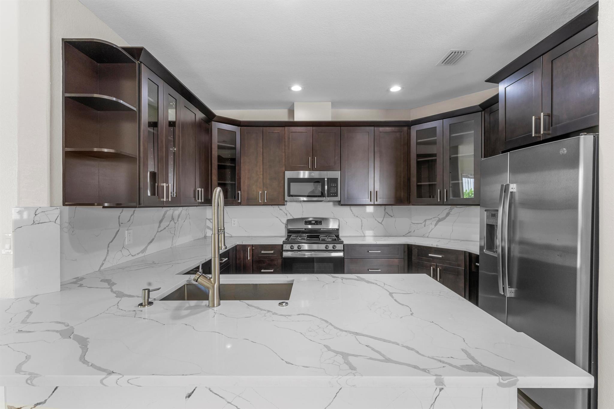 MAJOR PRICE IMPROVEMENT - Reduced by $50,000. Take advantage of this outstanding opportunity today. Fully Renovated 4 Bed, 3 Bath Lakefront Home in a prime location in Wellington! Discover this beautifully maintained one-story home offering 2,400 sq ft of living space, ideally situated on a quiet cul-de-sac. This lakefront gem has been extensively updated with over $110,000 in renovations completed in 2021 and 2024 ready for you to move right in! Key Features & Upgrades: Exterior Painted, upgraded gutters, and all windows, doors, and sliders equipped with full accordion hurricane shutters in 2021. Elegant, completely remodeled kitchen (2021) featuring quartz countertops & backsplash, stainless steel appliances, dishwasher (2023) and modern cabinetry - perfect for entertaining your guests