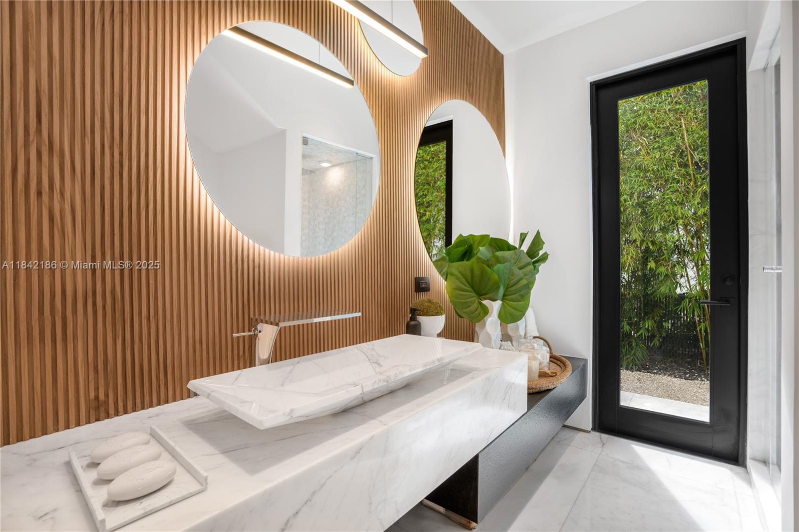 CASA EXUMAS – A Boater's Dream and a true Miami lifestyle experience. Nestled in the exclusive, gated community of Bay Point, this luxurious, modern tropical waterfront residence offers approx. 85 ft of water frontage, a private dock and direct access to Biscayne Bay. Enjoy high-end finishes, including spacious living room with 25-foot ceilings, sleek fireplace, formal dining room with wine cellar, family room, & gourmet kitchen. Six generous bedrooms feature private bathrooms and walk-in closets, including office and maid's quarters. Exteriors include a double-height, air-conditioned 3-car garage with car lift, 5-car motor court, infinity-edge pool, jacuzzi, summer kitchen, Ipe wood deck surrounded by tropical landscaping. Smart home system & generator. Private financing available.