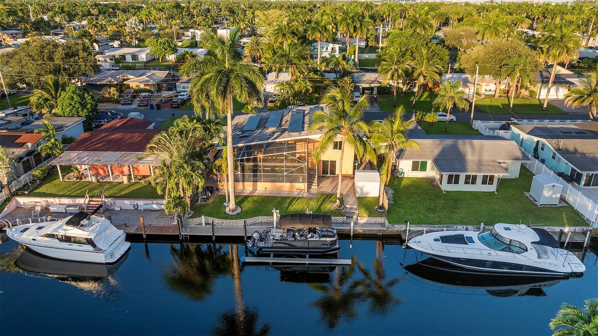 Beautifully updated tri-level waterfront home on a 65' deep-water canal in Lauderdale Isles with ocean access and no fixed bridges. Features include a 2018 roof (4 pt and wind mit available), full-home solar system (average electric ~$100/month) and a 17,000 lb boat lift with newer dock and shore power. Elegant layout offers the primary suite off the main living and a separate guest wing with three additional bedrooms. Screened in porch, pool and cabana bath right off the living room make it perfect for entertaining. Located near major commuter routes including I-95, Turnpike, and 595, with close proximity to the airport and cruise port. NON-HOA community with city-maintained boat ramp and park; offering freedom, flexibility, and the ultimate South Florida boating lifestyle.