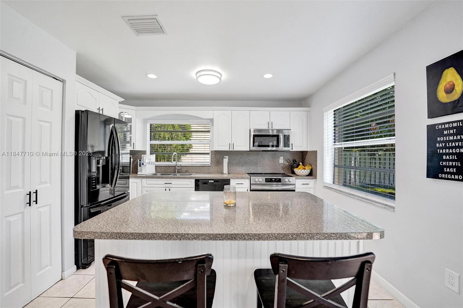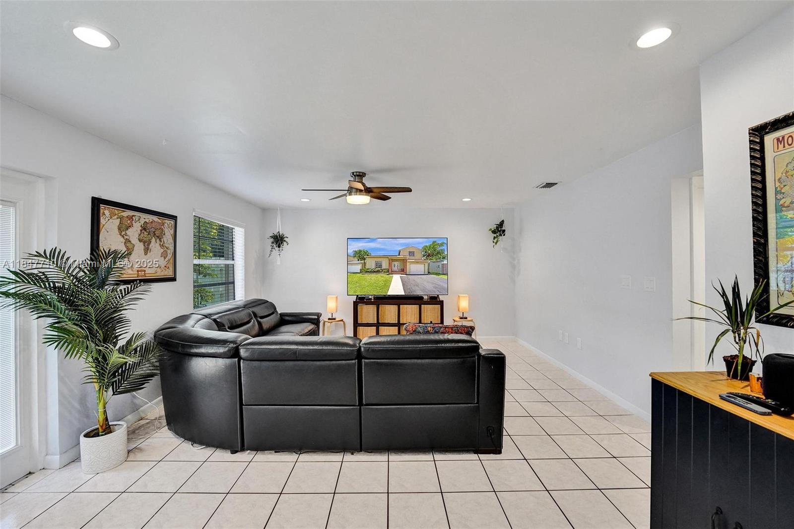 This beautiful and spacious home home sits in a peaceful cul-de-sac on a large lot, offering abundant natural light and vaulted ceilings. The main living areas feature tile and laminate flooring, while the newly updated bathrooms and smooth ceilings add a fresh touch. Enjoy extra storage or office space, and step outside to a fenced yard with your very own mango & banana fruit-bearing trees! Accordion shutters throughout provide extra peace of mind. Additional perks include fresh paint inside and out, ceiling fans, custom closet shelving & new electric panel. Located in beautiful Shenandoah, top-rated schools, easy access to highways, shopping, dining, the airport, and Sawgrass Mills Mall. Low HOA with access to community pool, parks, trails, tennis, and basketball courts. Check it out!