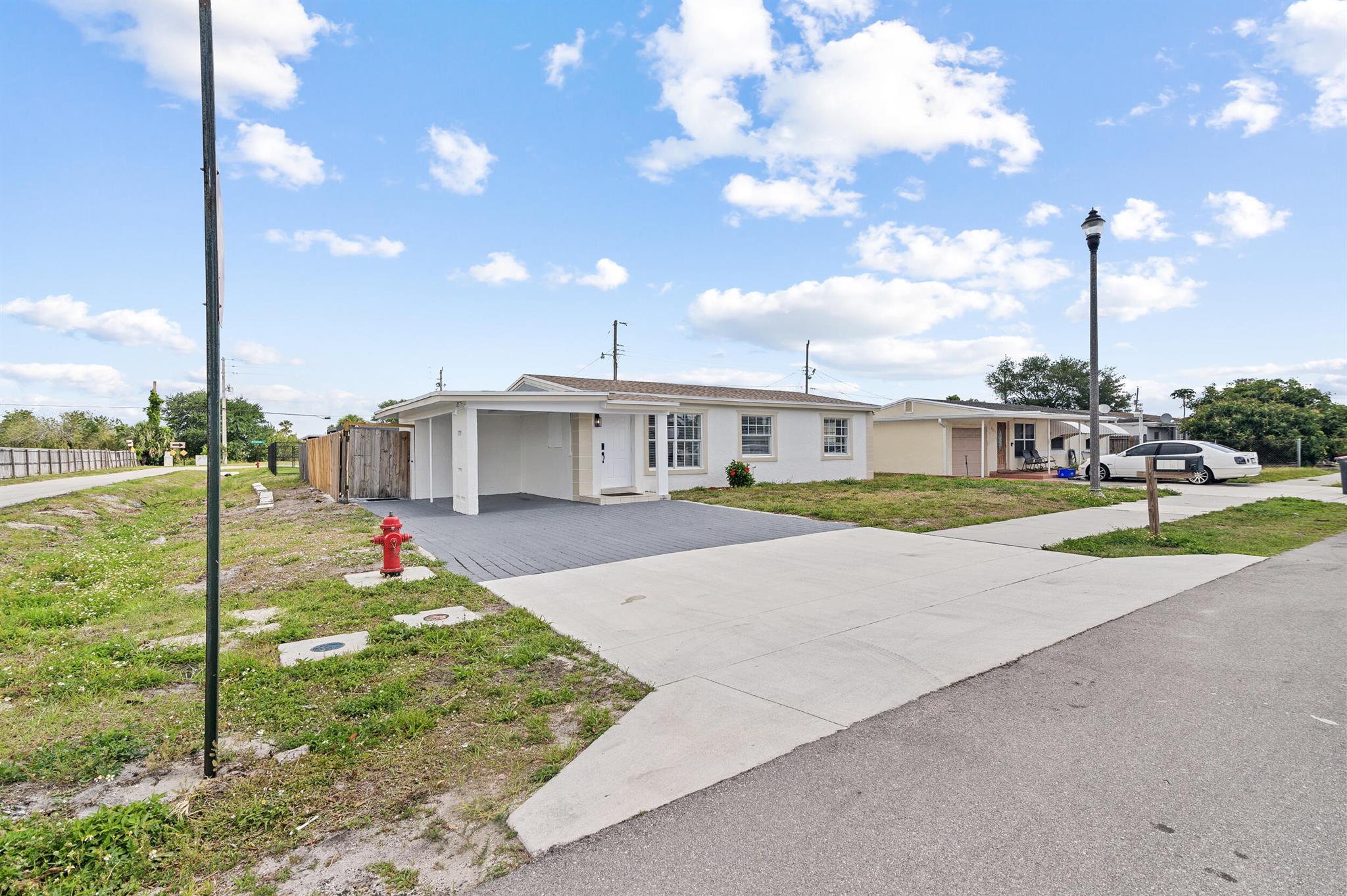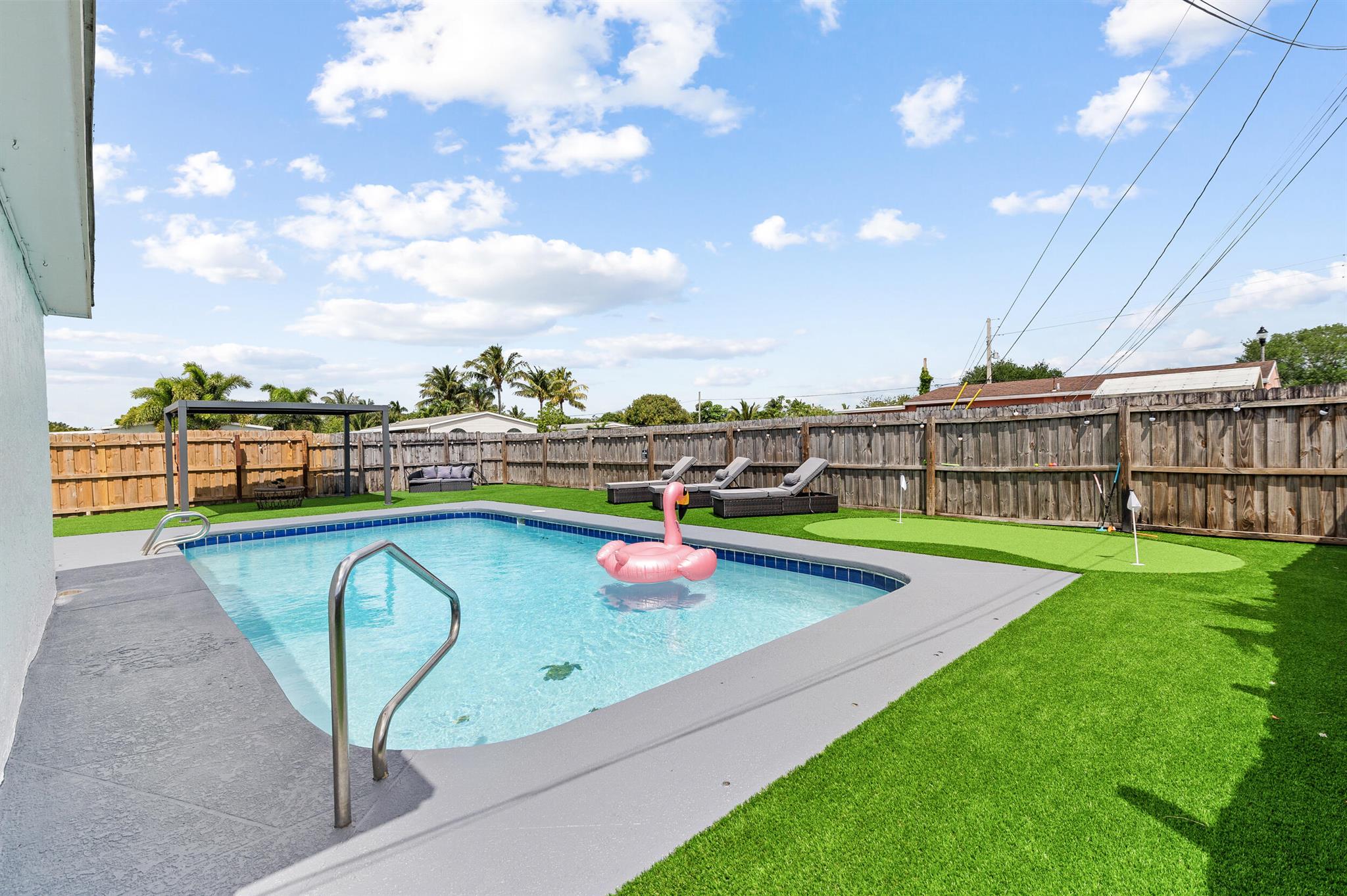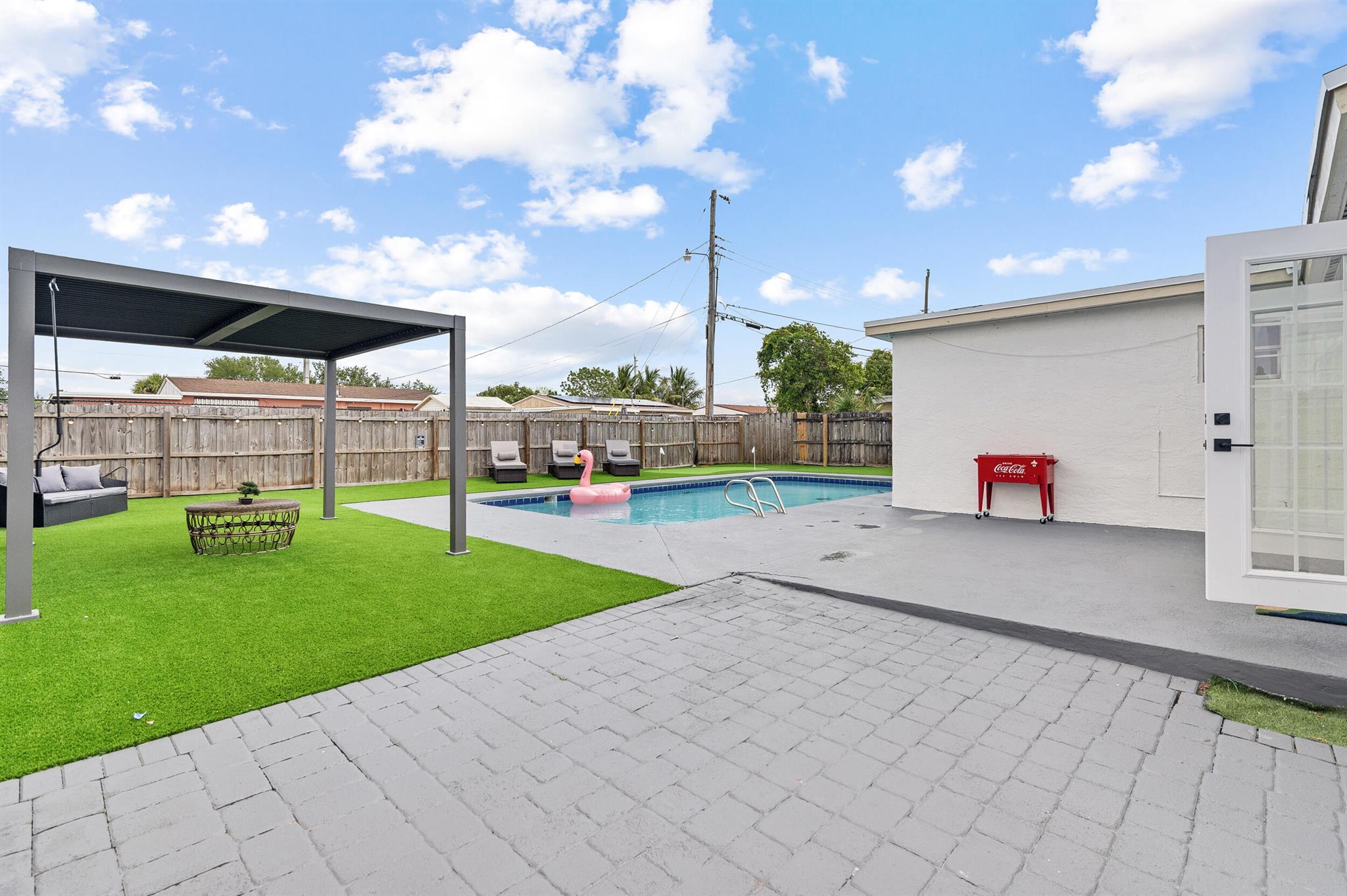 Incredible POOL home nestled on large CORNER lot in NON-HOA Community!! Endless possibilities await from this beautifully renovated 3 bedroom, 2 bath pool home, NEW ROOF (2024) in the heart of West Palm Beach! Owner has updated this single story residence with new designer paint, luxury vinyl flooring throughout (no carpet!), LED lighting and completely furnished like a model! Updated kitchen with granite counter tops and stainless steel appliances. HUGE primary suite with connected sitting area/office or den/media room. BOTH bathrooms updated with custom vanities - master boasts mosaic tile floor and large shower; guest bath offers LED mirror and combo tub/shower. RELAX in your private backyard oasis! Take advantage of the Florida Sunshine as you lounge around your large open pool,