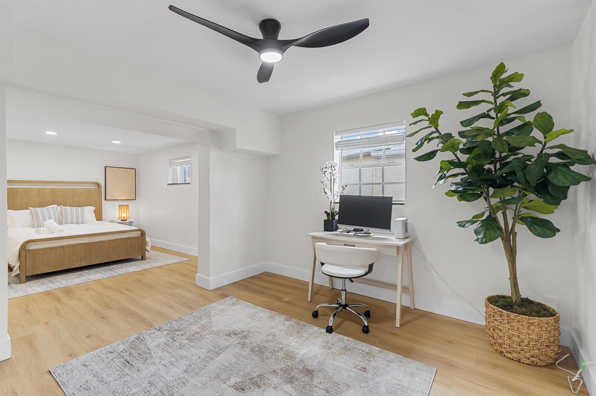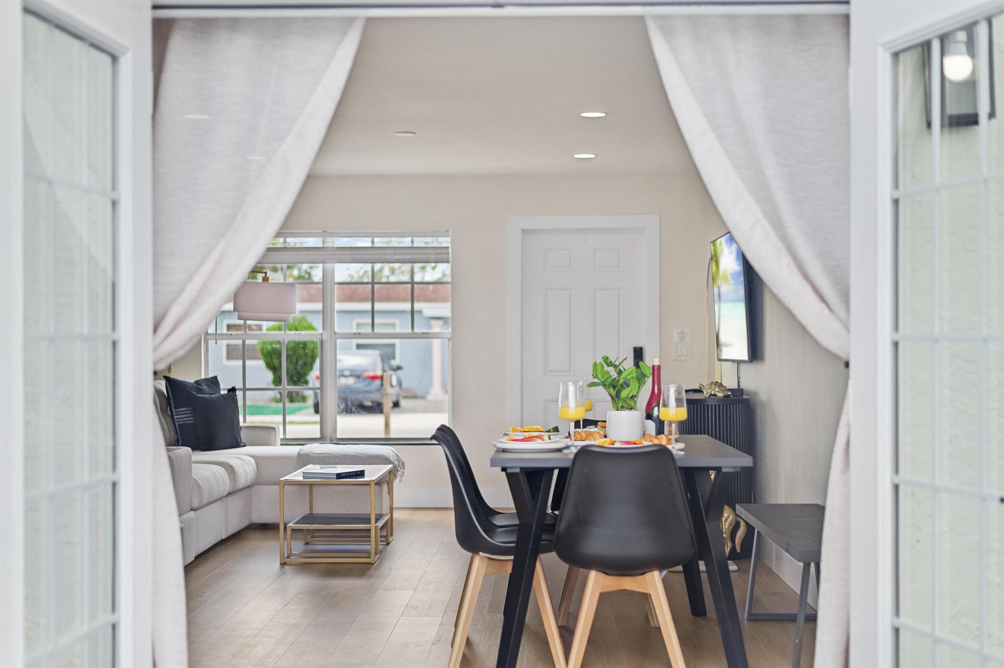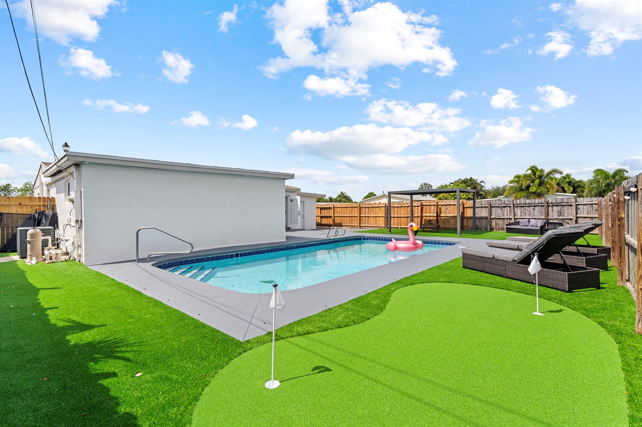 Incredible POOL home nestled on large CORNER lot in NON-HOA Community!! Endless possibilities await from this beautifully renovated 3 bedroom, 2 bath pool home, NEW ROOF (2024) in the heart of West Palm Beach! Owner has updated this single story residence with new designer paint, luxury vinyl flooring throughout (no carpet!), LED lighting and completely furnished like a model! Updated kitchen with granite counter tops and stainless steel appliances. HUGE primary suite with connected sitting area/office or den/media room. BOTH bathrooms updated with custom vanities - master boasts mosaic tile floor and large shower; guest bath offers LED mirror and combo tub/shower. RELAX in your private backyard oasis! Take advantage of the Florida Sunshine as you lounge around your large open pool,