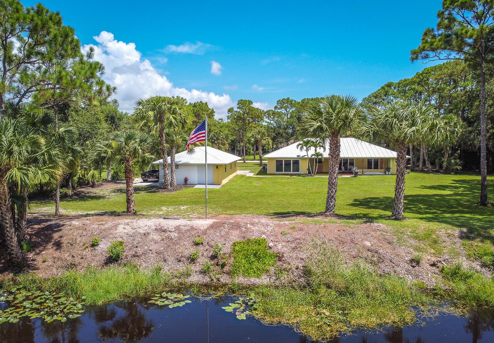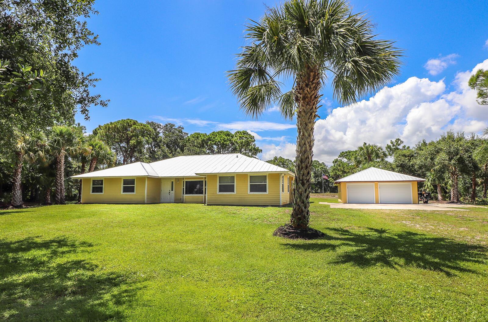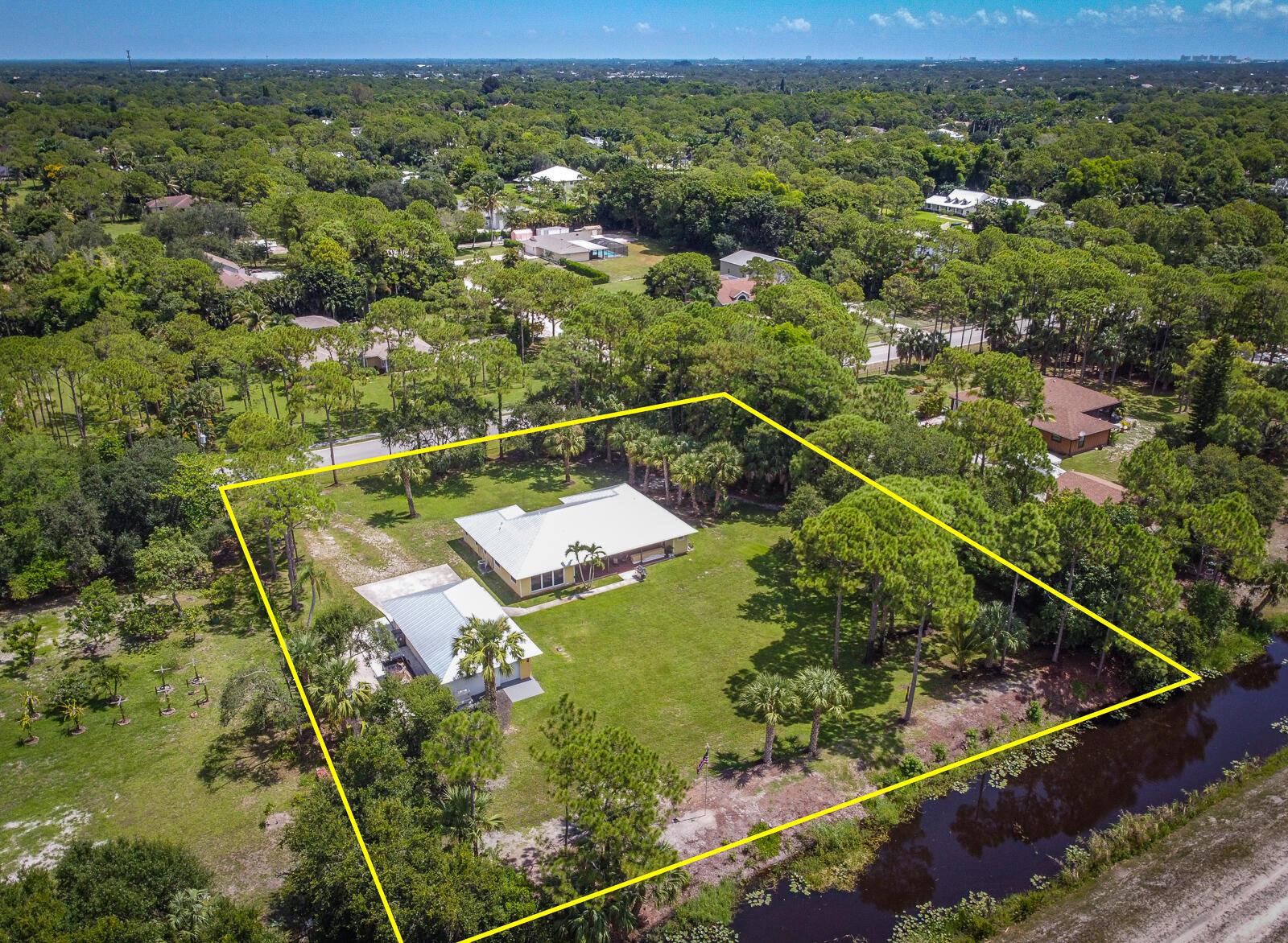 This 4BR/3BA home with a detached 24'x45' garage is the perfect project home - situated on one of the nicest properties in Palm Beach Country Estates: a RARE 1.34-acre lot on a paved road that backs up to a canal and 10,000-acre nature preserve. The interior has been partially gutted down to the studs - ready for new drywall, kitchen, electrical, flooring, etc. Many improvements already installed: NEW metal roof on both house and garage in 2023; NEW 26kW Generac whole-house generator with 1,000 gallon buried propane tank stubbed out for additional future hookups; NEW PGT hurricane impact sliders and cabana door. Two of the three bathrooms are newly-updated.