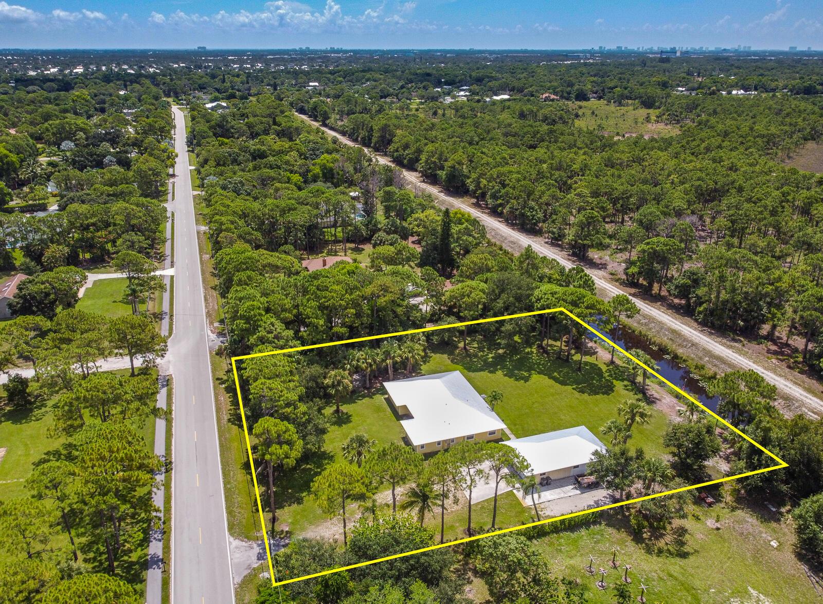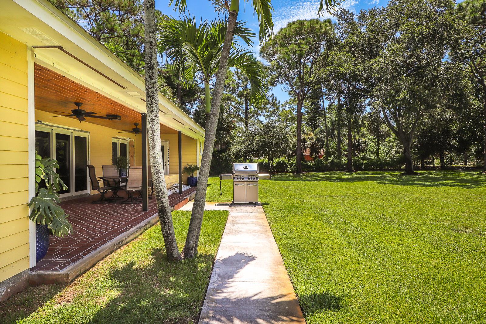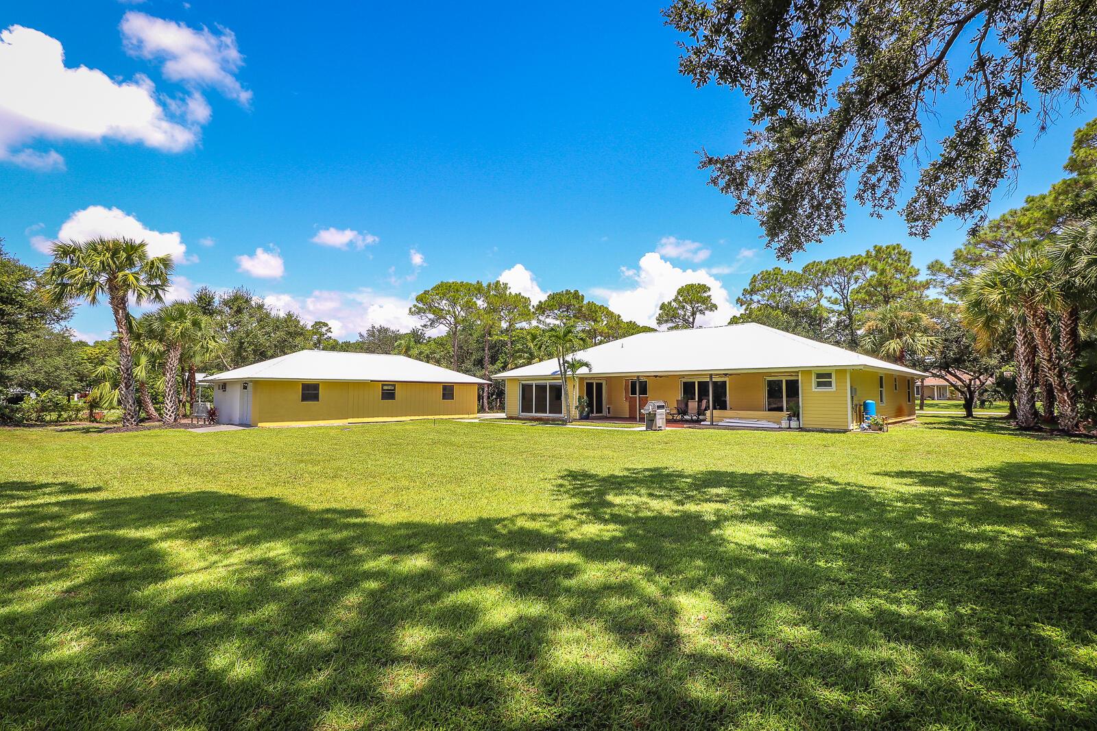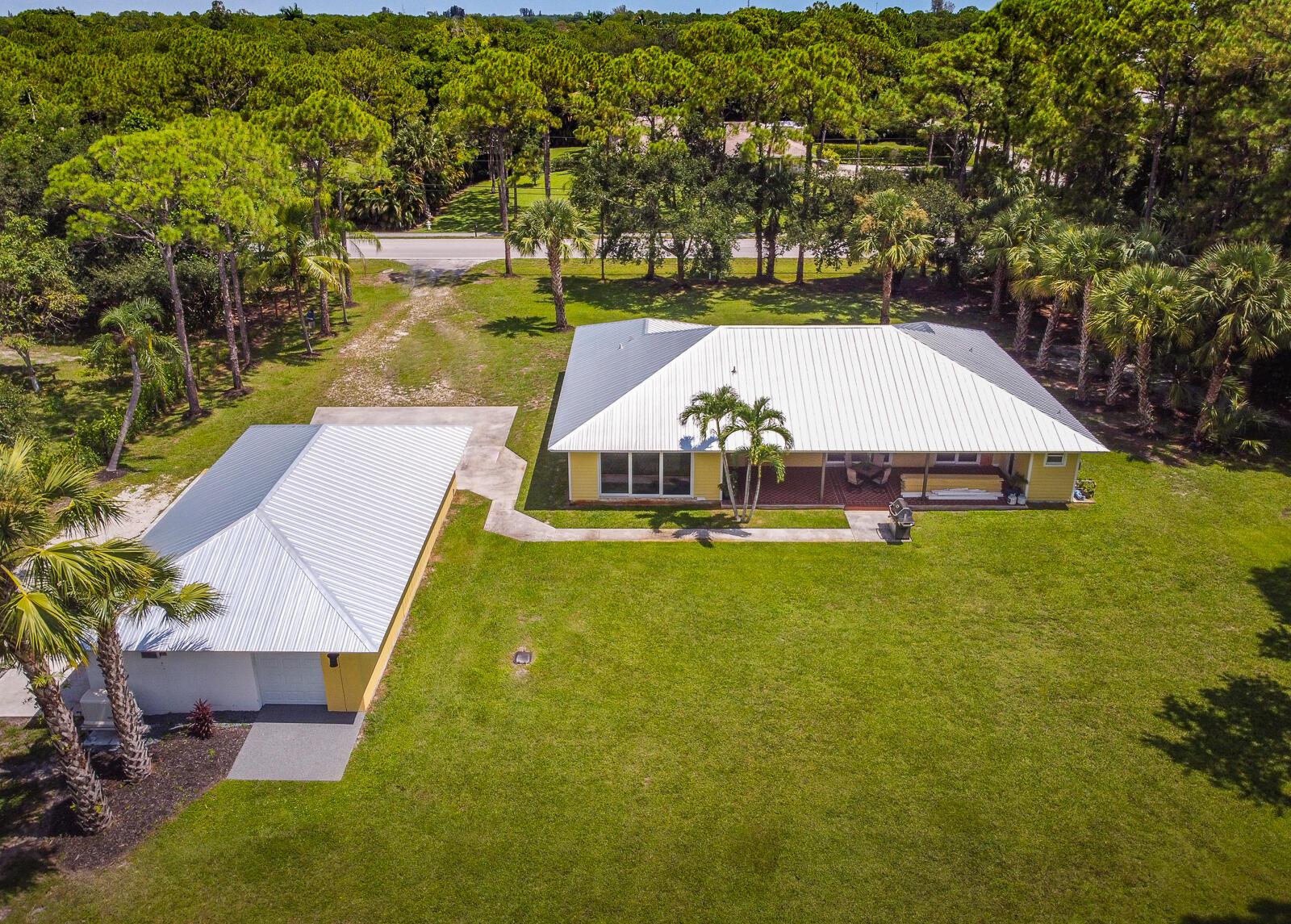 This 4BR/3BA home with a detached 24'x45' garage is the perfect project home - situated on one of the nicest properties in Palm Beach Country Estates: a RARE 1.34-acre lot on a paved road that backs up to a canal and 10,000-acre nature preserve. The interior has been partially gutted down to the studs - ready for new drywall, kitchen, electrical, flooring, etc. Many improvements already installed: NEW metal roof on both house and garage in 2023; NEW 26kW Generac whole-house generator with 1,000 gallon buried propane tank stubbed out for additional future hookups; NEW PGT hurricane impact sliders and cabana door. Two of the three bathrooms are newly-updated.
