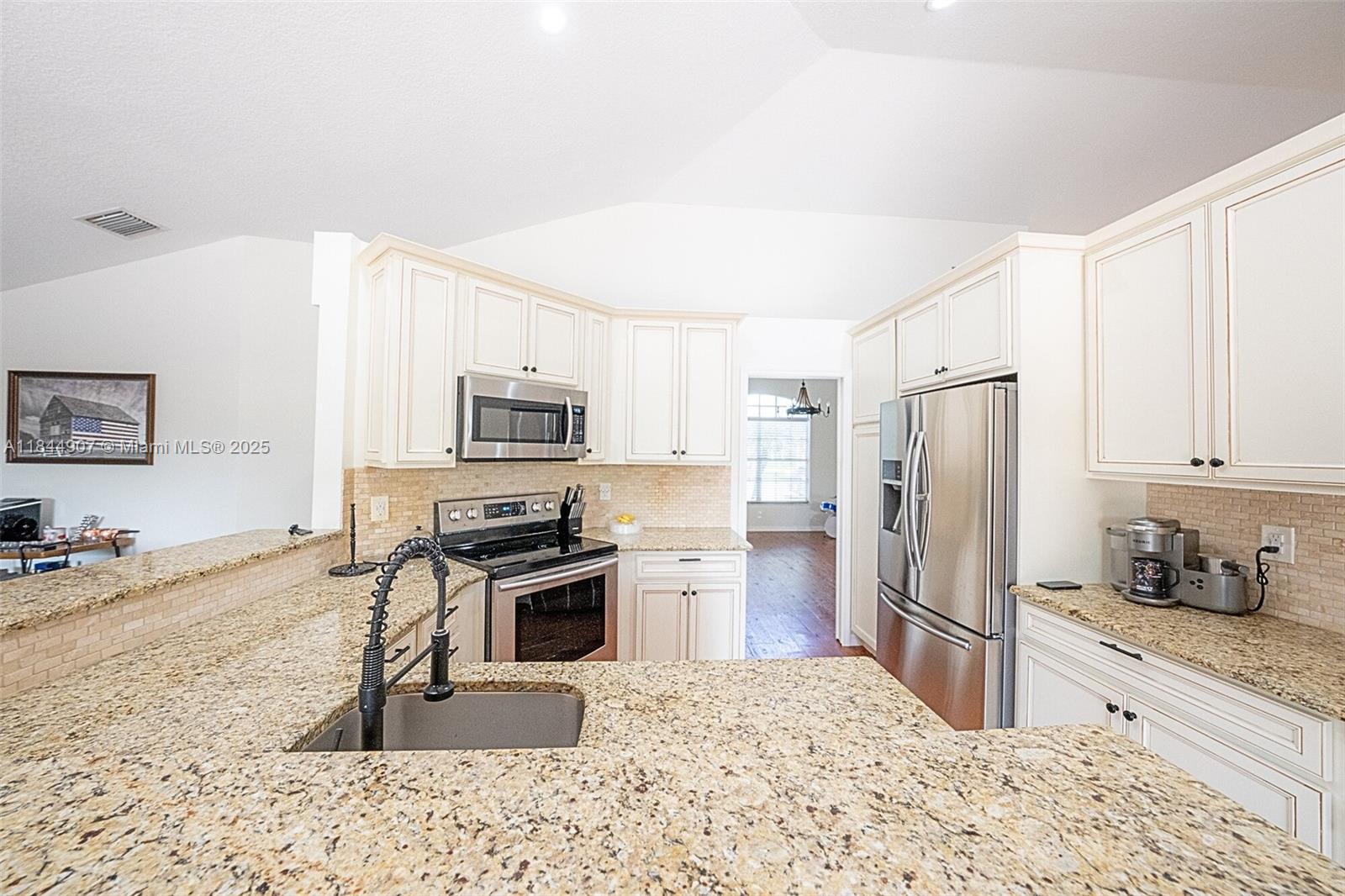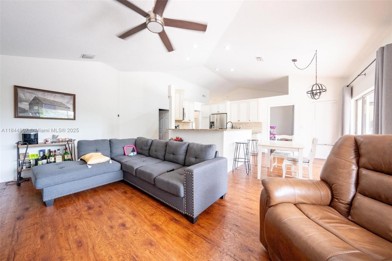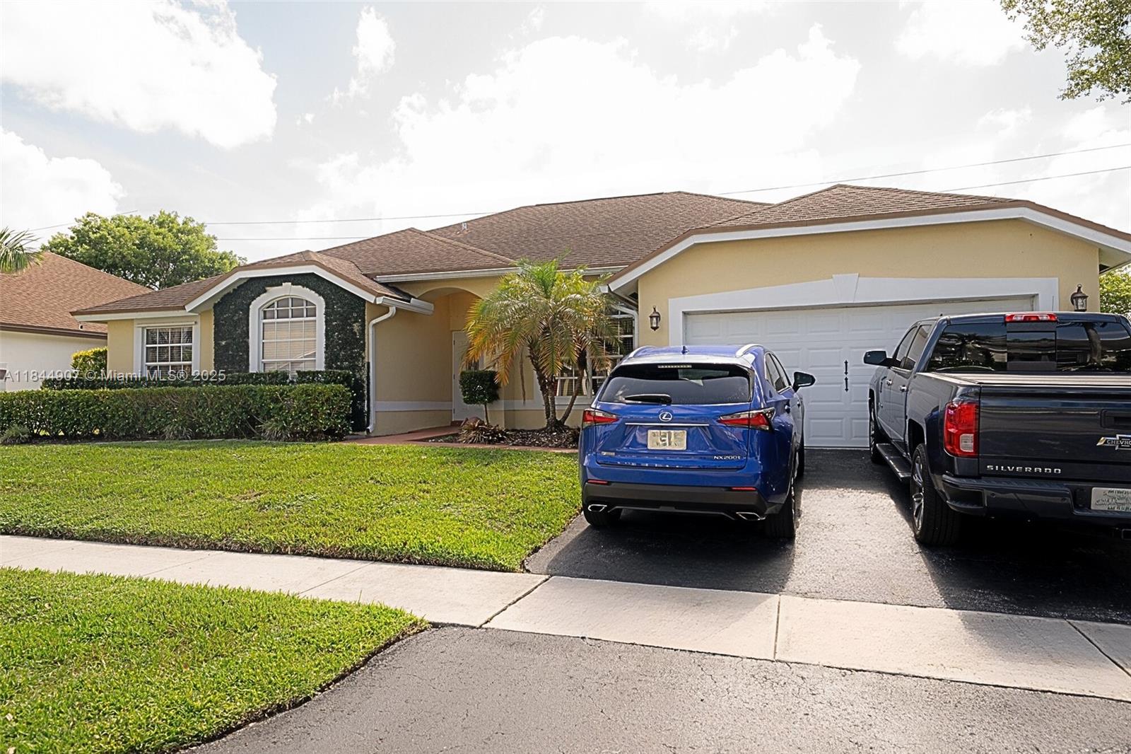 Large, 4/2 pool home on a 8,250 sq ft lot in top-rated school zone. Best price per sq. foot! Vaulted ceilings, all bedrooms located together on one side of the home. Dual zone ACs, large formal living room and formal dining room area. Kitchen is open to family room and dinette area. Two sets of sliding doors lead to covered terrace and screened pool. Master suite features spacious bathroom with separate tub and shower, extra closet, and cabana access. All bedrooms and kitchen and bath are tiled. Double garage has central air, beautiful epoxy floors, thermal barrier padding on its impact electric garage door, side entrance, and closet for AC and timed water heater. No rear neighbor. No HOA approval. Flood Zone X. Includes 1-year American Home Shield Warranty.
