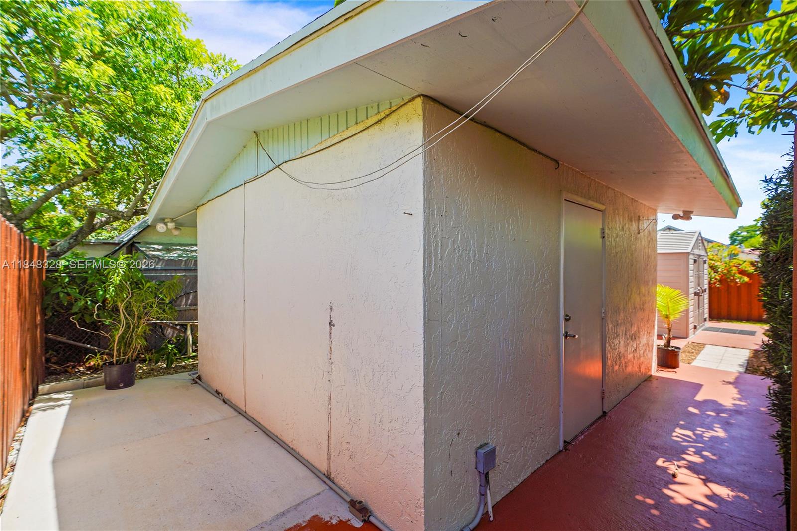 Inviting 3-bedroom, 2-bath home in Coral Villas featuring a spacious family room and open kitchen with updated cabinets and modern appliances. New A/C (July 2025) and impact windows provide comfort and efficiency. Highlights include Bahama shutters, Chicago brick 4-car driveway, and newly tiled front porch. The fully fenced backyard offers a covered patio with insulated roof, mature landscaping, and ample space to relax or entertain. A detached 1-bedroom, 1-bath studio with private entrance and impact windows adds income potential or guest space. Conveniently close to Coral Villas Park, Schenley Park, shopping, and dining.