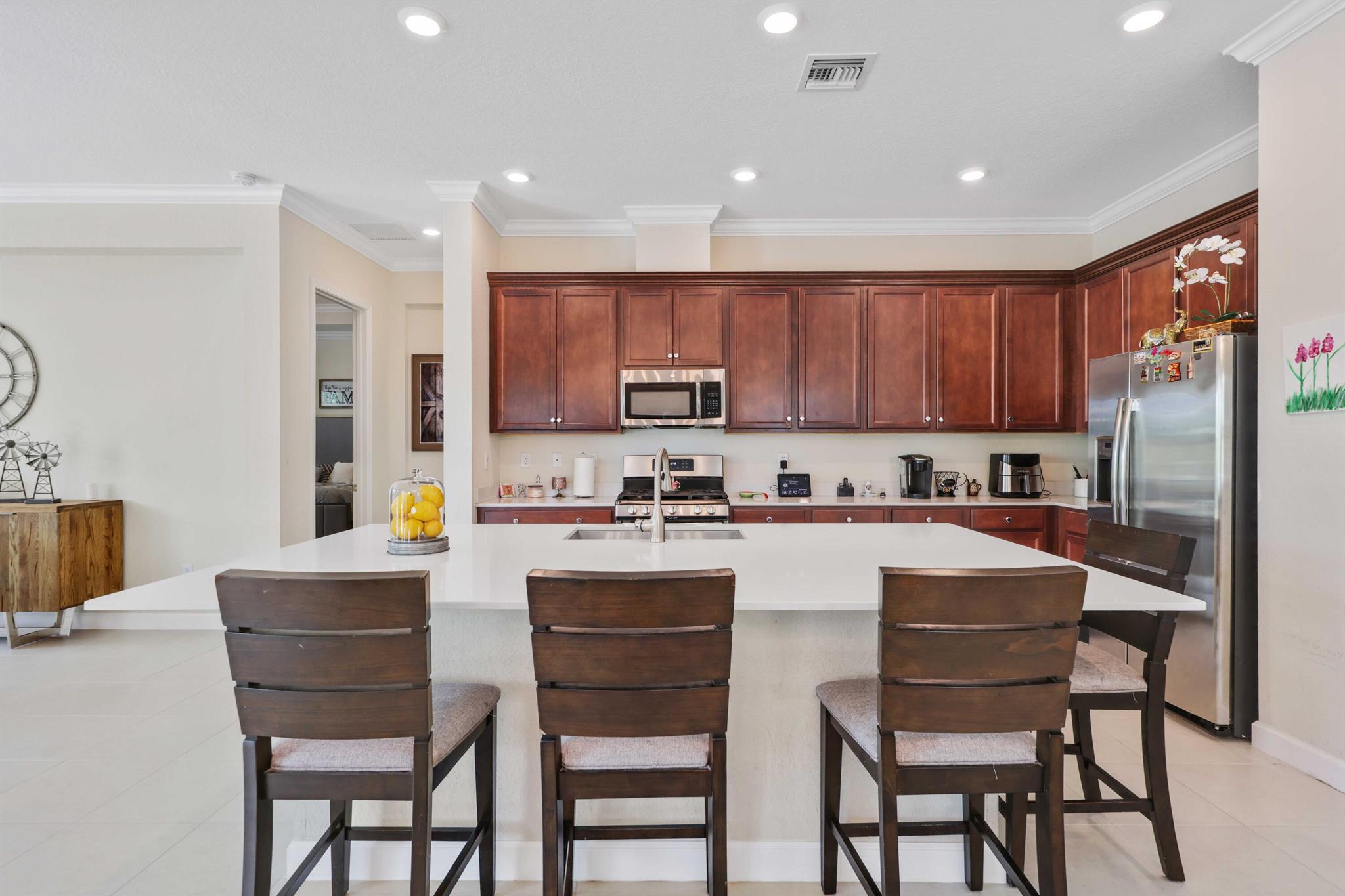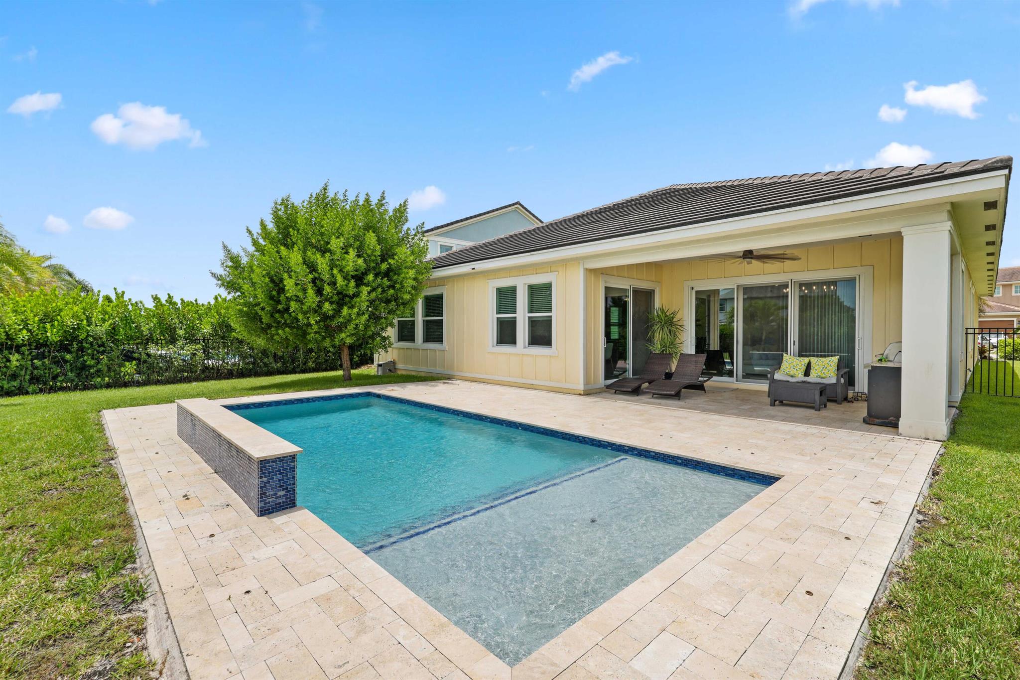 Experience the lifestyle you have been searching for in Arden with this 3-bedroom, 3-bath single-story home in Arden. You will love the backyard paradise with a covered patio, heated saltwater pool with LED lighting and a waterfall, fenced oversized backyard with three gates, and professional landscaping--ideal for outdoor entertaining. Inside, there are high ceilings and impact windows and an open layout. The upgraded kitchen with an island will be the gathering place. The primary suite offers dual sinks and a walk-in closet. Additional highlights include a 3-car garage, tile roof, custom lighting, and a prime lot backing to a peaceful common area. You will love the home however you will love the resort-style amenities and top schools nearby.