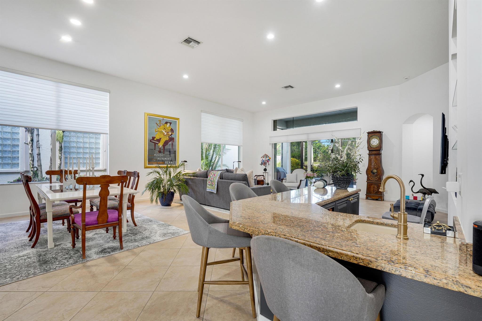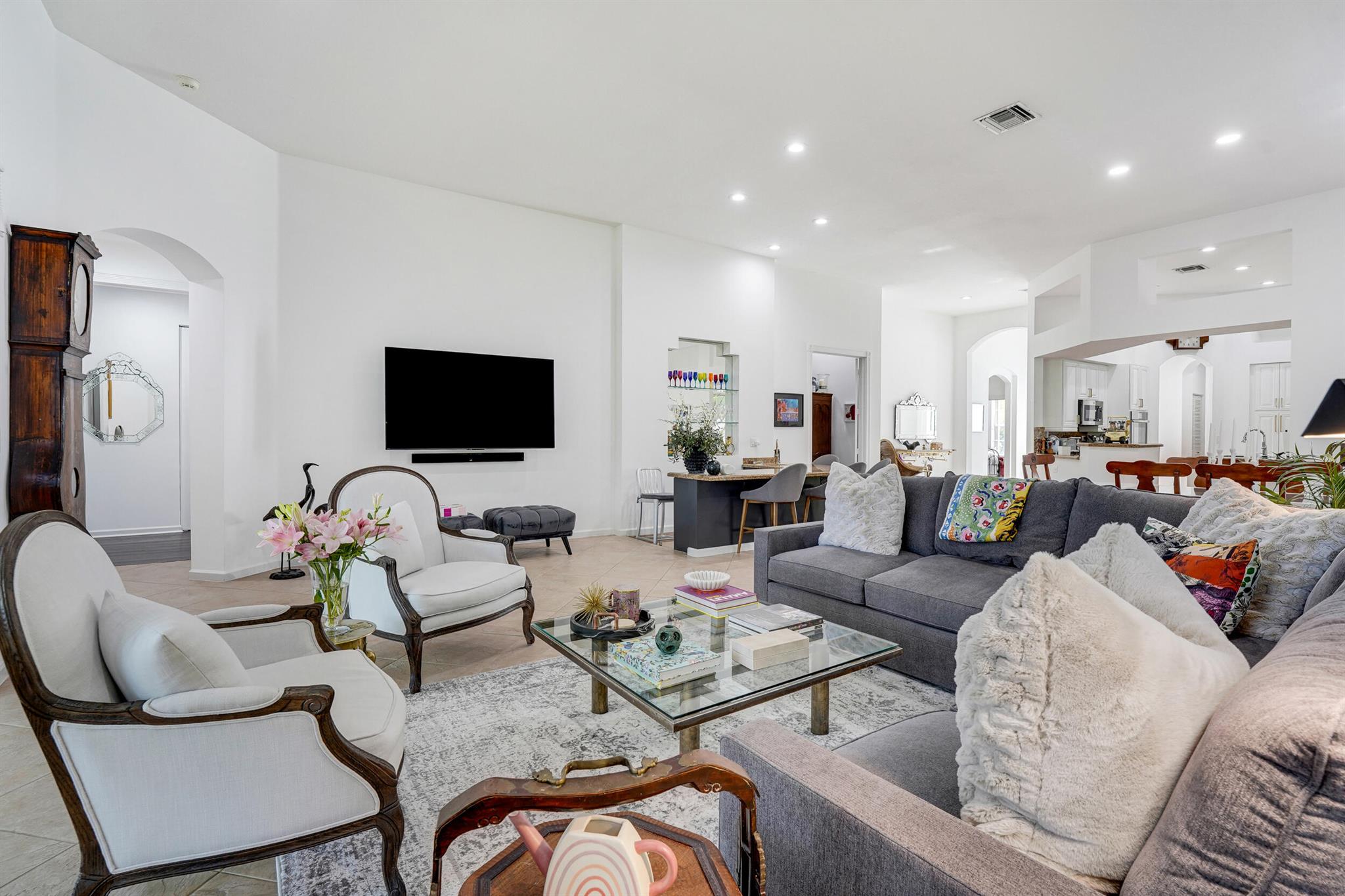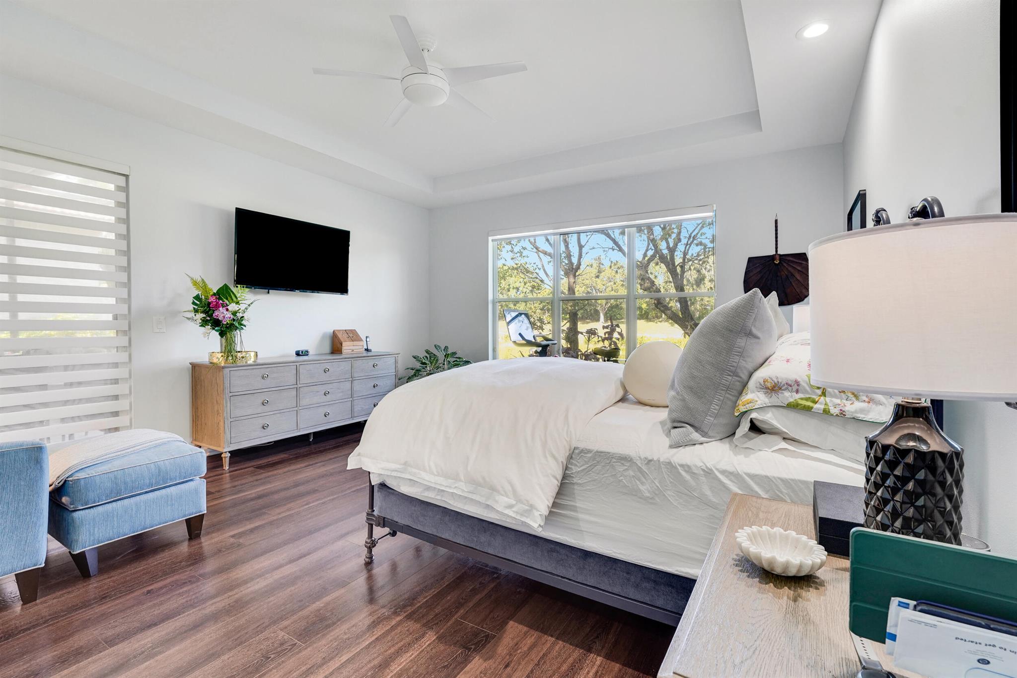 Welcome to your hidden gem at Manchester Lakes in the prestigious Wycliffe Country Club! This spacious 3,000 sq ft home offers a luxurious and comfortable lifestyle with 3 bedroom suites plus a dedicated office/den and 3.5 bathrooms. Step inside and discover a bright and airy layout featuring high ceilings and an abundance of natural light streaming through large windows throughout. The white kitchen is a chef's delight, boasting granite countertops, stainless steel appliances, and a charming breakfast nook with a large window offering delightful views. The beautiful primary bedroom is a serene retreat with wood-inspired flooring that extend throughout all the bedrooms. Enjoy the Florida lifestyle on your screened-in patio, perfect for relaxing or entertaining.