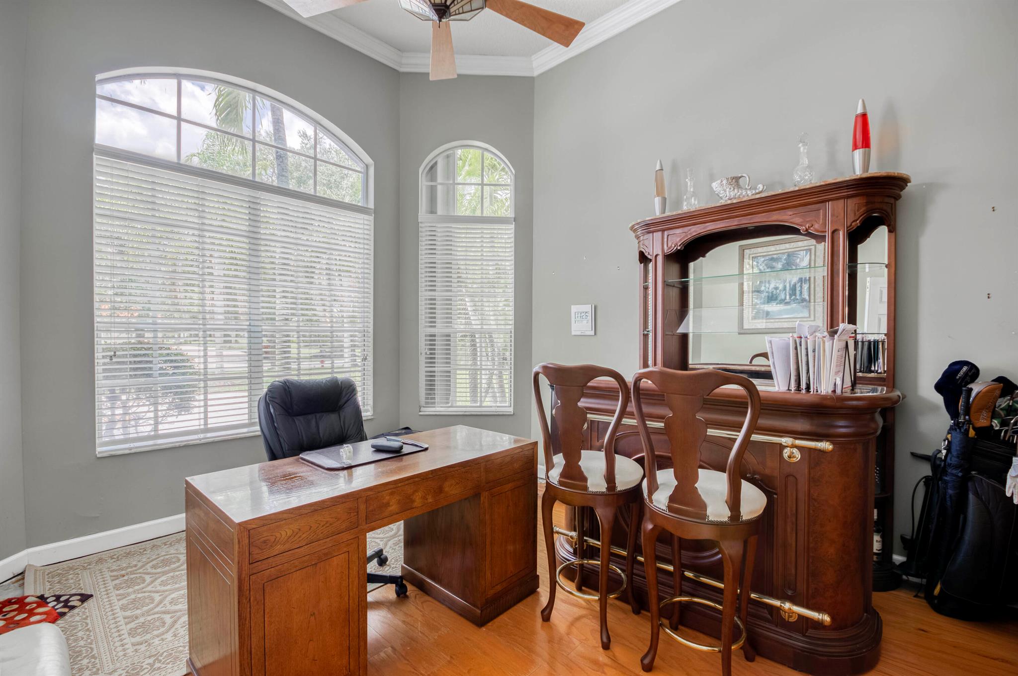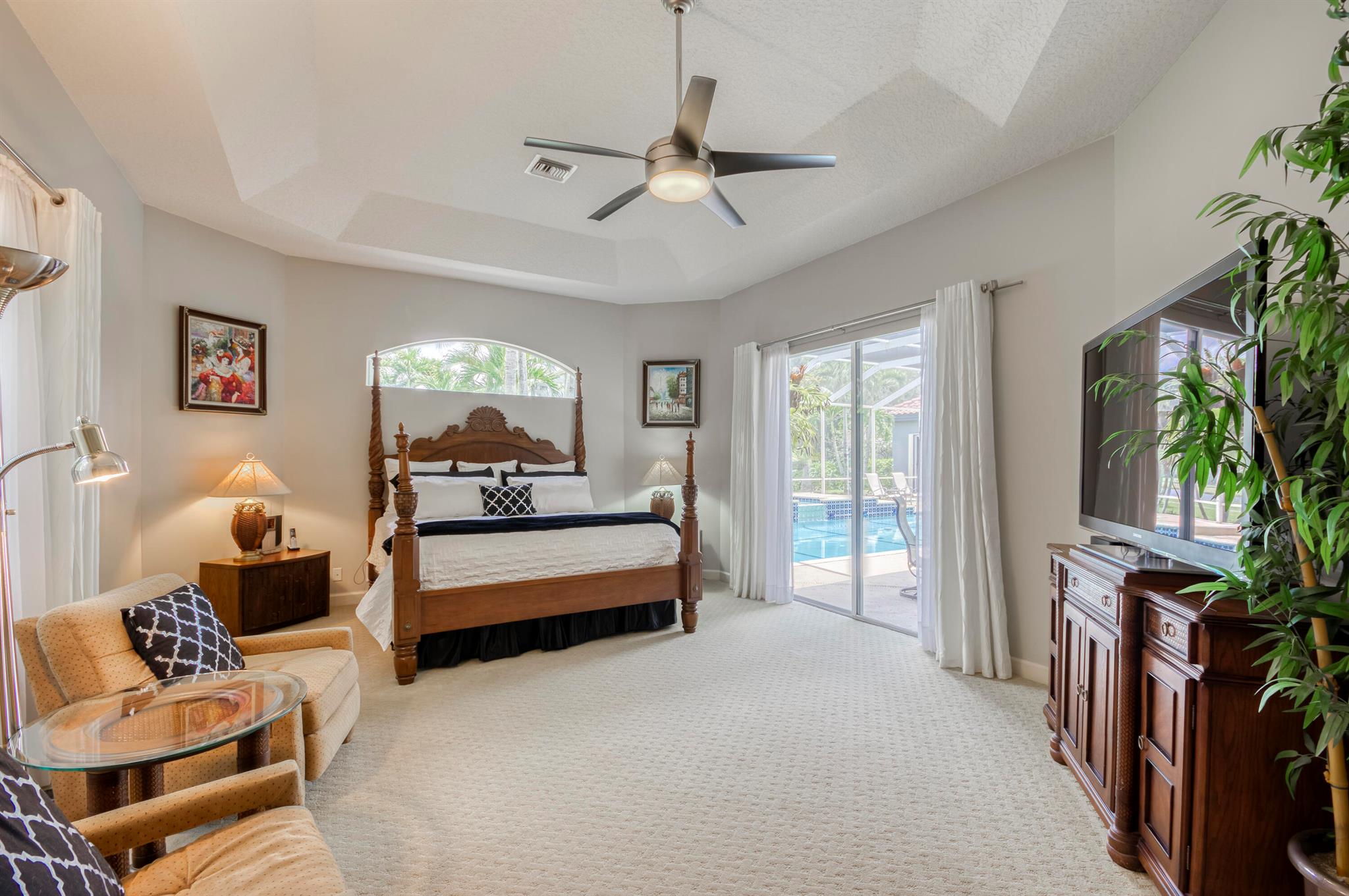 Wonderful open floor plan built on cul-de-sac overlooking wide expanse of golf and lake. Many decorator features, clerestory windows, architectural ceilings.All bedrooms Ensuite!! Kitchen has top-of-the-line appliances and Corian counters. Three-car garage. Three-zone air. Fourth bedroom has separate entrance (lovely for in-law suite). Like-new great family home with expanded fourth bedroom PLUS den/office. Many areas have wide views of lake and 17th tee of Estates Course. Home has many decorator touches starting with porte-cochere and covered entry, plant ledges, and crown moldings.