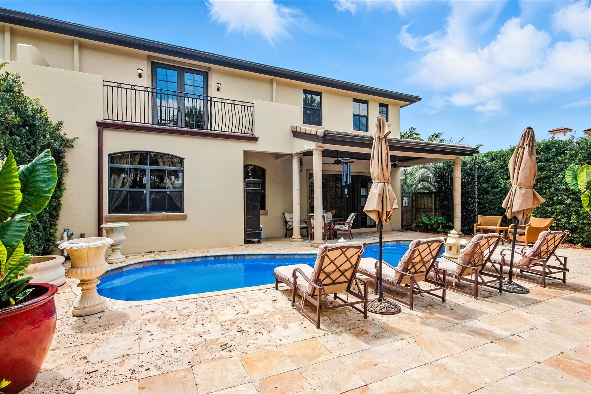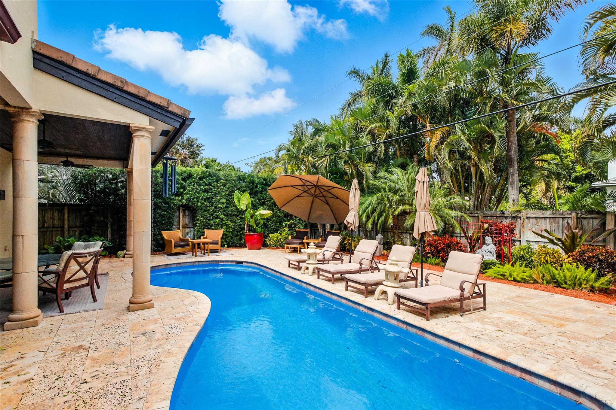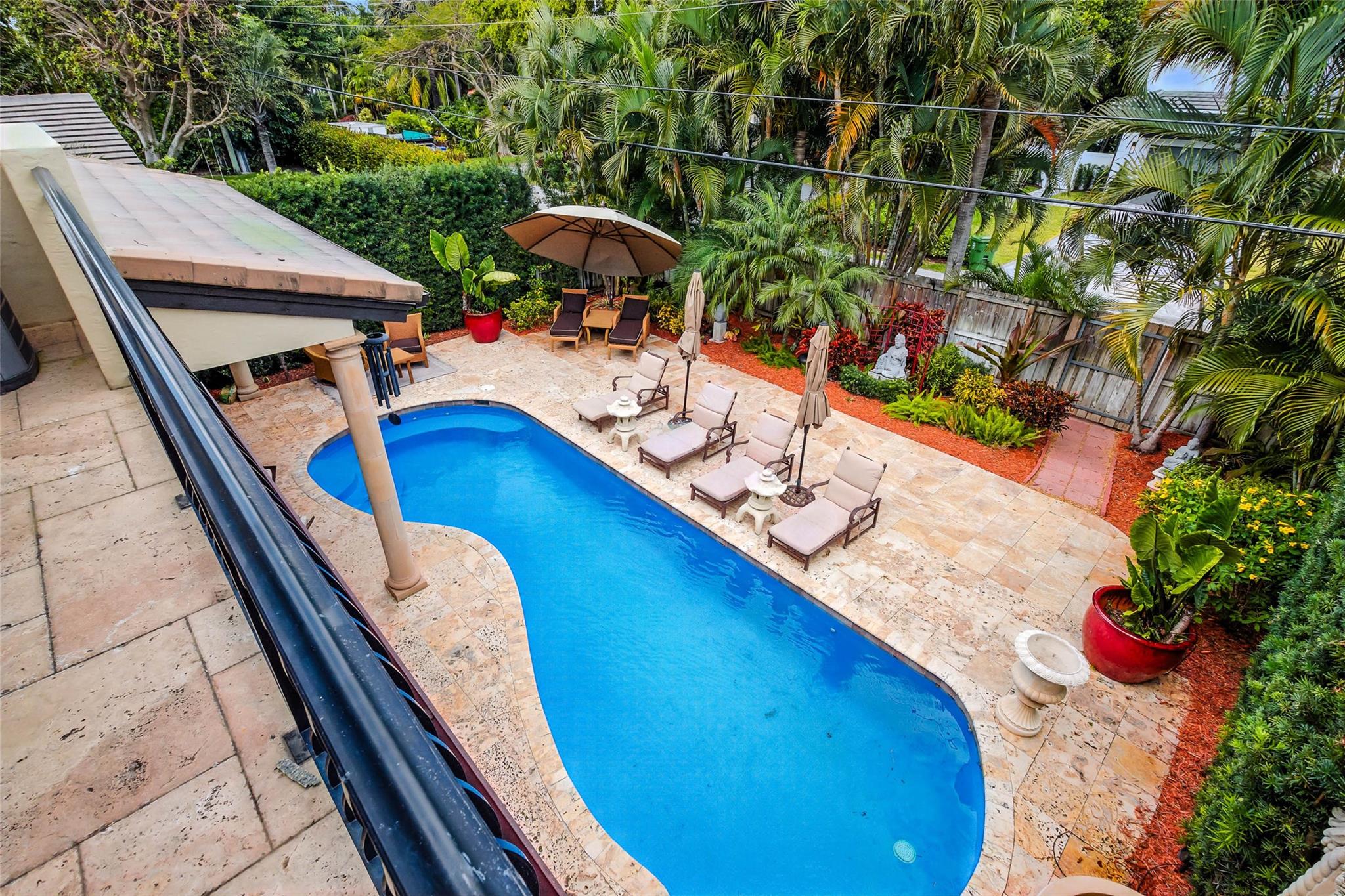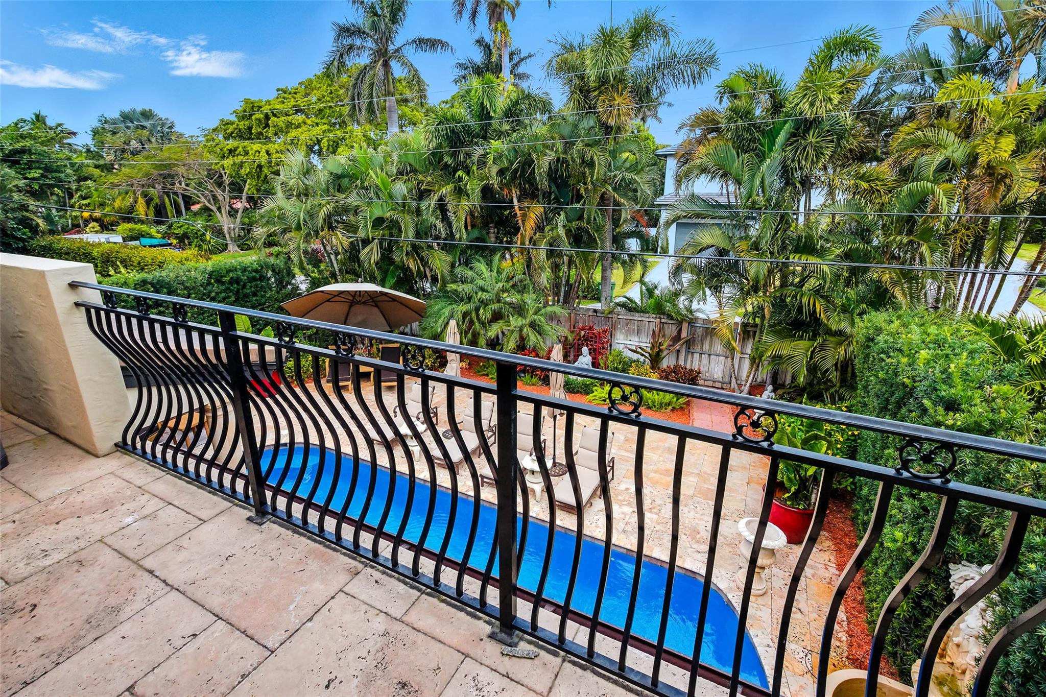 Spacious 5 bedroom townhome in the heart of Coral Ridge. Located on a quiet, tree-lined street and zoned for A-rated Bayview Elementary. The private backyard features a sparkling heated, salt water pool, ideal for relaxing & entertaining while offering the feel of a single-family home. 1st floor highlights include an open kitchen with black granite counters, gas range & double oven. Tumbled marble floors in living area, family room with breakfast nook, formal living & dining spaces & bedroom and/or home office. Upstairs a large primary suite with 2 WIC & balcony overlooking the backyard. Bonus room & 3 additional spacious bedrooms. Hurricane impact windows/doors, 2 zone AC (2022 & 2025), buried propane tank & ADT security system. Gas hookup already in backyard for future outdoor kitchen.