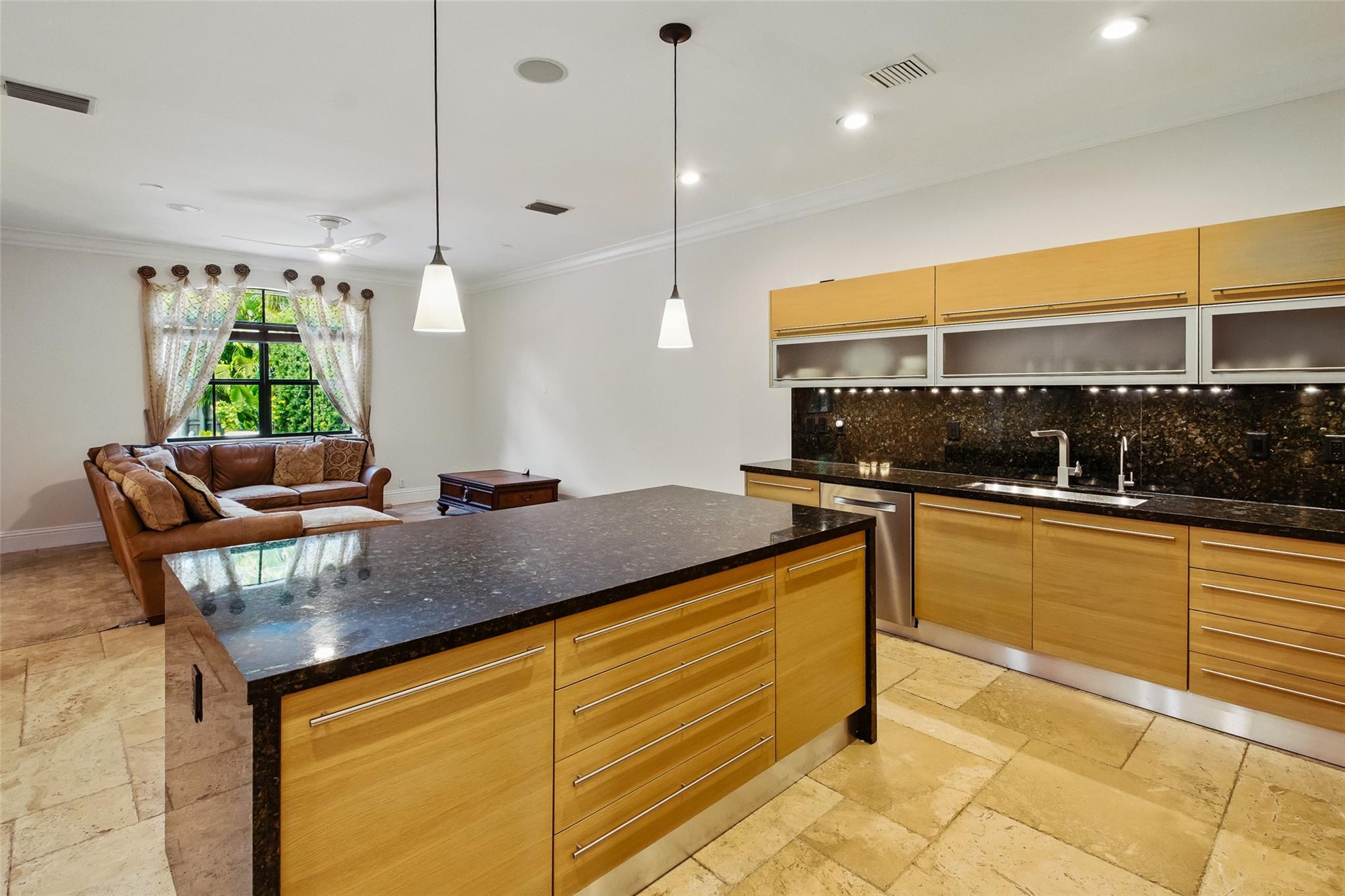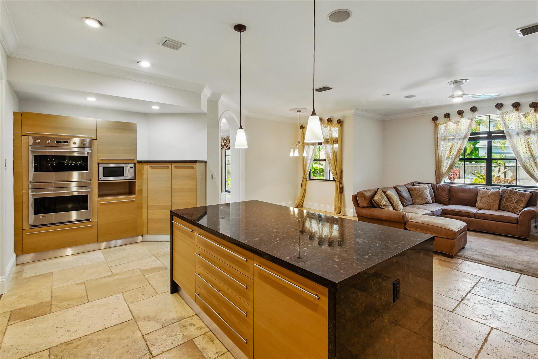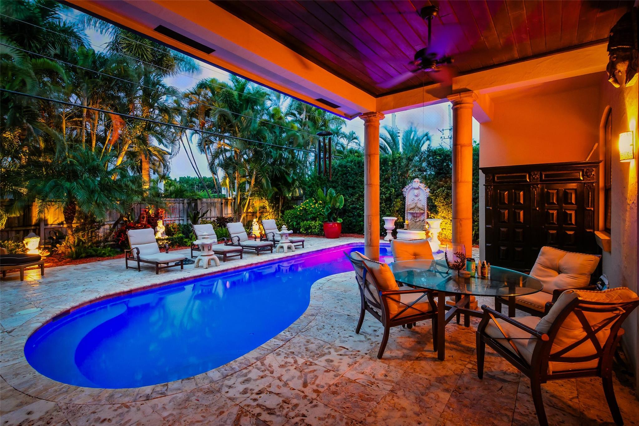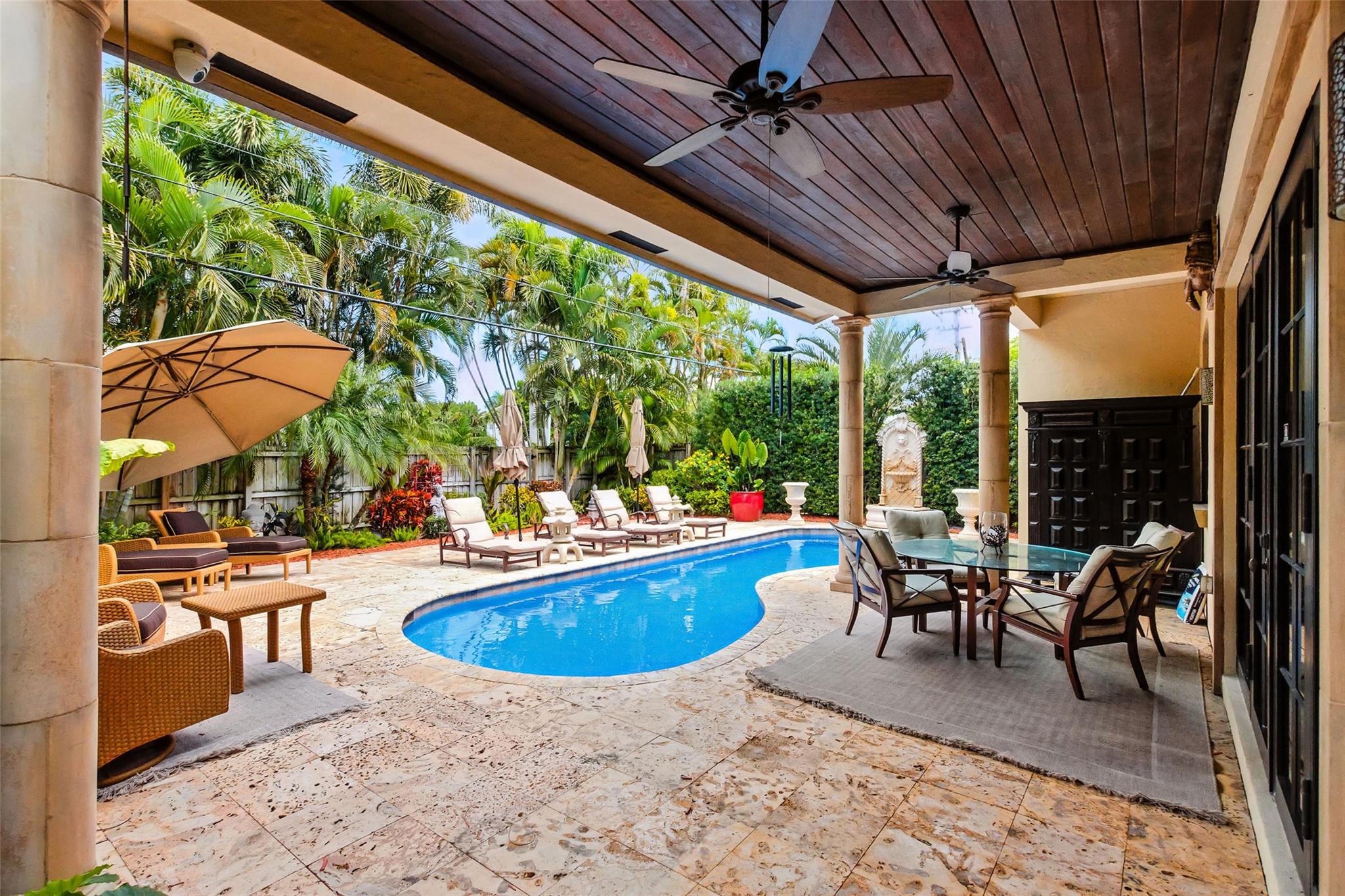 Spacious 5 bedroom townhome in the heart of Coral Ridge. Located on a quiet, tree-lined street and zoned for A-rated Bayview Elementary. The private backyard features a sparkling heated, salt water pool, ideal for relaxing & entertaining while offering the feel of a single-family home. 1st floor highlights include an open kitchen with black granite counters, gas range & double oven. Tumbled marble floors in living area, family room with breakfast nook, formal living & dining spaces & bedroom and/or home office. Upstairs a large primary suite with 2 WIC & balcony overlooking the backyard. Bonus room & 3 additional spacious bedrooms. Hurricane impact windows/doors, 2 zone AC (2022 & 2025), buried propane tank & ADT security system. Gas hookup already in backyard for future outdoor kitchen.