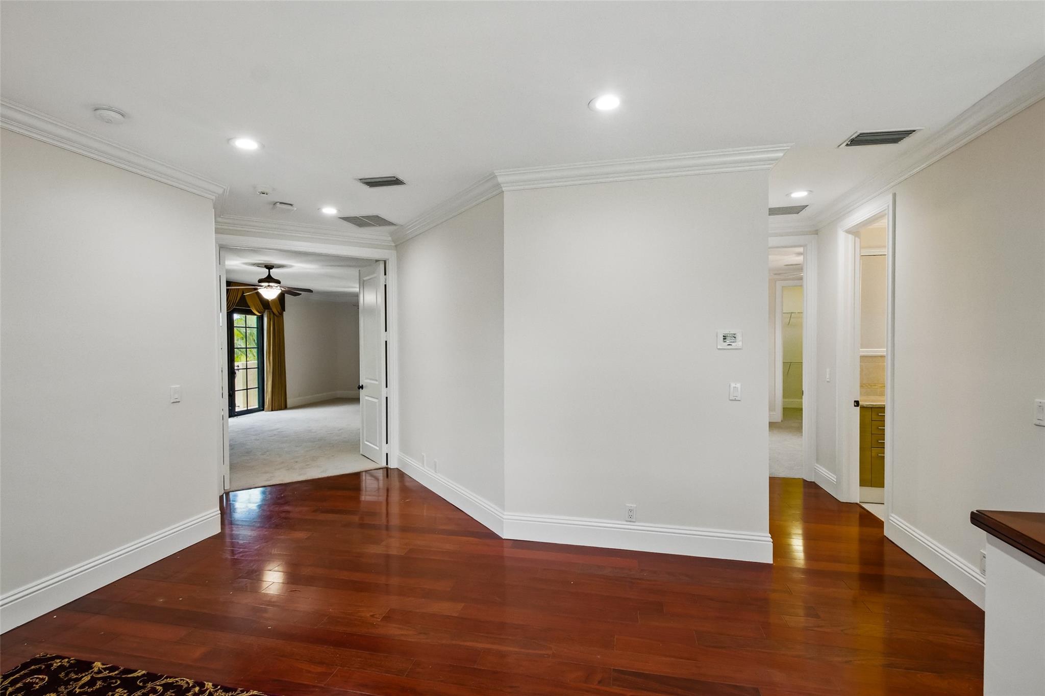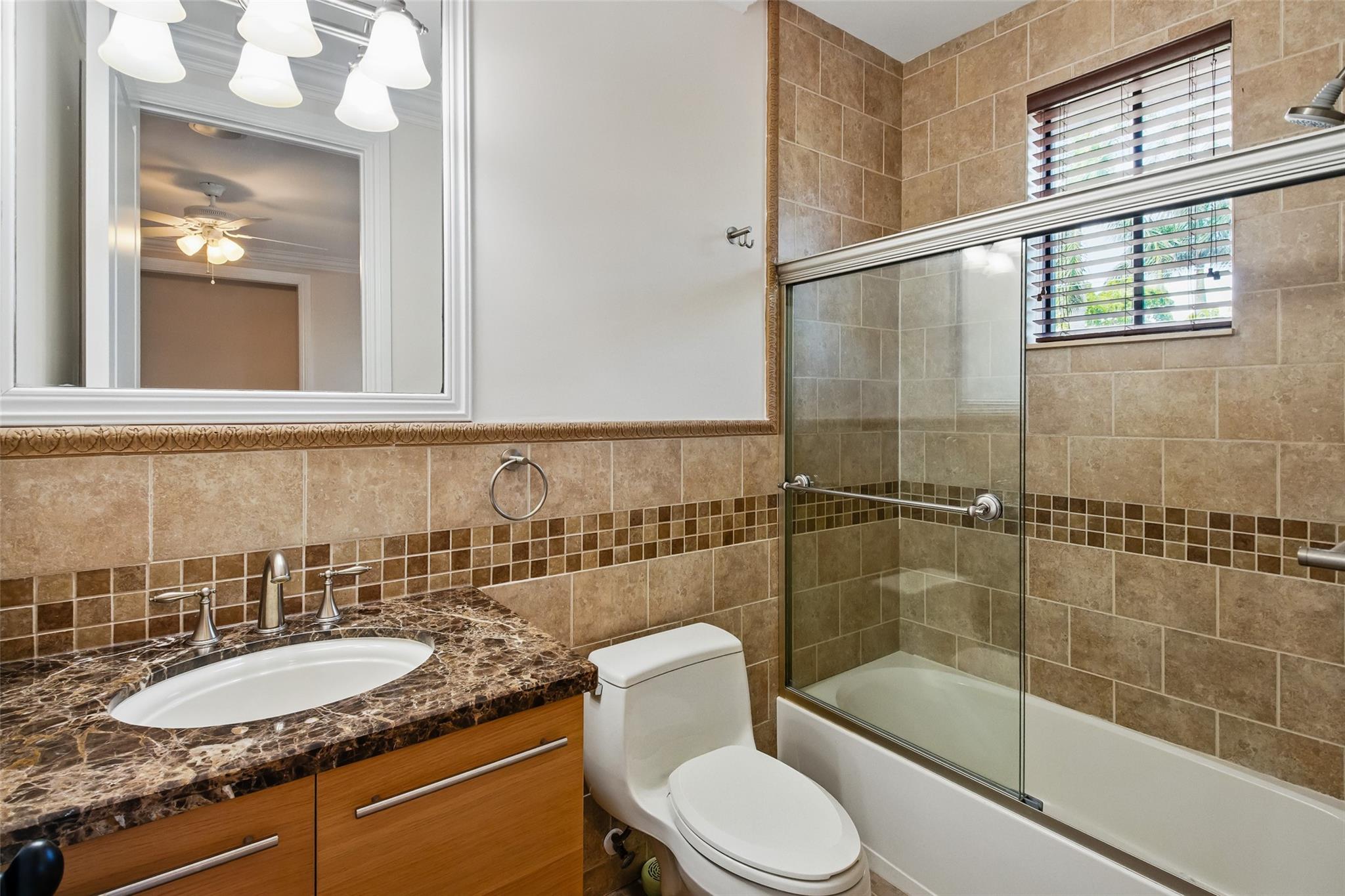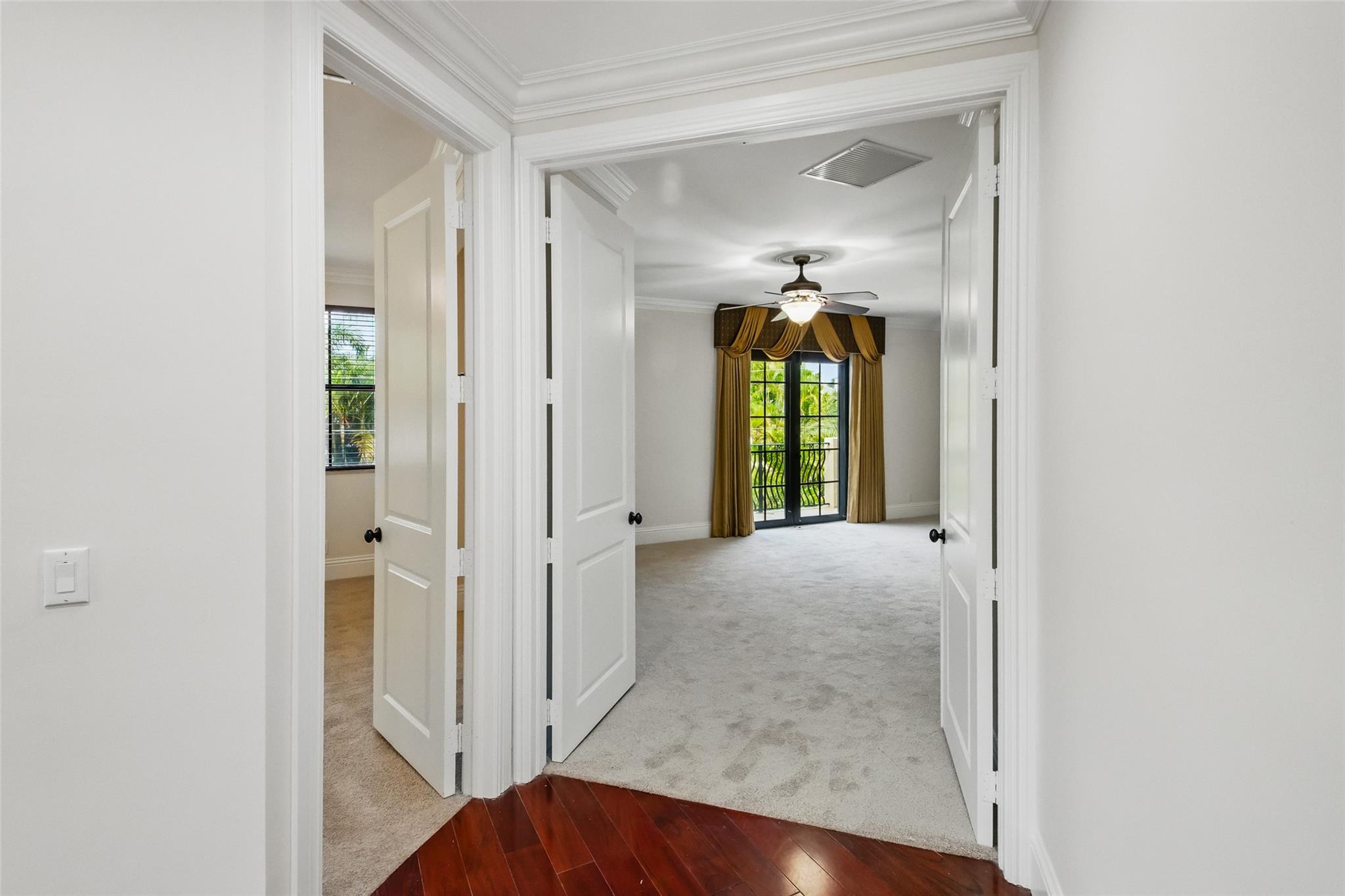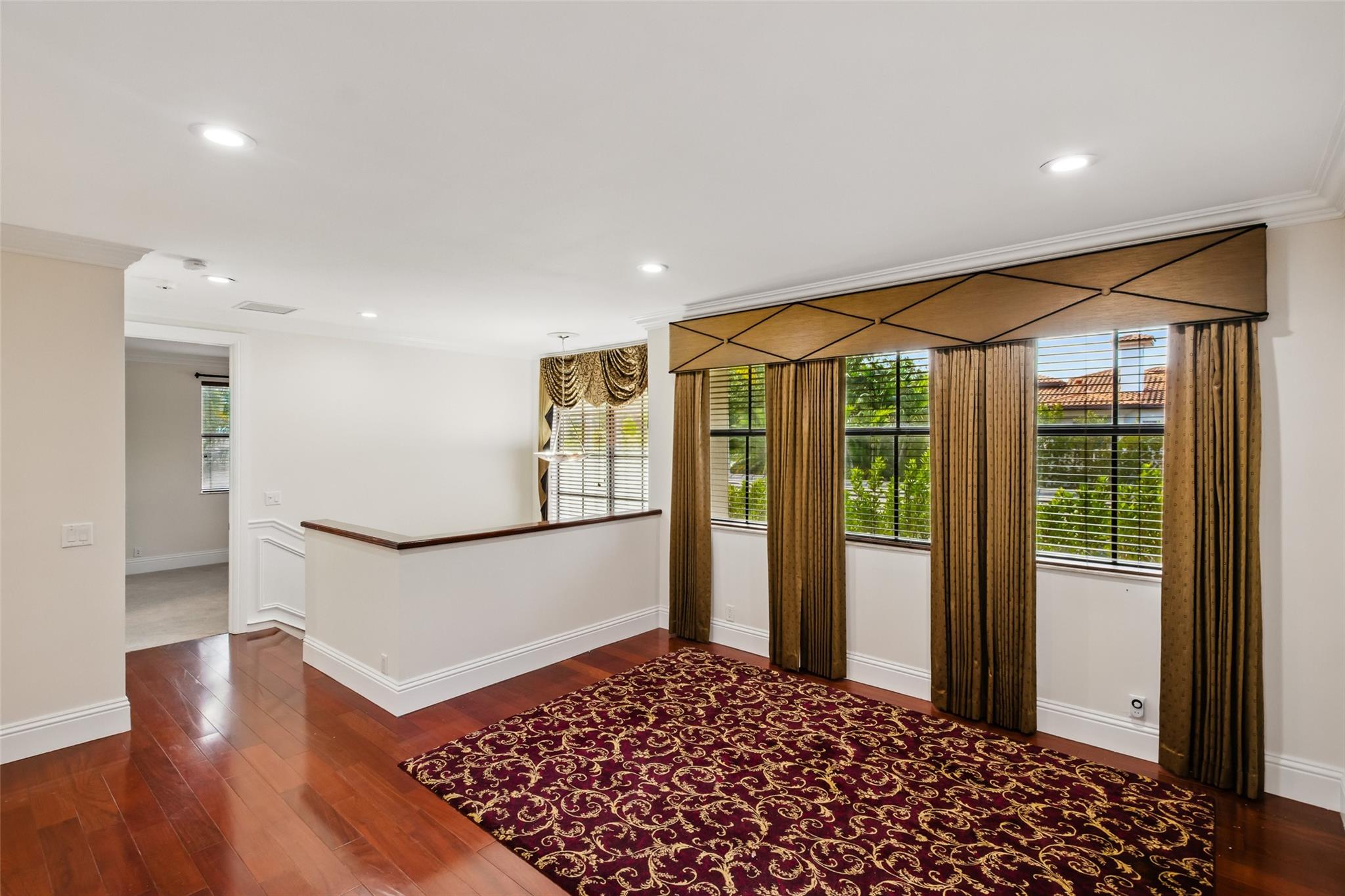 Spacious 5 bedroom townhome in the heart of Coral Ridge. Located on a quiet, tree-lined street and zoned for A-rated Bayview Elementary. The private backyard features a sparkling heated, salt water pool, ideal for relaxing & entertaining while offering the feel of a single-family home. 1st floor highlights include an open kitchen with black granite counters, gas range & double oven. Tumbled marble floors in living area, family room with breakfast nook, formal living & dining spaces & bedroom and/or home office. Upstairs a large primary suite with 2 WIC & balcony overlooking the backyard. Bonus room & 3 additional spacious bedrooms. Hurricane impact windows/doors, 2 zone AC (2022 & 2025), buried propane tank & ADT security system. Gas hookup already in backyard for future outdoor kitchen.