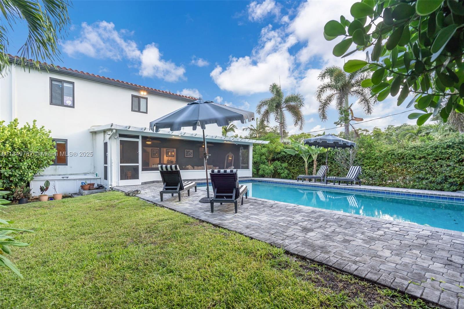 Timeless elegance meets modern luxury in this beautifully updated 3 bedroom, 2 bath Art Deco residence on an oversized lot in the heart of Miami Shores. This stunning two-story home has been thoughtfully restored, featuring rich hardwood floors, iconic Deco architecture, and stylish modern upgrades. Enjoy a bright, open layout with renovated kitchen and bathrooms. Step outside to your private tropical paradise with a resort-style pool, fenced yard, and lush landscaping. The property includes mature fruit trees like mango, banana, avocado, Surinam cherry, and more—plus an herb garden. Located minutes from Biscayne Bay, the Miami Shores Country Club, and top-rated schools, this turnkey home blends historic charm with modern comfort.