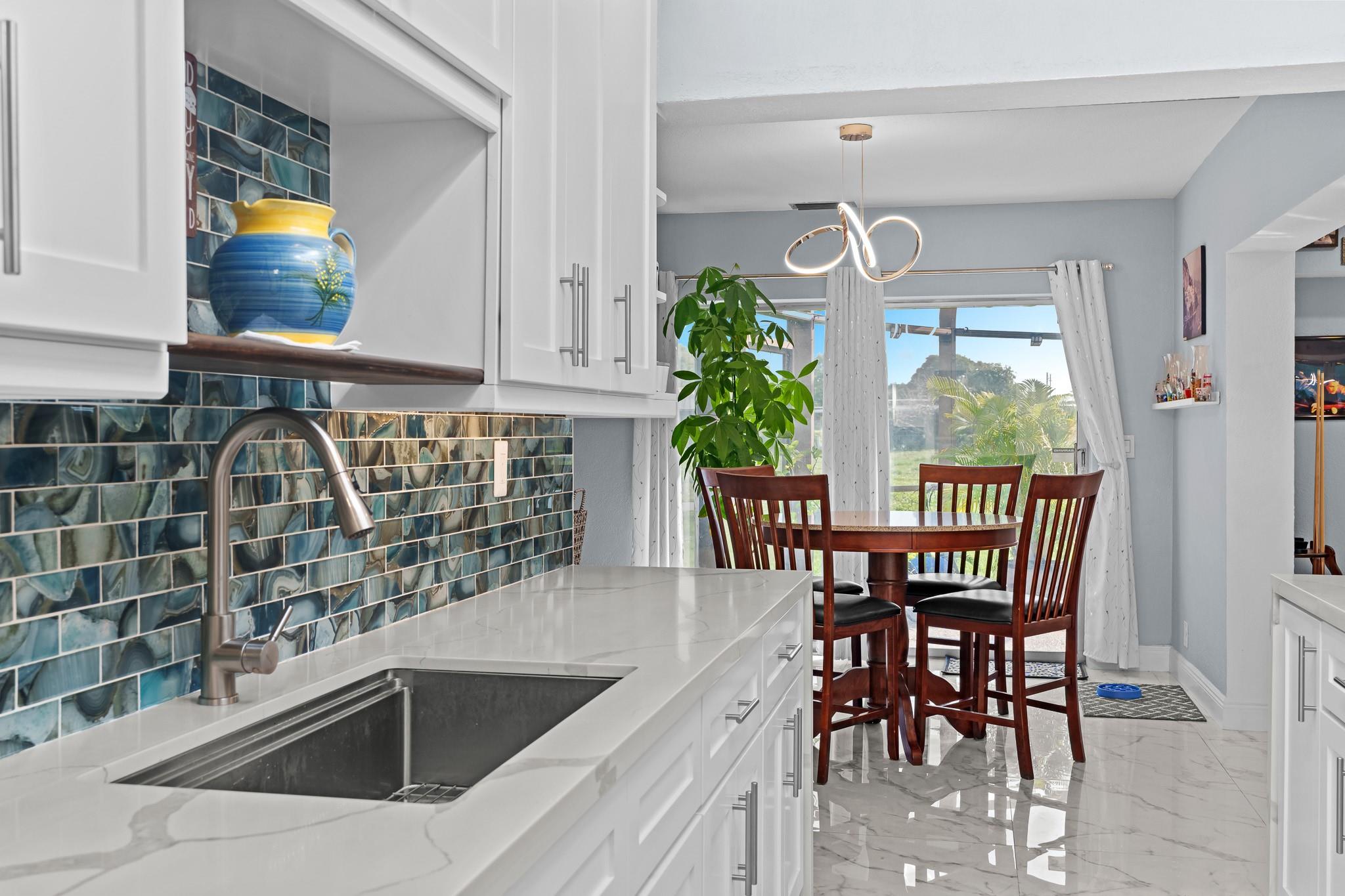 Welcome to your dream home in the prestigious WOODLANDS COMMUNITY! This remodeled 3/2 residence offers over 2,400 sq ft of luxurious living space on a spacious 0.28-acre lot. From the moment you arrive, you'll be captivated by the modern finishes, split floor plan, and rare 4-car garage—perfect for car enthusiasts or extra storage. Step inside to discover gleaming 24x24 MARBLE TILE FLOORS, WHITE SHAKER CABINETRY, and QUARTZ COUNTERTOPS throughout. The CHEF'S KITCHEN features stainless steel appliances and a breakfast nook. The expansive great room flows seamlessly into a game room and formal dining area, creating a versatile space for gatherings. Enjoy peace of mind with a 2019 ROOF, updated electric, Wi-Fi smart home setup and 2 zone a/c. The screened lanai offers a tranquil retreat.