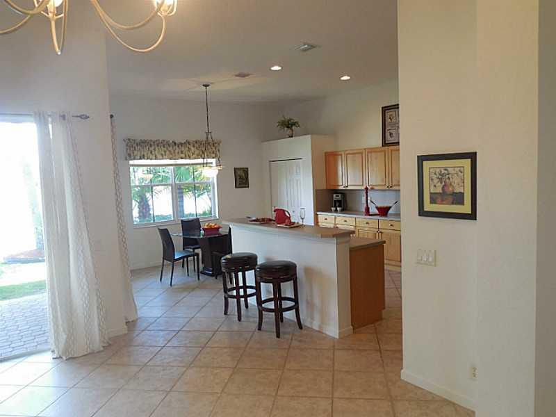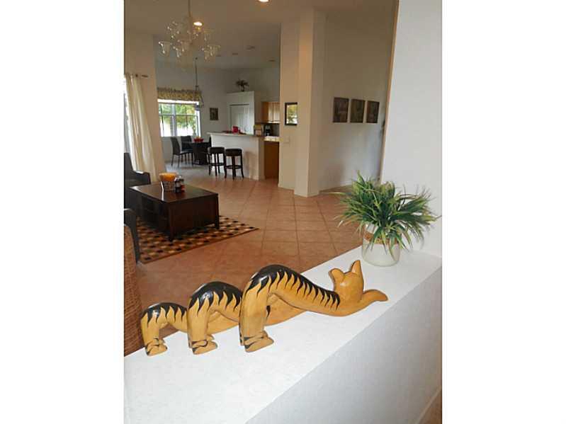 Enjoy tranquil lake views from this waterfront home in Hunter's Pointe II neighborhood located within the exclusive Weston Hills Country Club golf course community. Large, open floor plan with expansive ceilings. Entertainer's kitchen. Designer floor t ile throughout living areas. Extended paver patio with large backyard and room for pool. Great Weston schools! Walking distance to neighborhood park. Move in ready. Room dimensions are approximate.