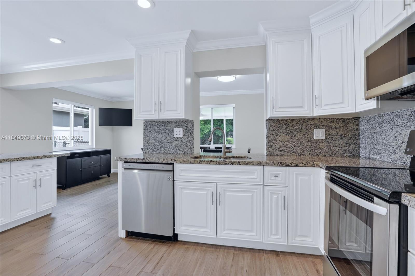 Located at the end of a quiet no-through street, this corner-lot home offers privacy, water views and peace of mind with all major updates complete! Features include impact windows & doors, newer roof (2018), AC (2019), water heater (2018), updated electrical panel and a fully renovated interior. Enjoy a bright layout with a modern kitchen, granite counters, SS appliances and wood-look tile floors throughout. Both bathrooms are beautifully updated and the screened patio overlooks tranquil water views. Perfect for families, this neighborhood has no HOA & is a short walk to top-rated schools and parks and just minutes to beaches. This home is turn-key ready!