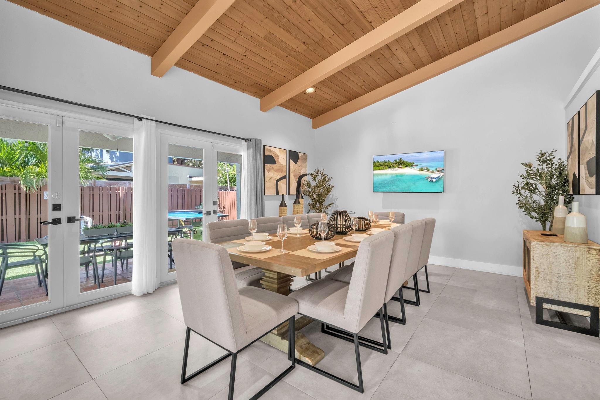 Spacious and renovated 9 bedroom, 5 bathroom home in the prestigious Lakes of Emerald Hills. Offering the HOA benefits without paying the HOA fees. Designed with both comfort and functionality in mind, the home features an exceptional layout with spacious living areas, soaring vaulted ceilings, and striking exposed beams that elevate the space with architectural charm. Perfect for multi generational living or hosting on a grand scale, every room offers flexibility and flow. Ideally situated near houses of worship, parks and more this is a rare opportunity to own a turn key residence in one of Hollywood's most sought after neighborhood.