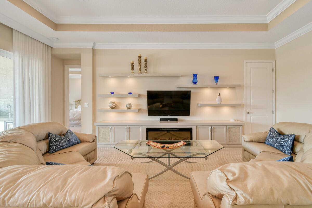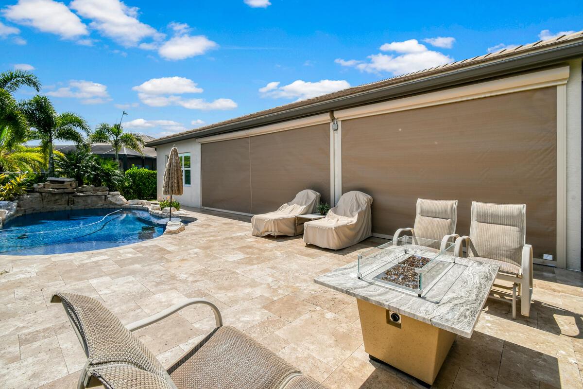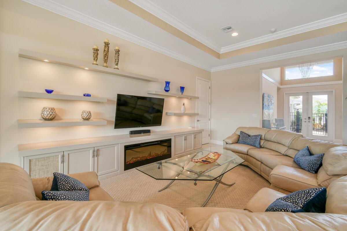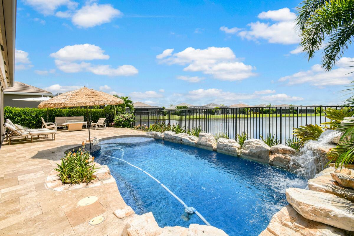 Riverland's ONLY long lake southern view pool home in the Vintage and Crown collections for sale delivering breathtaking sunrise-to-sunset vistas and sits on a premium pie-shaped lot with extra yard space on both sides with lush exquisite landscaping. This home has countless upgrades Your private backyard retreat features a heated and chilled saltwater pool and spa with a natural boulder rock waterfall, in-water umbrella table with seating, sealed travertine decking, extended lanai, quartzite outdoor kitchen, built-in stainless grill, 2 electric outdoor retractable screens (1 hurricane-rated), and a cozy firepit. All surrounded by picture-perfect lake views. Inside is a chef's kitchen with level 5 cabinetry, smart-home that controls for pool, screens, and window