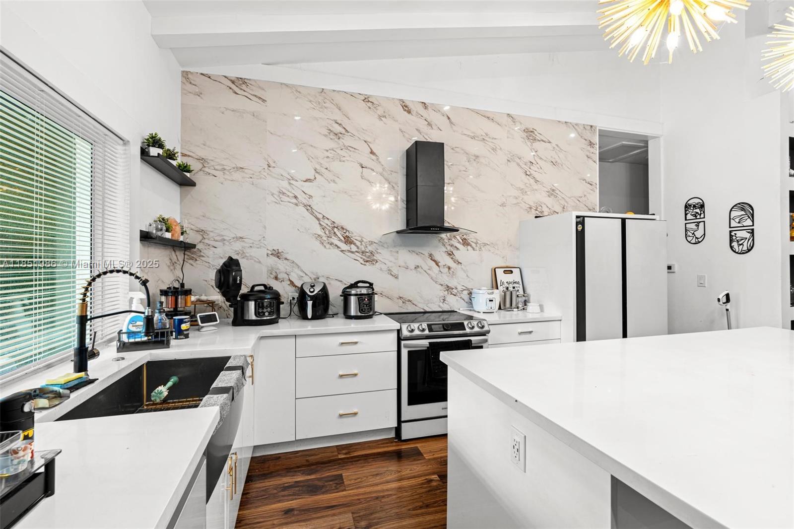 This 5/4 home offers 2,800 sq. ft. of living space on a spacious 14,000+ sq. ft. lot. Featuring vaulted ceilings, open-concept layout.The sleek kitchen offers quartz countertops, a large island, and custom cabinetry. The primary suite includes a spa-style bath with soaking tub. Enjoy a dedicated laundry area and an additional office space. Fully remodeled, full roof replacement, newer A/C, with enough solar panels to cover the majority of your FPL bill. Enjoy NO HOA - large lot that is fully fenced with a covered terrace and plenty for RV, or boat or future builds. Above ground pool is included in the sale. RV can be negotiated with the sale.Move in ready! Seller willing to assist with closing costs. Seller can convert home back to 5 bed 4 bath layout before closing.