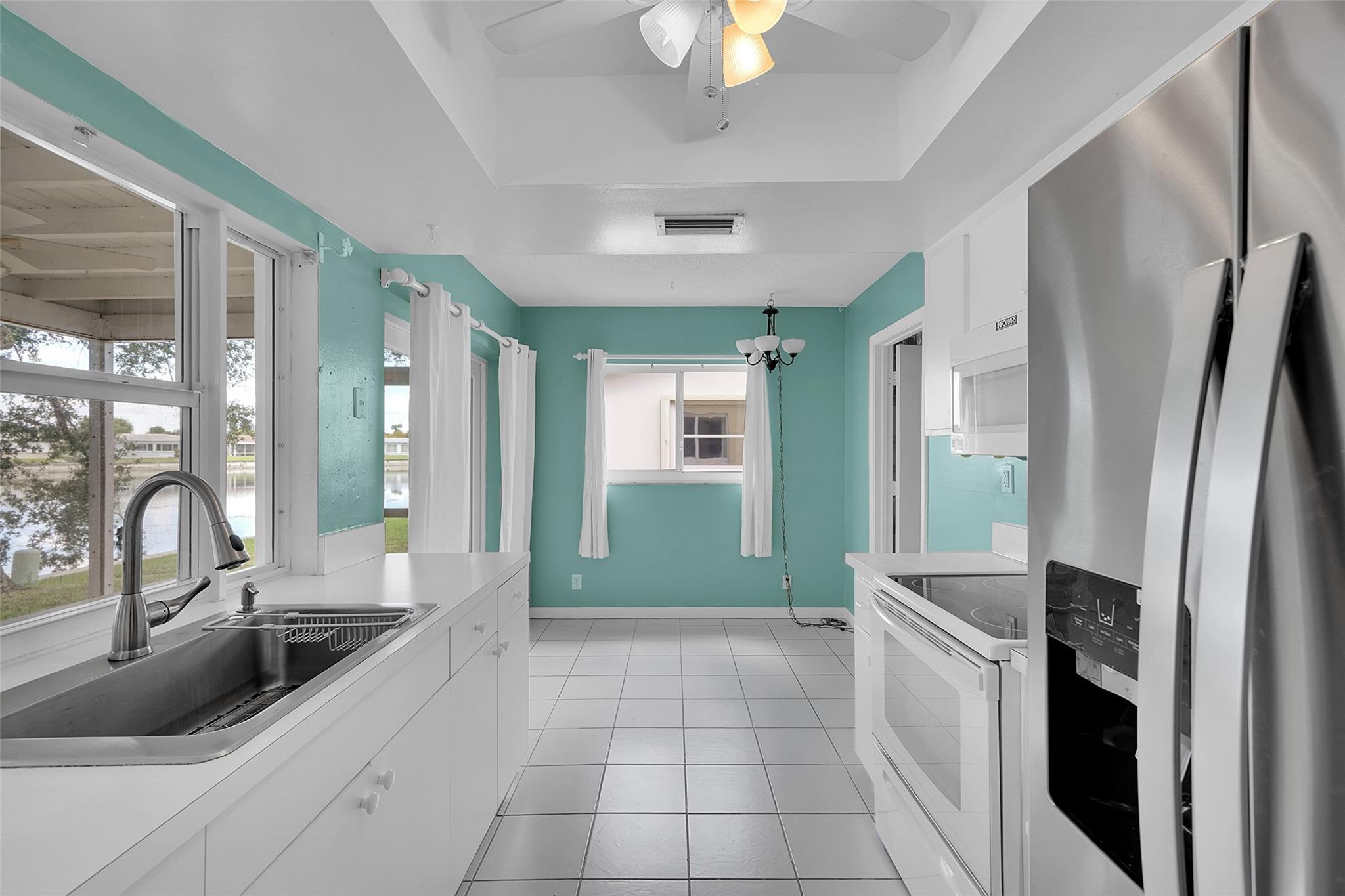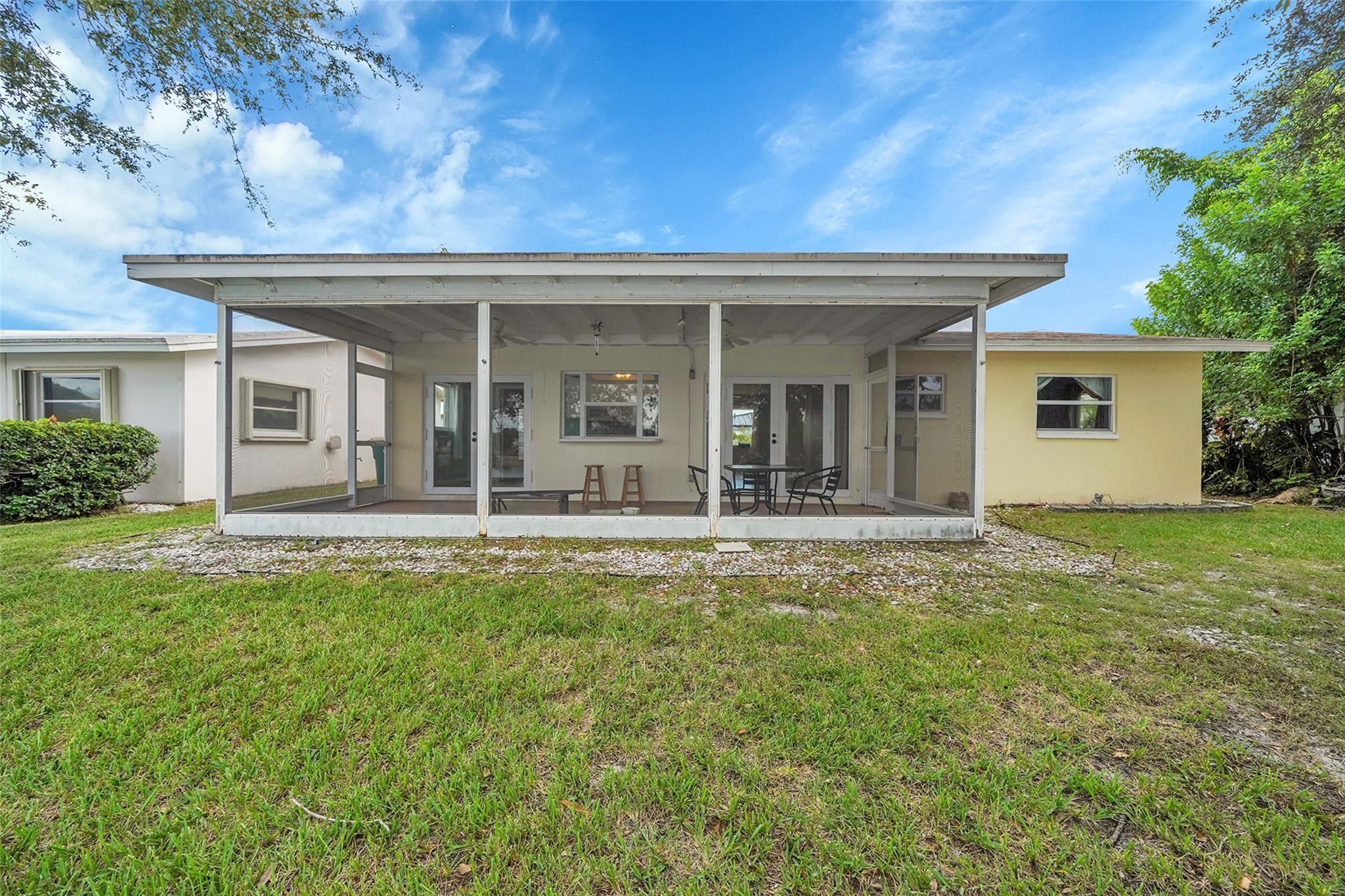 Welcome to Mainlands! This turn-key home features 2 spacious bedrooms and 2 full bathrooms. You’ll love the open-concept layout with kitchen that looks out to the lake, separate dining room for entertaining, and a separate laundry room for added convenience. Enjoy sunsets on your covered patio overlooking the large lake. Additional highlights include: Impact windows and doors, 2016 shingle roof, 2011 A/C unit and so much more! This home is in a great location in the community, close to shopping, restaurants and highways. Seller is motivated.