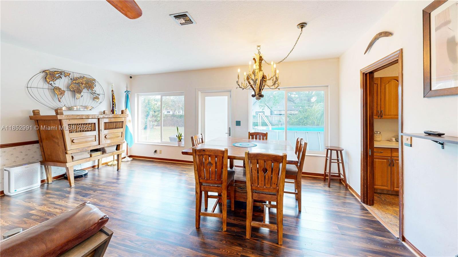 Beautiful single-family home with 3 bedrooms and 2 full bathrooms, situated on a huge 16,200 sqft corner lot. The spacious floor plan seamlessly connects the living and dining areas. The kitchen has plenty of counter space and ample built-in cabinetry for storage. Enjoy peace of mind with a newer roof and impact windows/doors for storm protection. Step outside to your private backyard oasis, featuring a patio, storage building, and fruit trees. The fenced corner lot offers ample space for RV and boat parking. Conveniently located near top schools, shopping centers, and the Redland agricultural area. Easy access to Krome Ave, downtown Homestead, and just minutes from the Florida Keys. NO HOA!!! Don’t miss the immersive 3D tour. May the Force be with you!