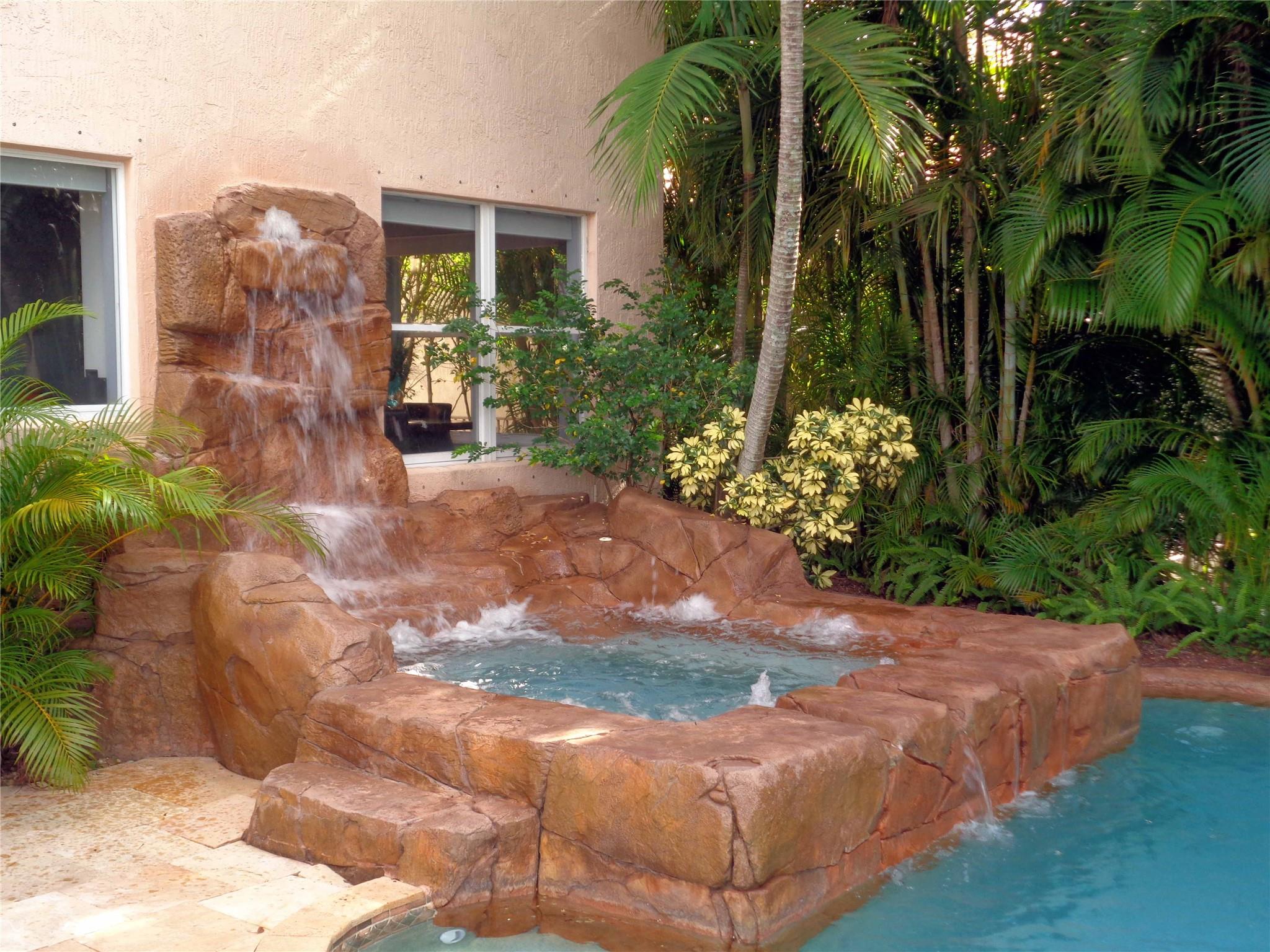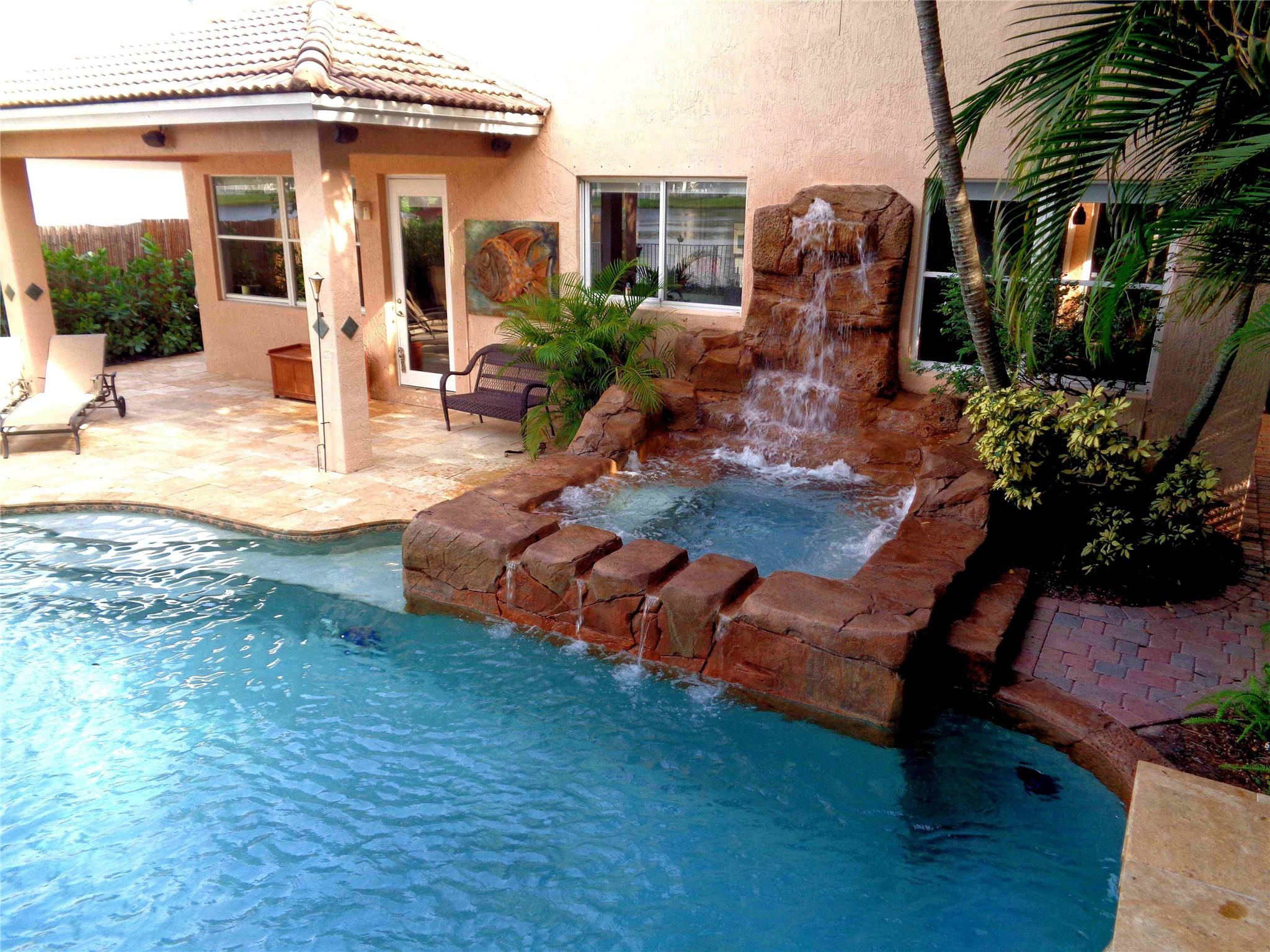 You’ll feel like you’re living in Jamaica or Costa Rica with your very private and secluded lagoon-style heated swimming pool with large jacuzzi hot tub, rock waterfalls, island, fountains, underwater bar seats, and more. The well-manicured yard has multiple areas to lounge under the many coconut palm trees, on a very quiet and peaceful lake. The house has 5-bedrooms, 3.5 bathrooms, and a 3-car garage, with a driveway for 3-additional vehicles. The HOA provides a secure gated-community with 24/7 guards, Comcast cable TV, Xfinity Wi-Fi internet, ADT alarm panel, lawn maintenance and nightly sprinklers. As well as, the multimillion-dollar clubhouse has a state-of-the-art fitness center, yoga studio, resort style swimming pool, tennis courts and playground, all for only $345/monthly.