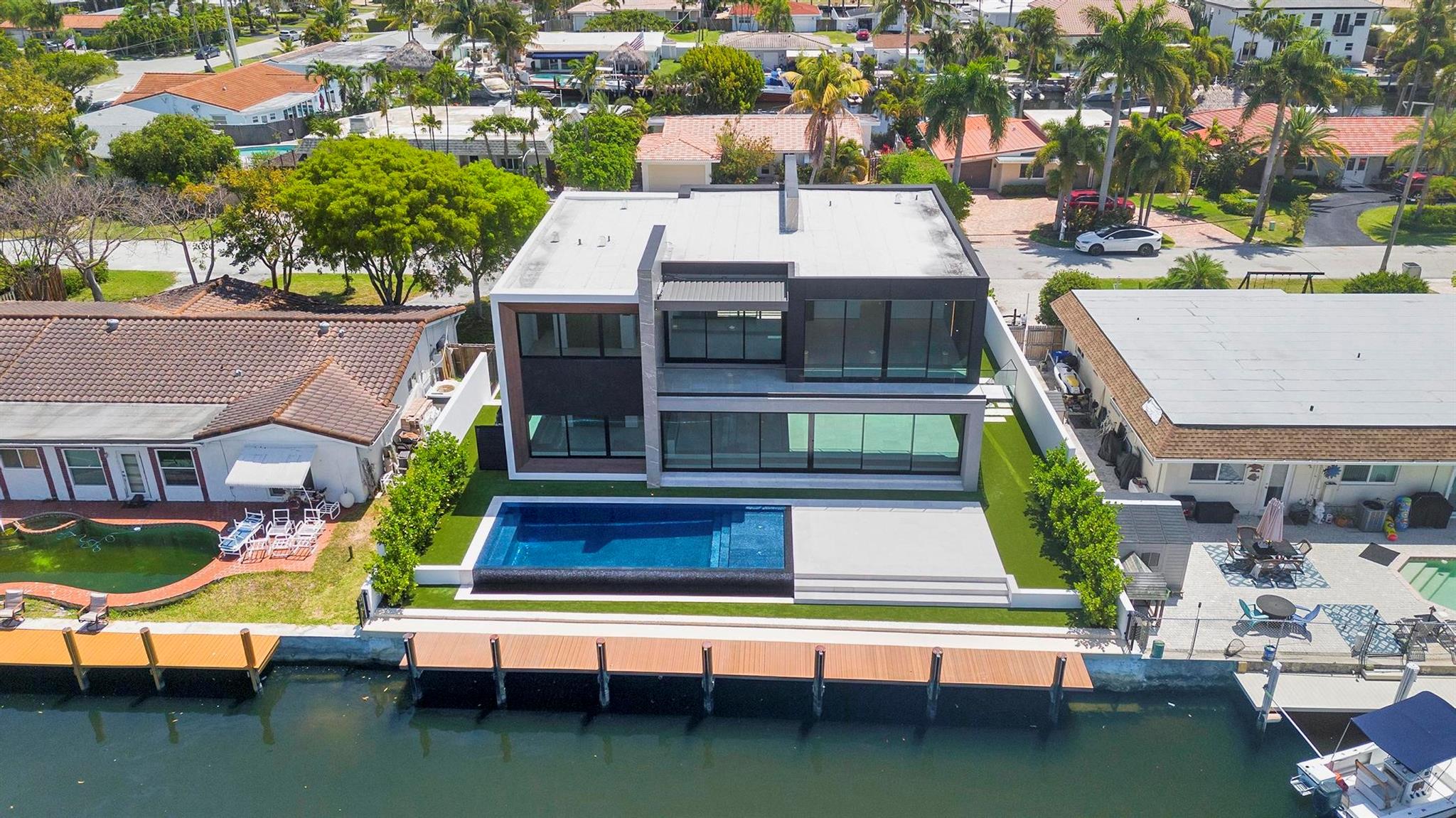 It was all a dream! Brand new construction with every bell and whistle you can dream of. Step through the pivot front door to a jaw dropping floating staircase, earthy tones, good energy, clean lines, this waterfront 5 bed, 5.5 bath is a true showstopper. The custom kitchen has Wolf & Jenn Air appliances, Taj Marble counters, wine and liquor cabinets! The kitchen opens to the living room with Italian oak paneled walls, a fireplace with expansive 33’ of floor to ceiling glass with a view of the pool and canal. The primary suite has custom closets and a bath like you have never seen before, floating cabinets, towel warmers and even an Apple TV in the mirror. Mosaic tile infinity pool, turf yard, glass panels the list goes on. The house is 100% smart with IPADS in each room.