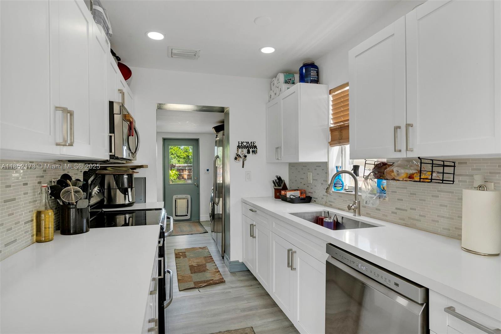 Come see this fully renovated home in the Collier Groves community of Fort Lauderdale. This home features 2 bedrooms, 1 bathroom plus a family room/laundry room. Completely and newly remodeled in 2022 with a modern kitchen offering lots of white cabinetry with quartz countertops and stainless steel appliances. Showcasing a new roof installed in 2022, AC is 2024, electrical panel updated in 2022, tankless water heater installed in 2022 and more. Outdoors, enjoy the convenience of parking in the front and also back yard parking with a private electronic gate. Massive backyard with plenty of room for a pool and outdoor entertainment. Conveniently located near major highways, shopping and dining options, just minutes from the airport and the beaches.