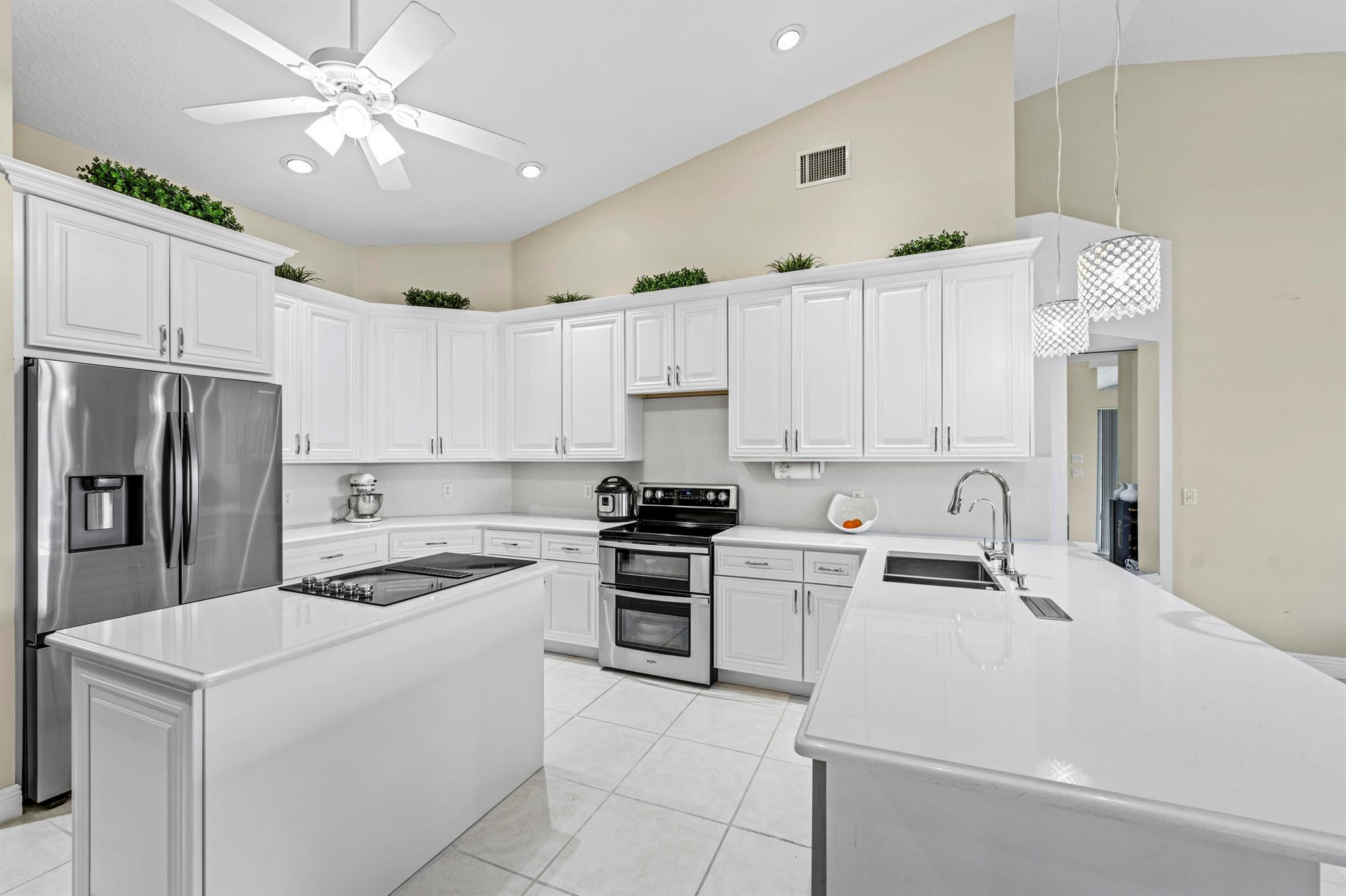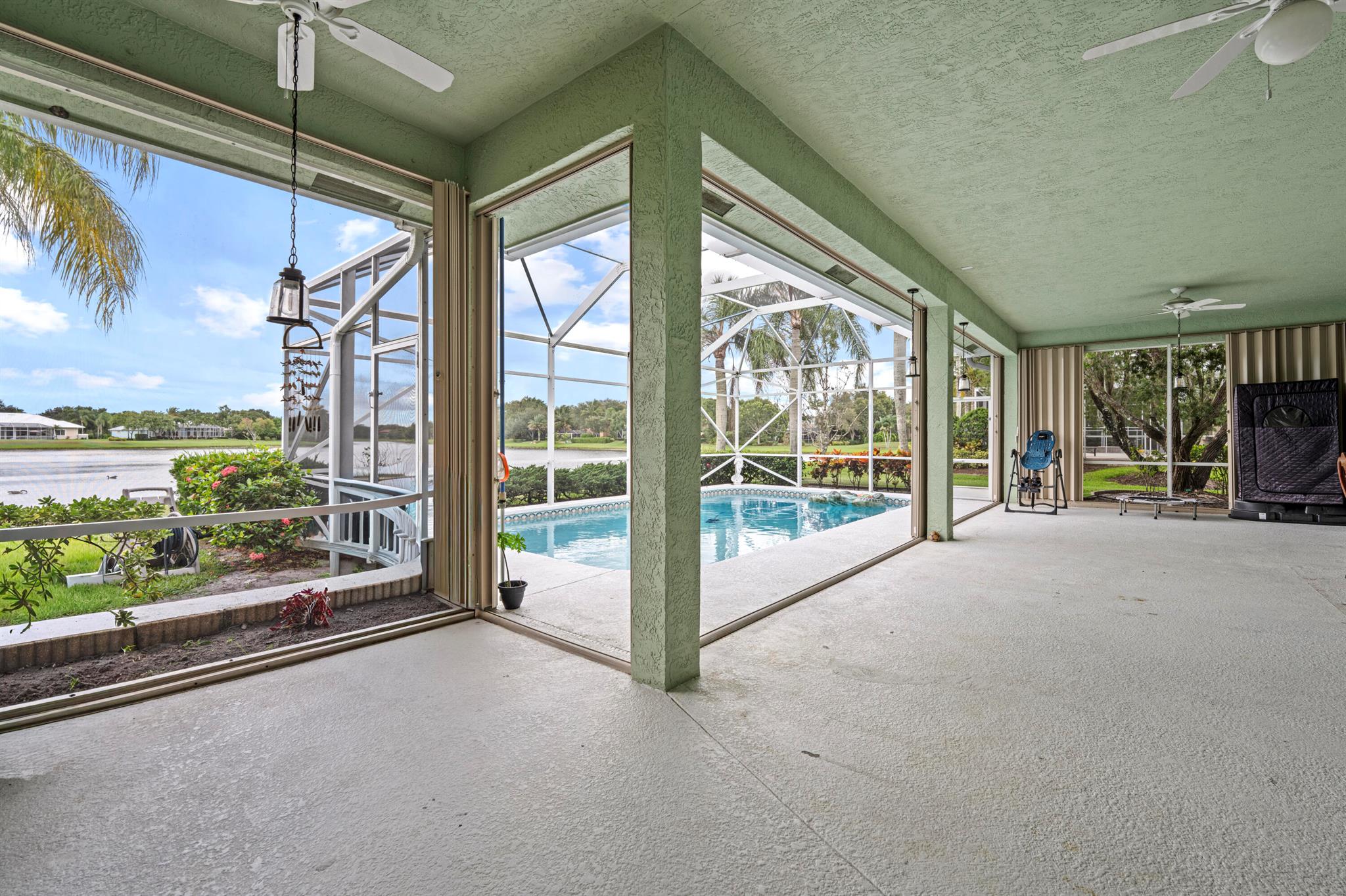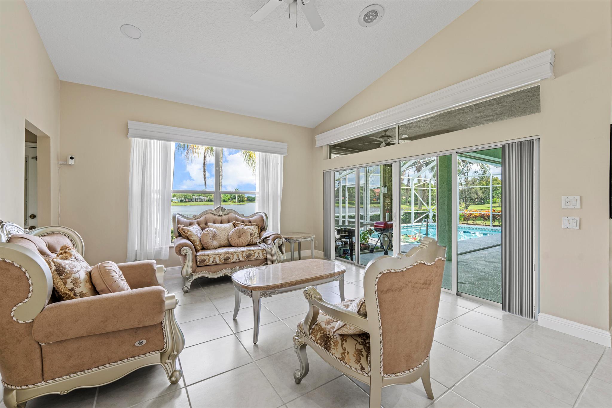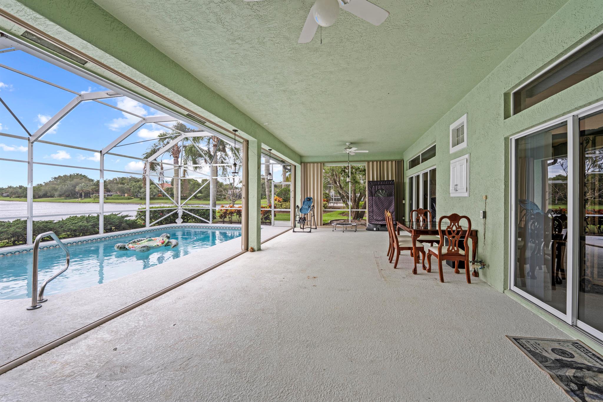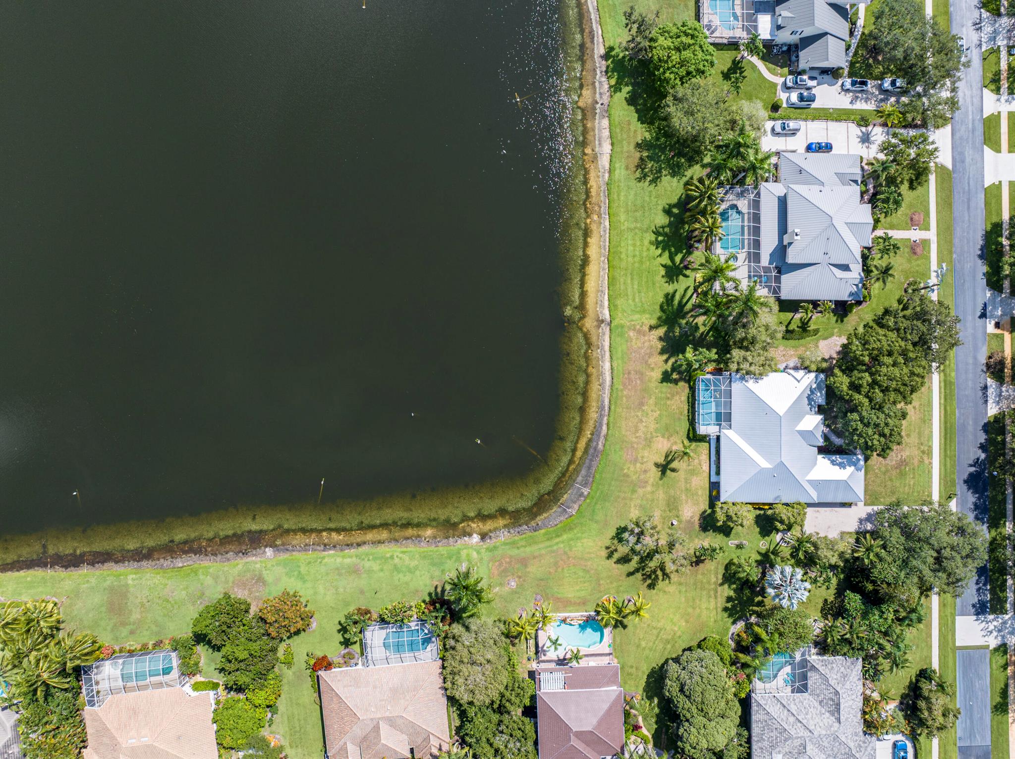 Beautiful lake front oasis situated on an half acre plus property. Glamorous 4 bedroom 3 bath pool home with a den/office. Lovely home with fabulous lake views. This single family home is in the exclusive gated community of Orchid Bay. The kitchen has new cabinets with quartz countertops. New tile floors in the living room, kitchen and dining areas. The bedrooms have been upgraded with quality laminate flooring. There is a large screened patio and pool area. The home is also equipped with a central vacuum system. The air conditioning units were installed this year. The water heater was installed in 2024. The meatal roof was installed in 2020. Multi colored lights surround the pool. New pool pump. High ceilings and many windows that provide substantial light.