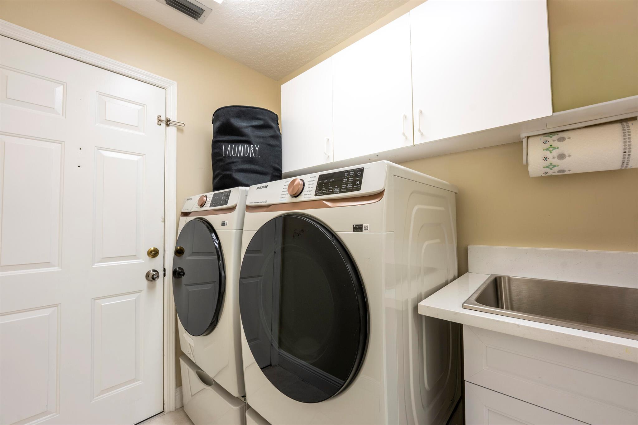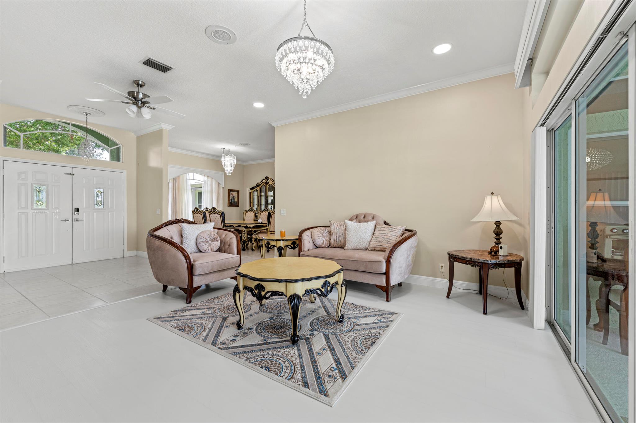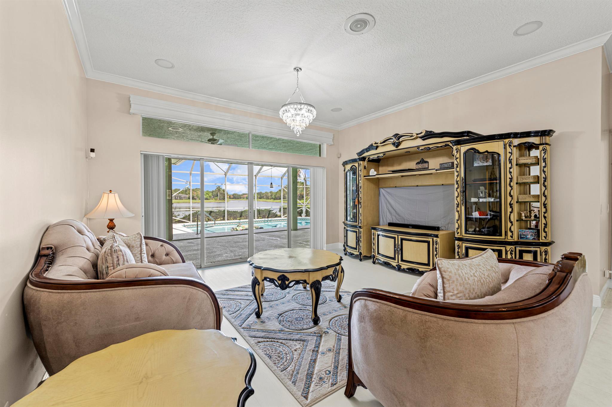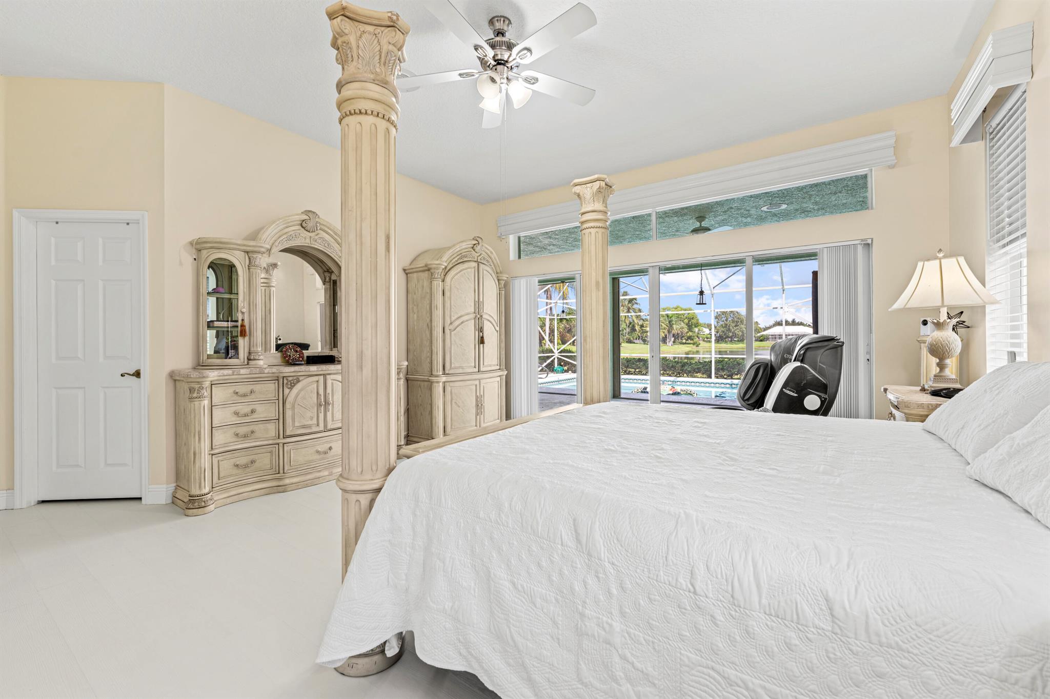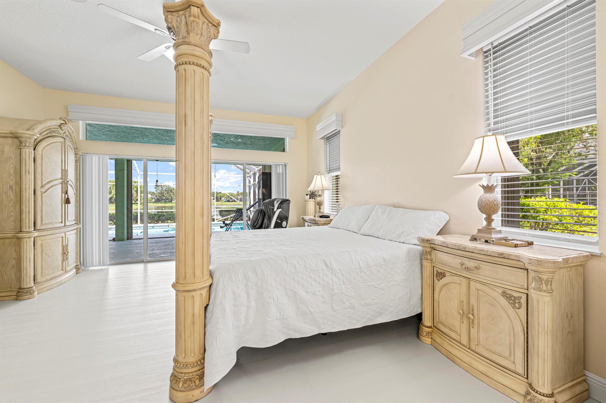 Beautiful lake front oasis situated on an half acre plus property. Glamorous 4 bedroom 3 bath pool home with a den/office. Lovely home with fabulous lake views. This single family home is in the exclusive gated community of Orchid Bay. The kitchen has new cabinets with quartz countertops. New tile floors in the living room, kitchen and dining areas. The bedrooms have been upgraded with quality laminate flooring. There is a large screened patio and pool area. The home is also equipped with a central vacuum system. The air conditioning units were installed this year. The water heater was installed in 2024. The meatal roof was installed in 2020. Multi colored lights surround the pool. New pool pump. High ceilings and many windows that provide substantial light.