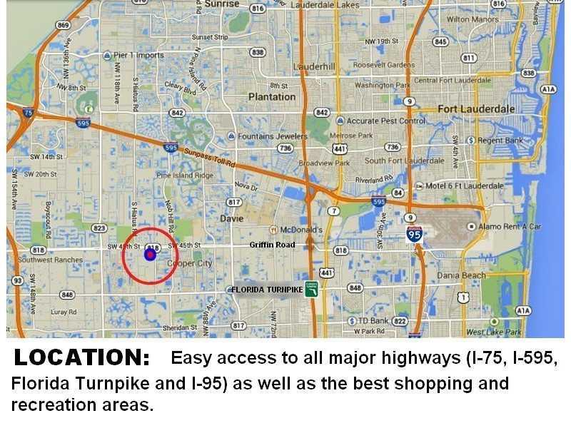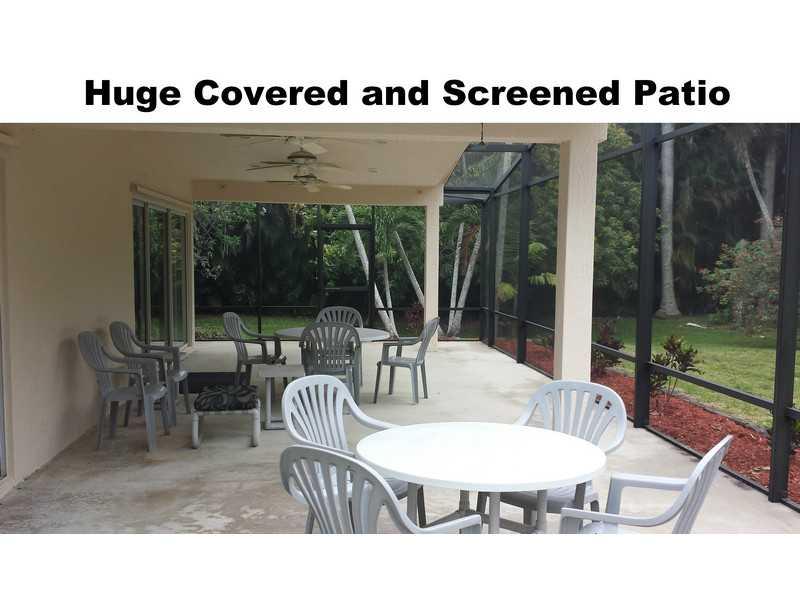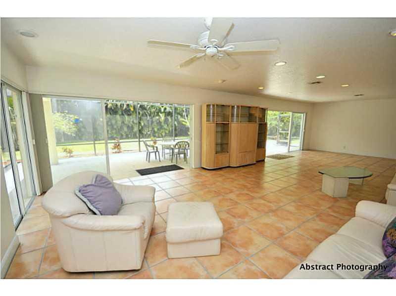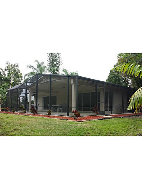 Enjoy the peace and quiet! Extensive landscaping with exotic trees to enhance your privacy. Featuring an expansive 38' long Great Room with 50' patio (covered and screened), panoramic views of the private yard, Dining room, newer kitchen, 3 bedrooms plus office or den. Fourth bedroom possible. Tile flooring, crown molding, 5-1/4" baseboard, newer windows, Hurricane Shutters. just painted, Located minutes from I-75 or I-595, Fully Fenced Lot is 200' x 218' (full acre), Horses Permitted Zoned A-1, No HOA!