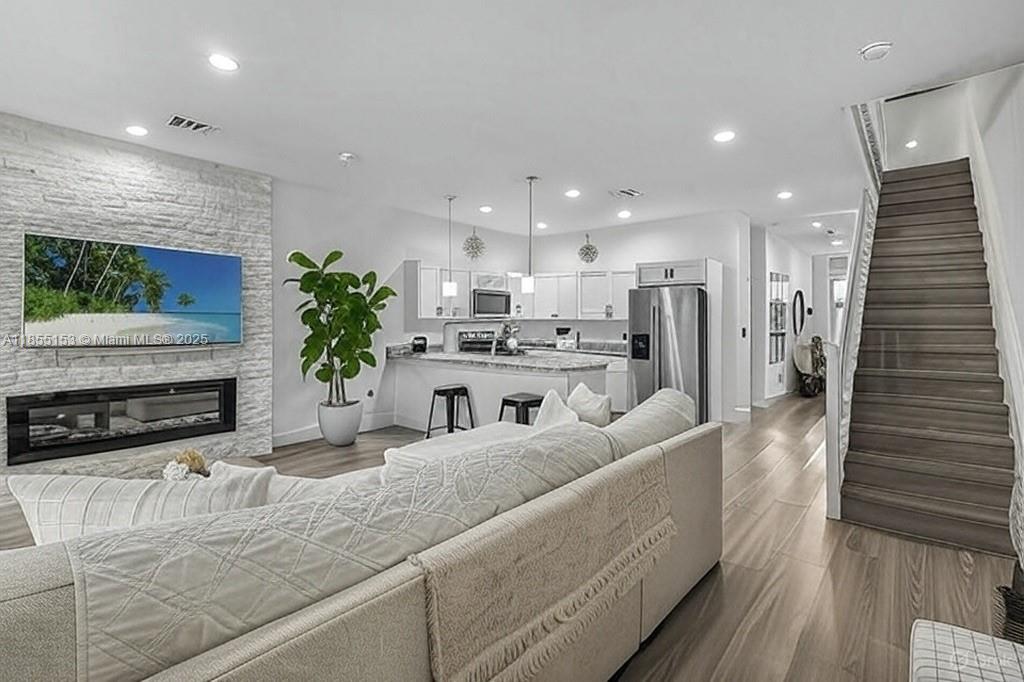 This beautifully maintained townhouse combines modern design with practical functionality and clean lines. Boasting 3 spacious bedrooms and 3 full bathrooms, it’s perfect for families or avid entertainers. The open layout effortlessly connects the living, dining, and kitchen spaces, enhanced by sleek countertops, abundant cabinetry, and stainless steel appliances. A chef's dream kitchen. Constructed in 2020, the home features energy-efficient upgrades for sustainable living. With 3 dedicated parking spaces, it offers ample convenience. Ideally situated near shopping and entertainment, this move-in-ready townhouse delivers comfort and accessibility—don’t miss this opportunity.