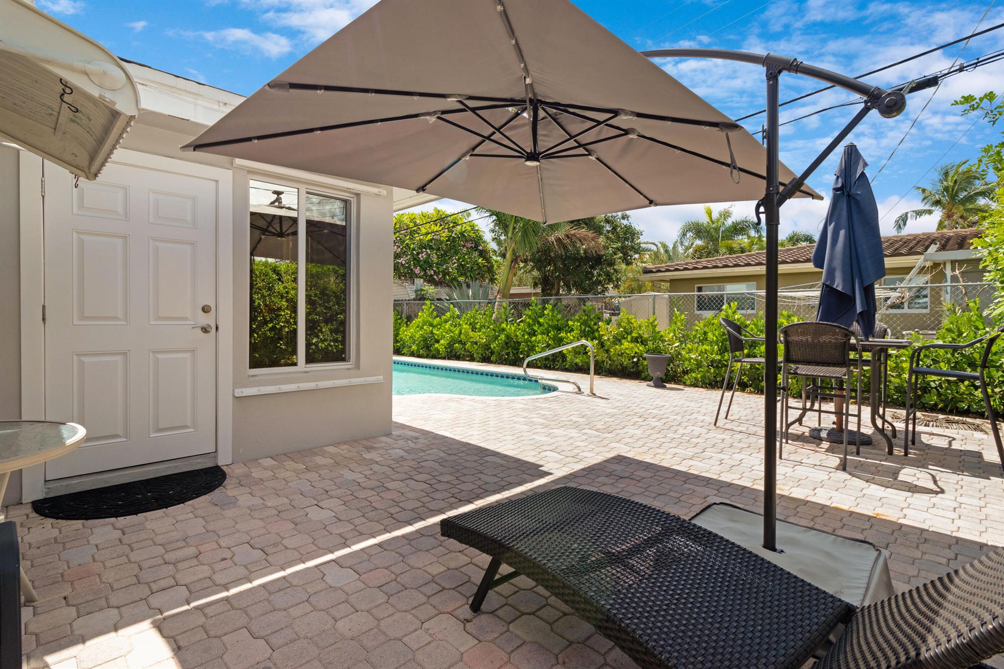 Live where others vacation in this primely located 2-bedroom, 2-bathroom home. EAST of Federal Highway and just half a mile from beautiful Pompano Beach! Inside, you'll find an airy open-concept floorplan that connects the living, dining, and kitchen--perfect for both entertaining and everyday living. The sun drenched Florida room offers peaceful views of the private pool, while a cozy fireplace adds unbeatable charm. Neutral tile flooring throughout, and elegant pendant lighting over the snack bar. The primary bedroom boasts custom closet built-ins and an en suite bath, while the second bedroom provides generous space and comfort. A sleek side-by-side washer and dryer are conveniently located in the garage. The lushly landscaped lot and circular driveway add practicality and...