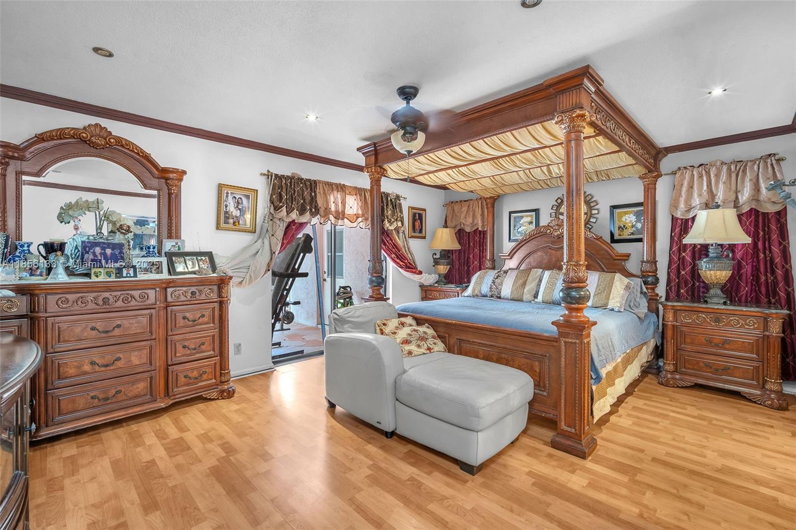 The largest waterfront & pool home in Fox Run at Jacaranda!! 5 large bedrooms & 3.5 bathrooms with 2,950 sqft under air, 2-car garage, beautiful pool & patio all situated on .32 of an acre with peaceful water views & privacy. Spacious floorplan with volume vaulted ceilings in living areas, kitchen w/granite countertops, wood cabinetry & S.S appliances. Private laundry room w/laundry tub. The primary bedroom & bathroom, guest bedroom & bathroom, and ½ bathroom are on 1st floor, the other 3 bedrooms & updated bathroom are upstairs. Enjoy your huge backyard w/fruit trees & beautiful large pool! A nice size lanai and convenient cabana bath awaits you for all your relaxation and entertaining days. Newer AC, water heater & tile roof is 10 years old. This home has so much more to offer. MUST SEE!