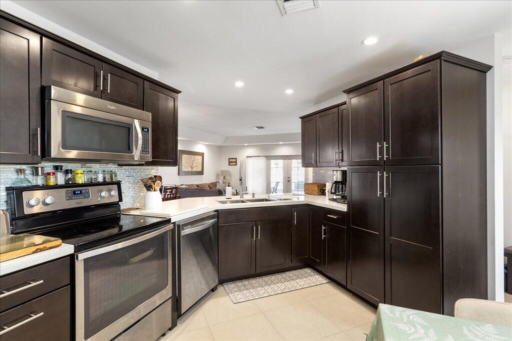 Turnkey single-family home featuring 3-bedrooms, 2-baths and 1-car garage now available in Boca Fontana. One story. Attention to detail. Tray ceilings with overhead lighting. Split bedroom floor plan. Tile and plank floors in all living areas. Stylish kitchen. White quartz counters, espresso cabinets, undermount sink, breakfast nook Renovated bathrooms. Built-in closets in all bedrooms. Covered patio, perfect for entertaining. Private fenced-in backyard. Full wind mitigation; 2024 metal roof, complete set of accordion shutters and storm door in garage. Storage shed included, wired for electricity. Widened 2-car driveway. Community pools, hot tub and clubhouses. Perfect for all ages; young families to retirees. Conveniently located to all central Boca offers. Call for showing!