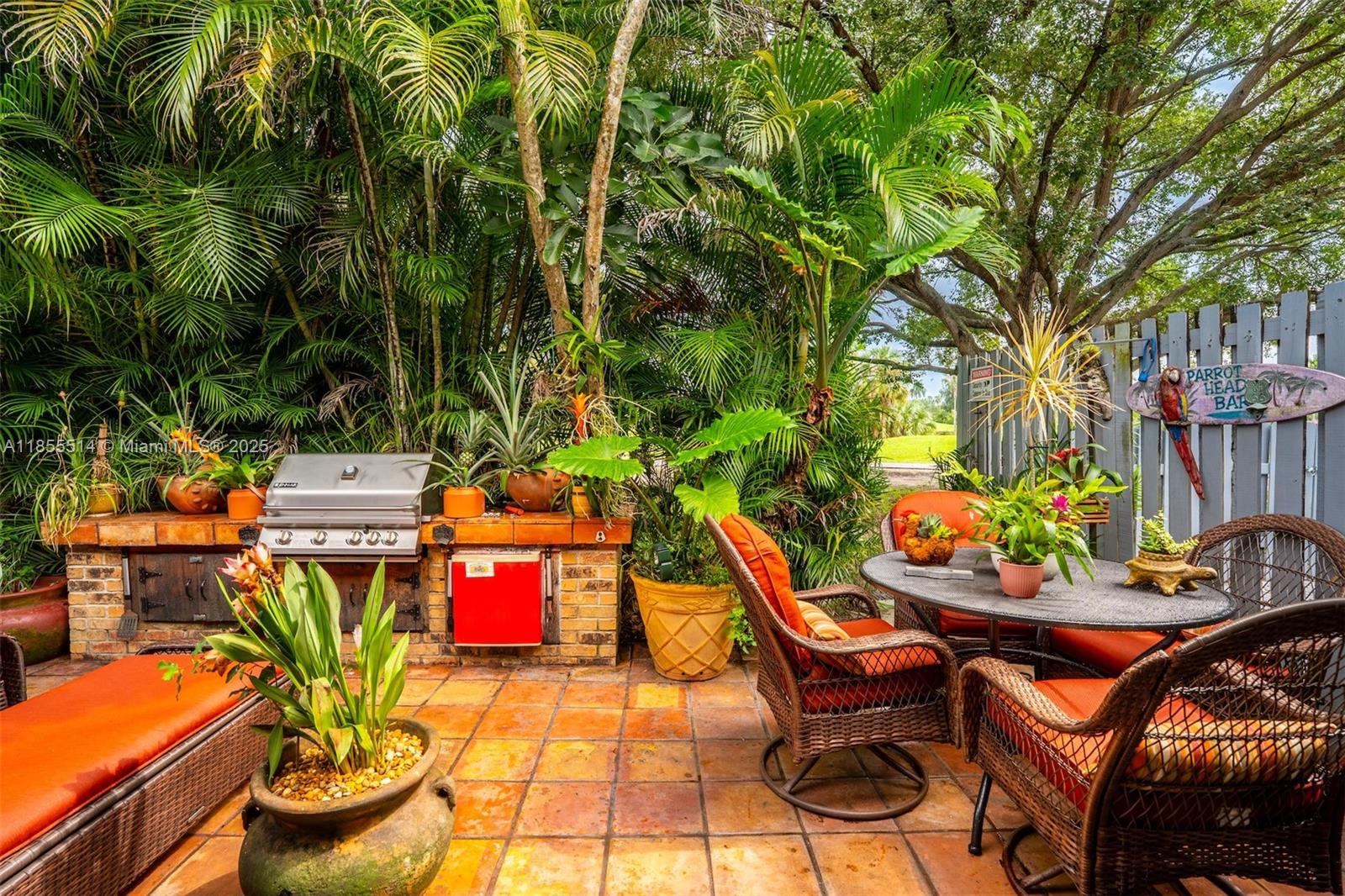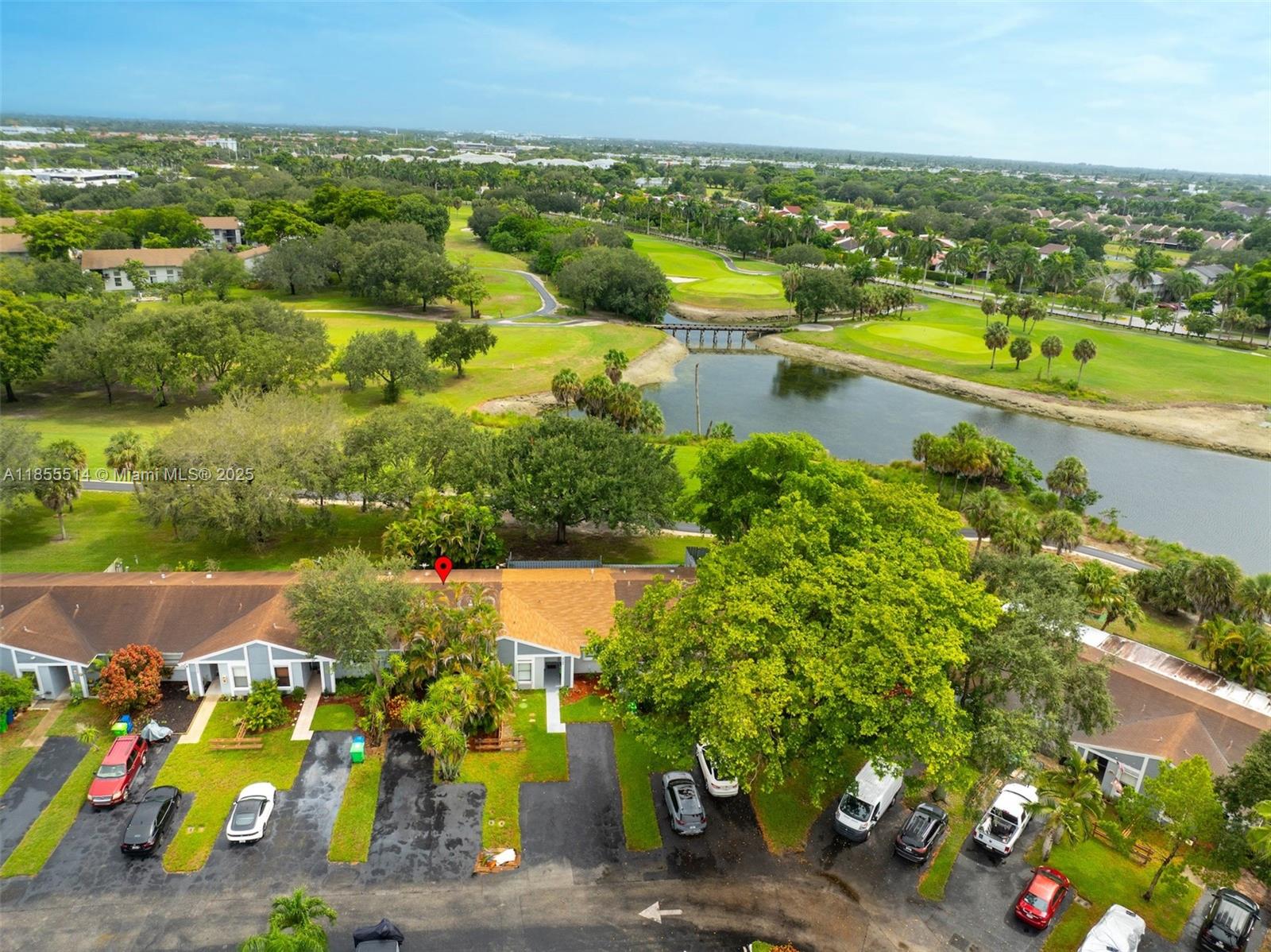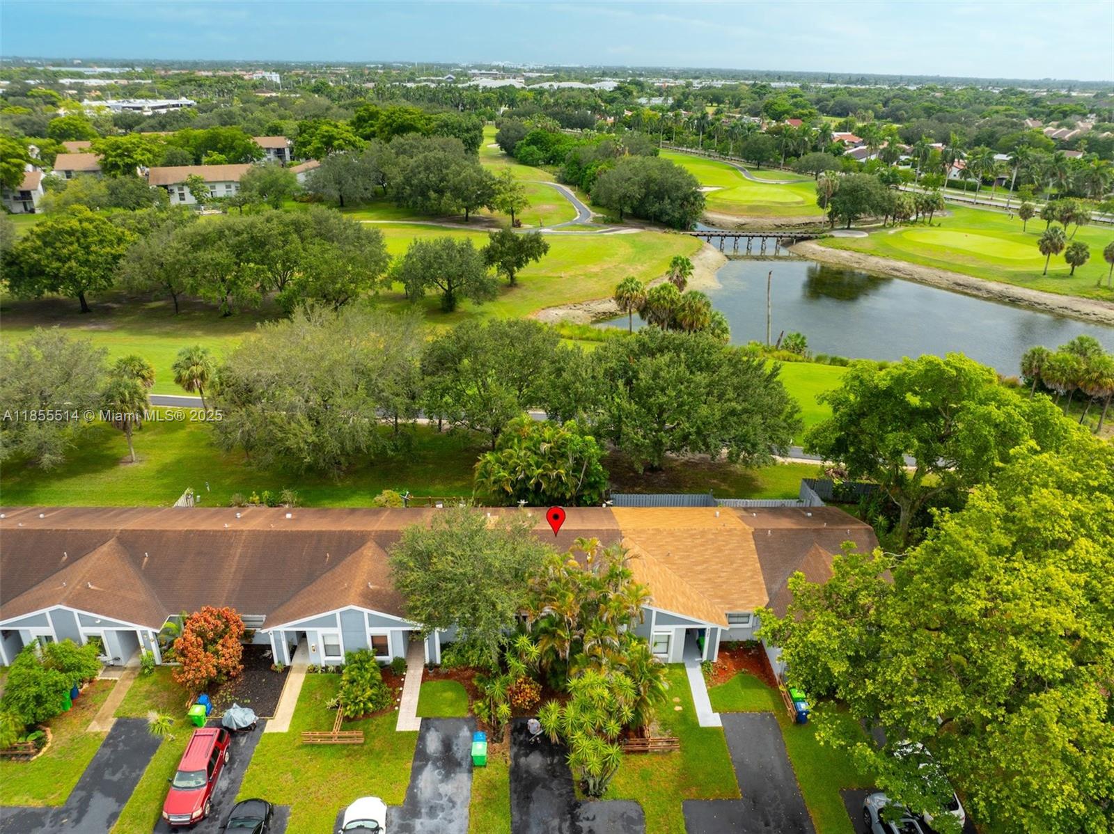 Welcome to Redbridge! Original owner/snowbird, lightly used just 3 months a year. This beautifully maintained 2BR/2BA single-story townhome sits on the golf course and features granite kitchen counters, updated baths, impact windows/shutters, wall-to-wall closets, and a new Samsung Hub fridge and 2025 hot water heater. Extras include a generator, fenced patio with built-in outdoor kitchen & Jenn-Air BBQ, new awning, and ample parking. Community pool, top-rated schools, and furniture included at list price. Investors welcome—lease 1st year! Seller offering full roof replacement credit of $7,833.65 to Buyer at closing.