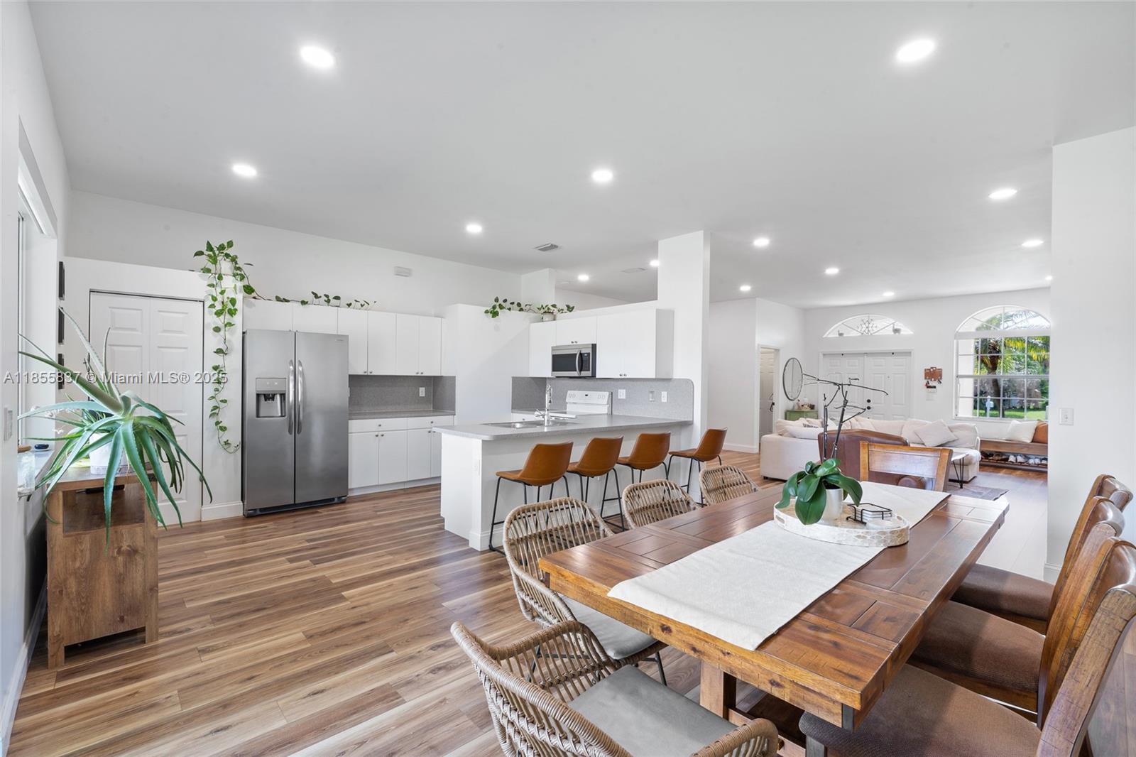 Modern updates meet timeless comfort in this 4 bedrooms, 3 bathrooms home in Homestead. With 2,118 sqft of living space on a nearly 6,000 sqft lot, this residence blends stylish upgrades with practical convenience. Property's highlights include fresh interiors with new floors and recessed lighting featuring Lutron dimming switches, Lutron automated blinds in the Master suite and living area for effortless ambiance, custom built-in bar for entertaining and a built-in master closet for organized storage, Water softener system added for easy, low-maintenance care, accordion shutters for storm protection, garage floor epoxy coating, new gutters, and a new tankless water heater. HOA amenities include DirectTV, 1 Gbps fiber internet, and 24-hour security.