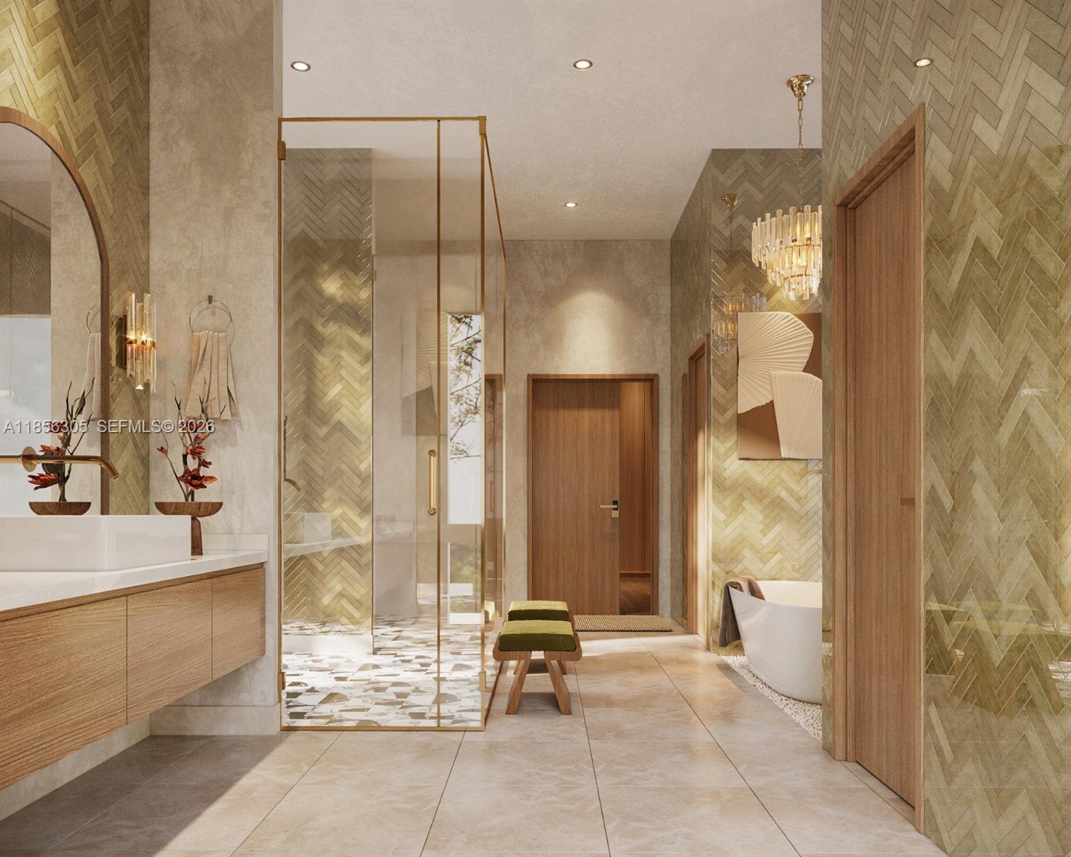One-of-a-Kind Architectural Masterpiece – Designed by famed Affinity Architects, this 6BR, 6BA, 3HB estate is situated on over 2 acres of land offering refined living with exceptional design. The flexible layout allows for 7+ bedrooms. This rare and unforgettable Bali inspired architecture blends natural materials, open layouts, and intricate craftsmanship, focusing on nature through walled compounds of separate pavilions for different functions, creating indoor-outdoor living with abundant ventilation and connection to gardens overlooking a pool, shaded lounge, and spa. Amenities include: a wellness room with sauna, private movie theatre, 2 family rooms, staff quarters, mud room, and 2 laundry rooms. A 4-car garage plus guest parking ensures ample space. Every detail reflects quality craftsmanship, timeless style, and a seamless connection between indoor and outdoor living.