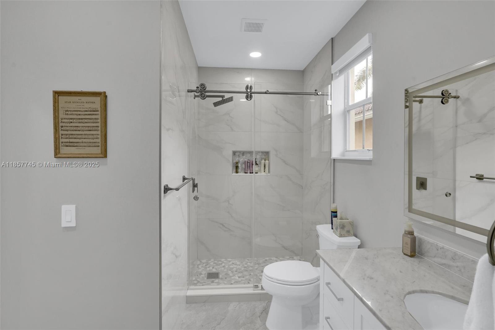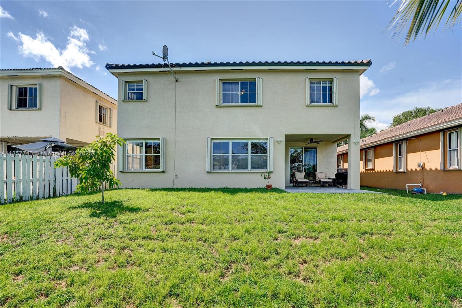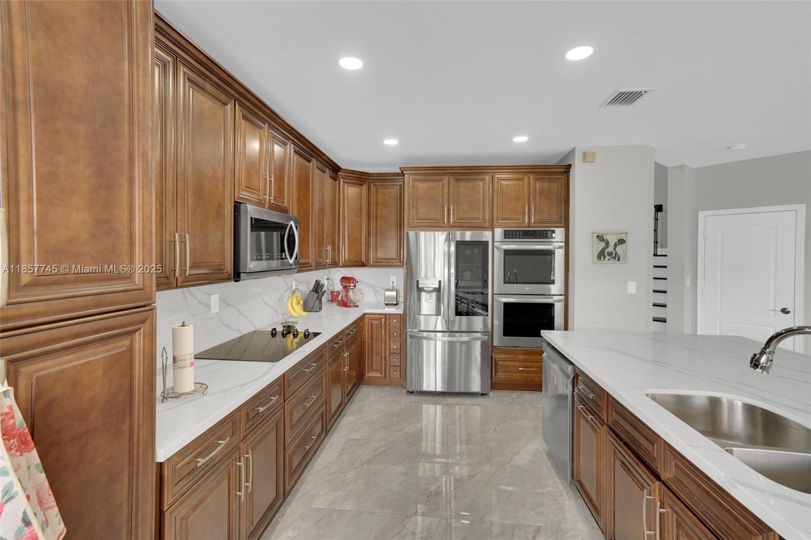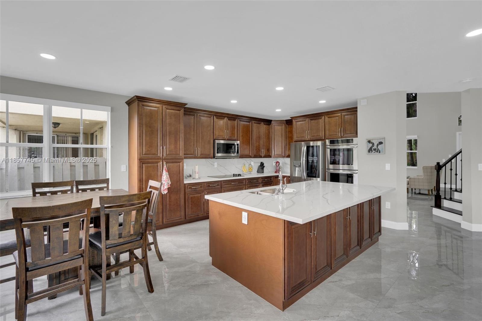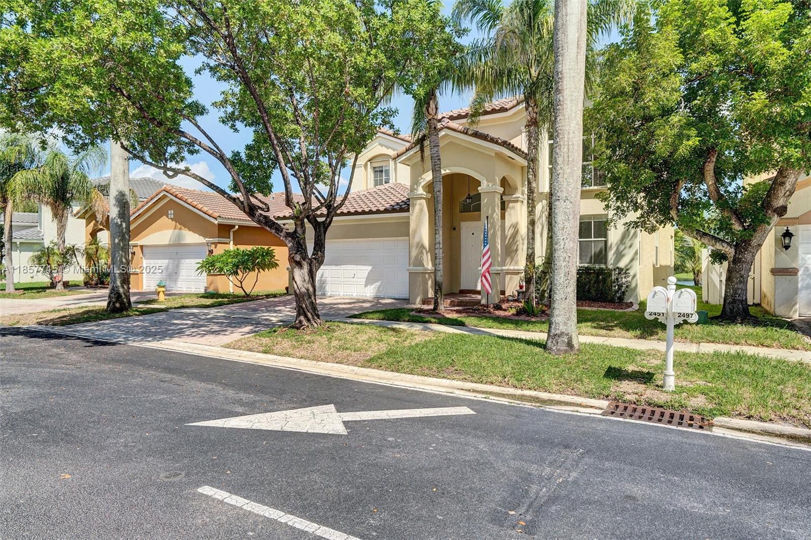 Magnificent lakefront home, lovingly maintained by its original owners and completely remodeled with many upgrades over the last years. Features include a 2-year-old barrel tile roof, accordion hurricane shutters, and new PEX-A plumbing throughout. The gourmet kitchen boasts a massive 8.5' x 5' quartz island, double ovens, newer appliances, and quartz countertops in both kitchen and baths. Elegant, oversized porcelain tile floors flow through the first floor, while upstairs showcases a beautifully redone hardwood staircase and hardwood floors in the loft. Freshly painted exterior, zebra blinds, spacious closets, and updated systems, including an improved AC, ensure comfort and peace of mind. Enjoy serene water views, community amenities, and a true turnkey property with countless extras.