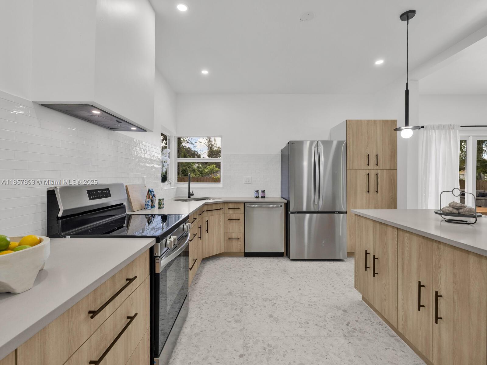 Welcome to The Parkside Retreat! Endless opportunities await you in this completely updated mid-century modern home on a large 8,960 SF corner lot. Great features inside and out— a cool, welcoming covered Terrazzo front porch; grand open-flow living room and bright dining, plus custom eat-in chef’s island kitchen with high ceilings and abundant counter space; triple-stacked bedrooms with two new designer baths, including a primary ensuite with walk-in closet; a laundry room; all new designer finishes, lighting, LVT flooring, roof, and impact windows; one-car garage; and sliding doors to entertainment gardens and a massive wooden sundeck esplanade. A great value in a fantastic, convenient unincorporated location with lower taxes and regulations, across from Biscayne Shores & Gardens Park.