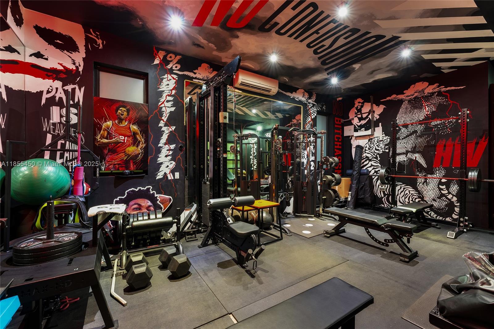 This striking modern tri-level waterfront residence blends bold architecture with refined luxury. Set on a 17,676 SF gated lot w/approx. 90FT of WF, the home offers 9,424 total SF with 5BR/7.5BA, expansive family, dining, & living areas all with water views. Highlights include marble & rich hardwood floors, custom millwork, chef’s kitchen with Wolf and Miele appliances, built-in aquarium, & seamless indoor-outdoor flow. Principal suite features an expansive terrace, spa-style bath, and massive walk-in closet. Additional amenities include a rooftop lounge with firepit & TV, a gym-converted garage, state-of-the-art theater, resort-style pool w/waterfall, summer kitchen, custom bar, 45FT dock, 3 jet ski slips & direct Intracoastal access. This residence epitomizes the Miami lifestyle.