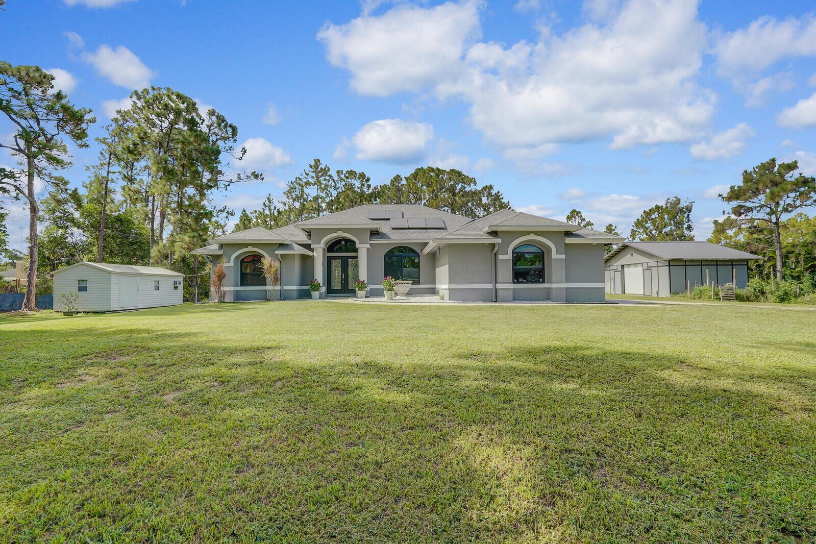 Enjoy wide-open spaces, privacy, and the freedom of living without an HOA in this well-maintained Loxahatchee property. Set on 1.15 acres, this home is more than just a place to live--it's a lifestyle. Whether you're seeking space to grow, room for hobbies or a home-based business, or simply a peaceful escape, this versatile property offers endless possibilities.Inside, the home features a thoughtfully designed split floor plan with four bedrooms and three bathrooms, all enhanced by luxury vinyl plank flooring that runs throughout. The insulated, impact-rated, and tinted windows allow natural light to flood the interior while providing storm protection and energy efficiency. Every opening is protected, with impact-rated windows and sliders throughout the home, while the French door