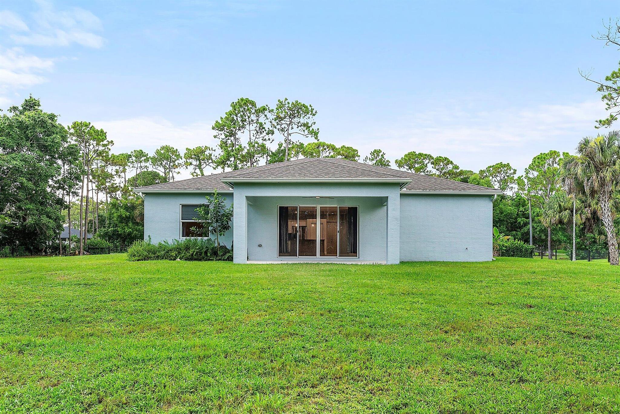 WELCOME HOME This well appointed 2022 built gem is resting on a premium 1.15 acre lot and boasting 4 true bedrooms, 2 full baths, 2 car garage, upgrades galore, hurricane impact windows and doors throughout and this beauty is in a peaceful location! ENTERING you will discover that this home is on a high and dry lot with no pond and fully fenced. The covered entry brings you inside where you are greeted by 10' volume ceilings, high-end flat wall finish, porcelain and luxury vinyl flooring, abundance of natural lighting and gorgeous kitchen that features; a stainless steel appliance package, quartz counter tops, lovely backsplash, spacious island with bar, shaker style cabinetry with two pantries, breakfast nook and great room that overlooks the expansive green space. (CLICK)