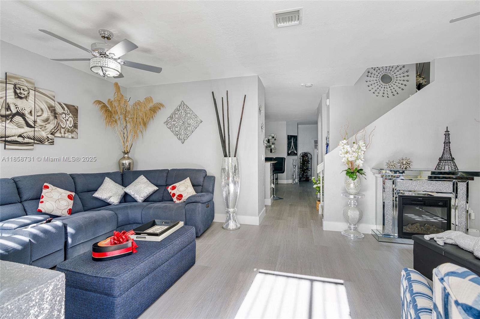 This freshly painted updated turn-key townhouse in the sought-after Mandarin Lakes community welcomes you with a beautifully landscaped, pressure-cleaned entrance and a backyard where you can enjoy grapes and papaya from your own garden. Inside, you’ll find updated bathrooms, a newer HVAC system, stainless steel appliances, sleek countertops, stylish light fixtures, and a designer accent wall in the living room. Every detail has been thoughtfully curated, making this home truly move in ready. Just a short walk from the clubhouse, gym, children’s play area, and sparkling pool, you’ll enjoy resort-style amenities with ease. HOA fees include basic cable, high-speed internet, lawn care, and full access to community facilities, perfect for a low maintenance lifestyle.