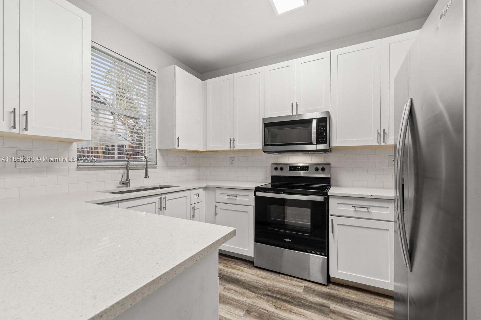 Price to sell! Beautiful, huge 4 bedroom 2.5 bath unit in a gated community with large patio and attached garage. Recently updated kitchen, white quartz countertops, updated white cabinets, stainless steel appliance package, backsplash. Updated vinyl plank flooring. Unit contains a brand new AC unit, storage room, walk in closets and community amenities include pool, clubhouse with gym and BBQ area. No HOA approvals, low HOA fees ($239 / month) include cable and internet.