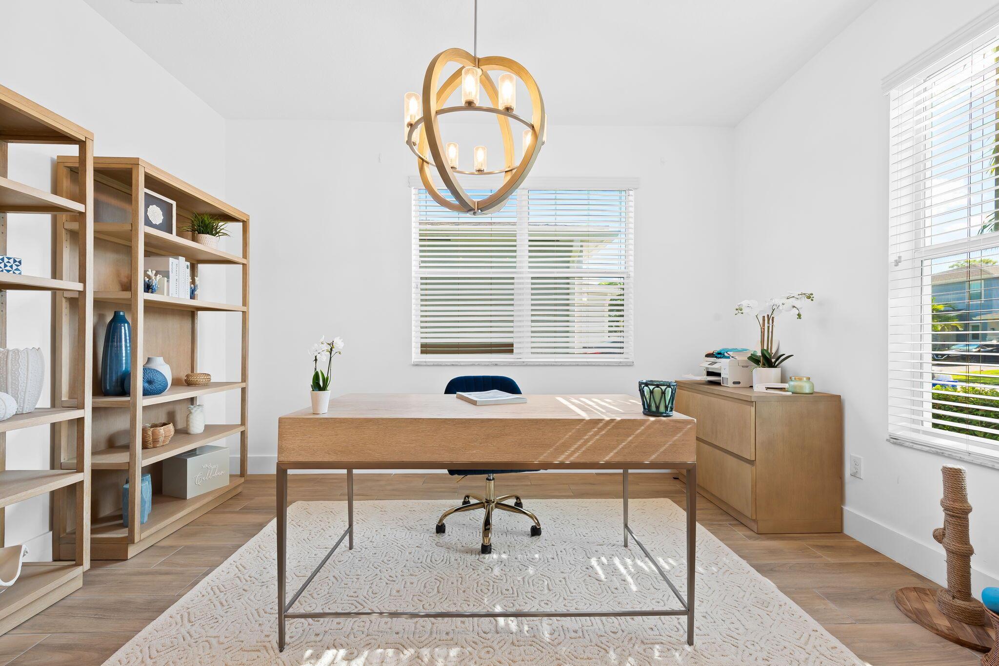 Built in 2021, New Everything, Low Insurance, Move-In Ready! Located in the gated community of Solcera that features a resort-style pool, playground, and dog park. Inside, the layout begins with a versatile flex room, then opens to a bright living dining area and a gourmet kitchen with abundant cabinetry and counter space. Sliding doors lead to a covered patio and fenced backyard that overlooks a lush landscaping area with oak trees. Upstairs, a spacious landing area with loft/den space connects to 3 bedrooms, including a generous primary suite. Enjoy low HOA fees, gated security, and easy access to I-95, Florida's Turnpike, top parks, Downtown WPB, and the area's best beaches.