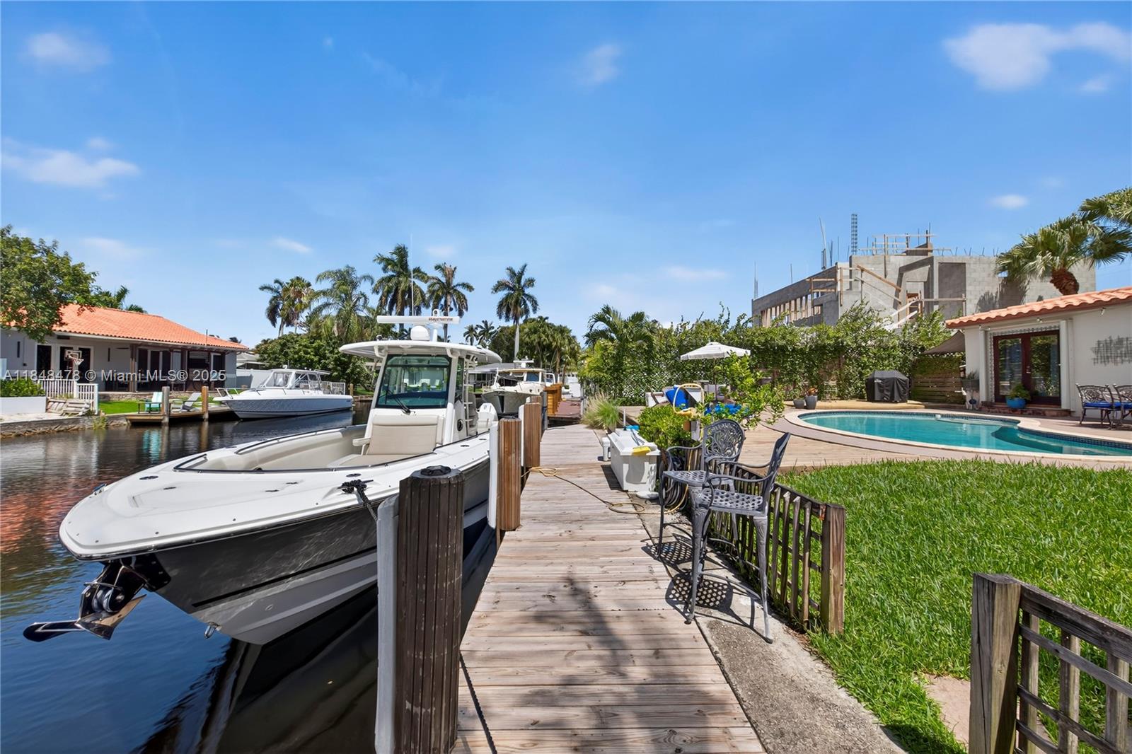 Enjoy the best of Fort Lauderdale living in the sought-after Citrus Isles with ocean access. This waterfront gem features a 65± ft. dock with 50-amp electric service, perfect for boaters. The tropical backyard features a free-form pool, ideal for ultimate relaxation. Inside, the open floor plan includes an updated kitchen with a natural gas cooktop, a split bedroom layout, and easy-care tile flooring throughout. Accordion hurricane shutters are installed on most windows, with panels covering the rest, providing peace of mind. Ideal as a full-time residence, vacation getaway, or retirement home, this property combines convenience, coastal charm, and direct waterway access — all just minutes from the ocean, Las Olas/downtown, FLL airport, and major highways.