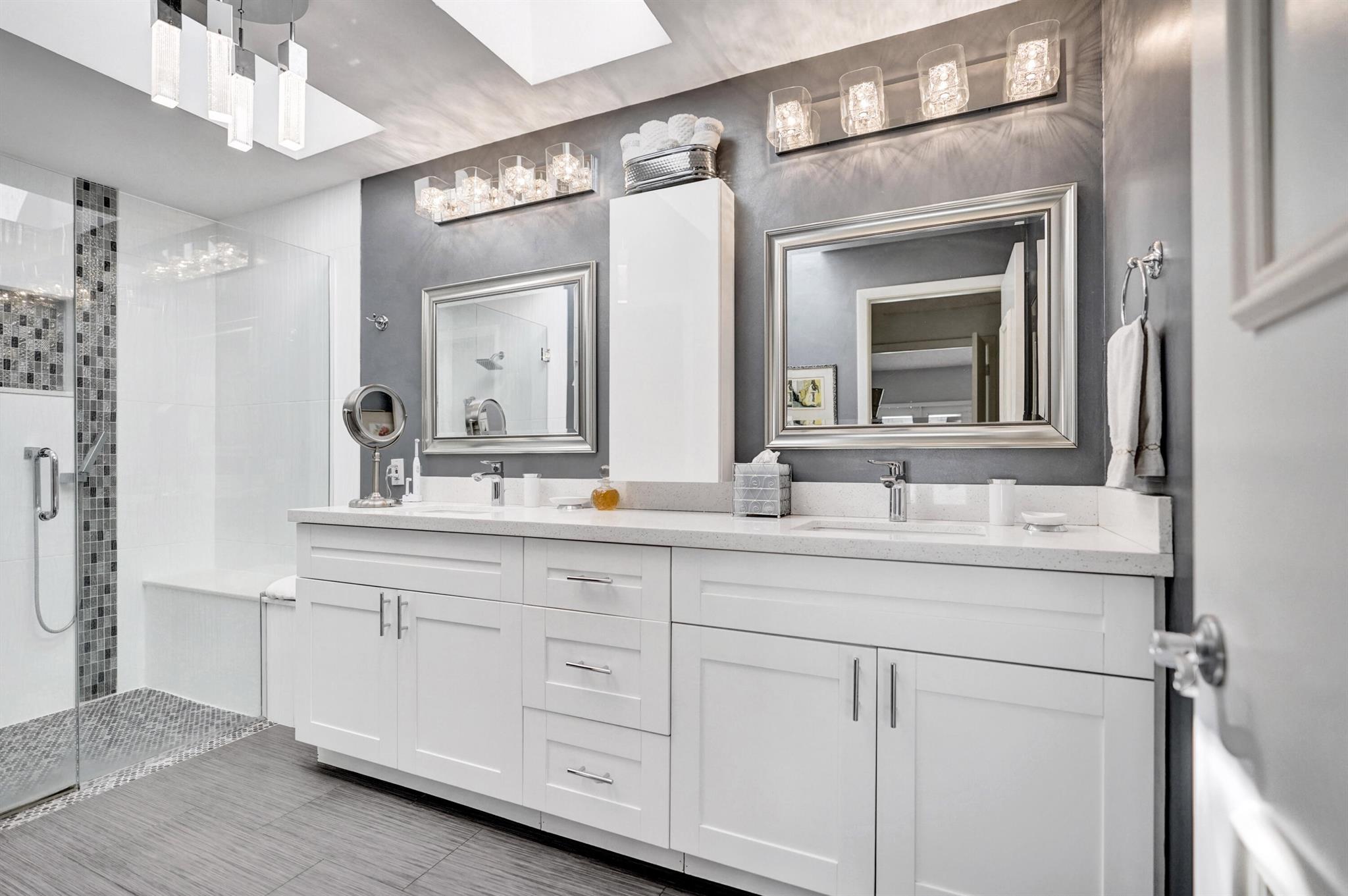 Come see this lovely three bedroom, two bathroom home in the all-age community of Boca Woods Country Club. From the moment you enter, you will feel the space and openness...there are cathedral ceilings in the main living area and the kitchen wall has been taken down - the island makes entertaining so easy. Stainless steel appliances and plenty of cabinets. The kitchen and bathrooms were renovated several years ago and they still look great. You will love the amazing primary bathroom with the added linen closet. For continuity, ceramic tile has been used throughout the house. The washer and dryer area has been enclosed and a laundry room was created where there is also an extra refrigerator. And there are no rear neighbors - just a beautiful view of the 6th green of the Lakes course.
